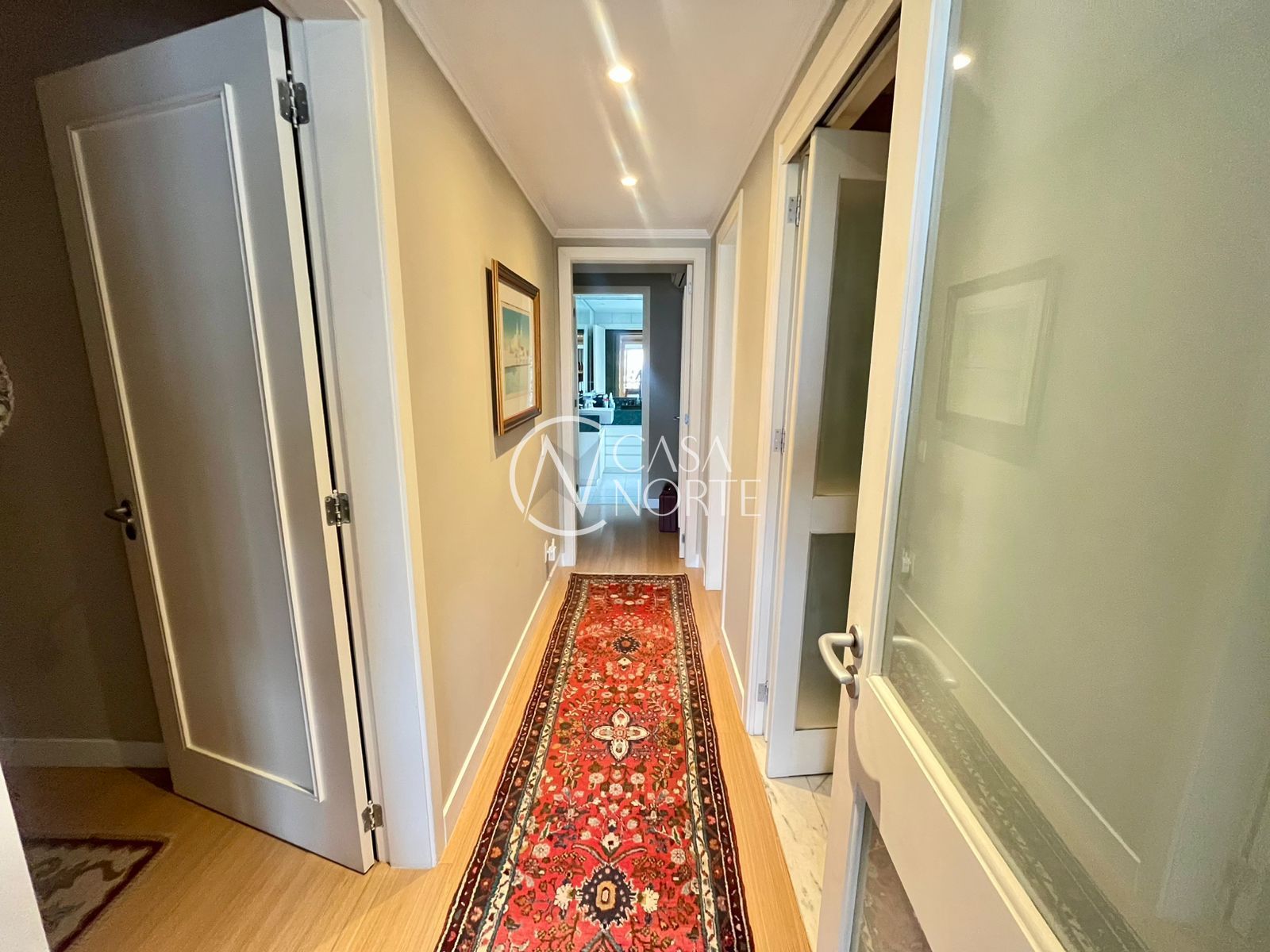 Logo na entrada, o apartamento possui hall de entrada e lavabo, oferecendo mais conforto para o dia a dia e para receber visitas.