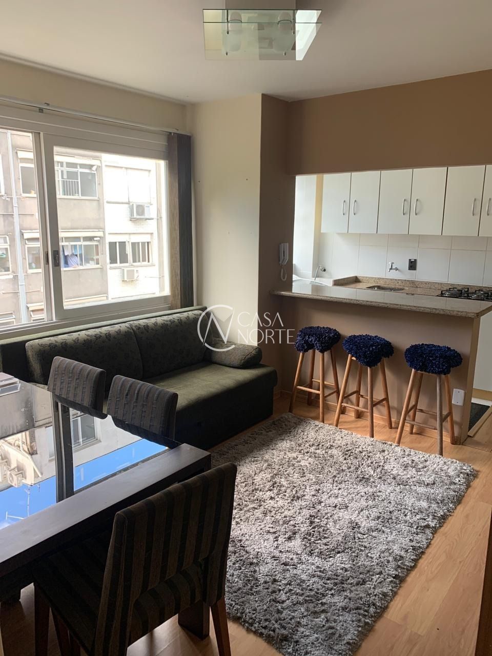 1 dormitório, está mobiliado, aconchegante, silencioso, bem arejado e ensolarado. Cozinha americana integrada com área de serviço, onde ficam máquina de lavar, fogão, geladeira e armários. No dormitório ficam roupeiro e gaveteiro, no living rack e televisão. Banheiro completo e ar condicionado em todos os cômodos. Vaga de garagem coberta. Condomínio enxuto, com baixo valor condominial. Excelente localização, próximo a praça da Encol, supermercado, escola, farmácia, todas as comodidades dos bairros Petrópolis e Bela Vista, além da proximidade a grandes vias de acesso.