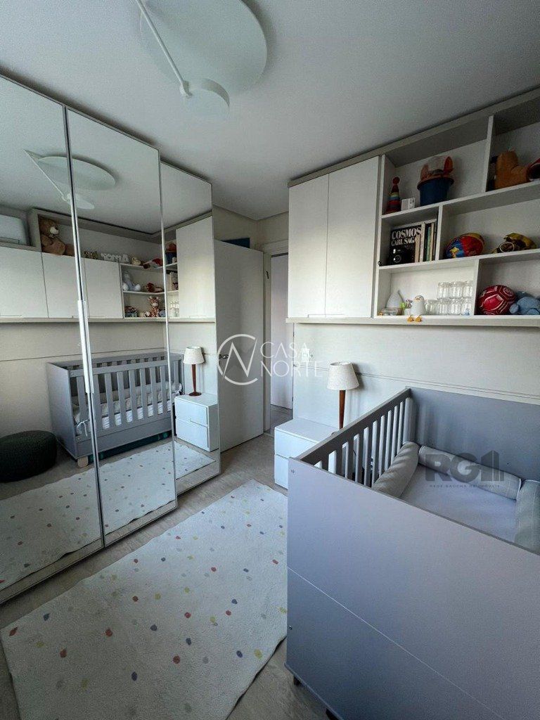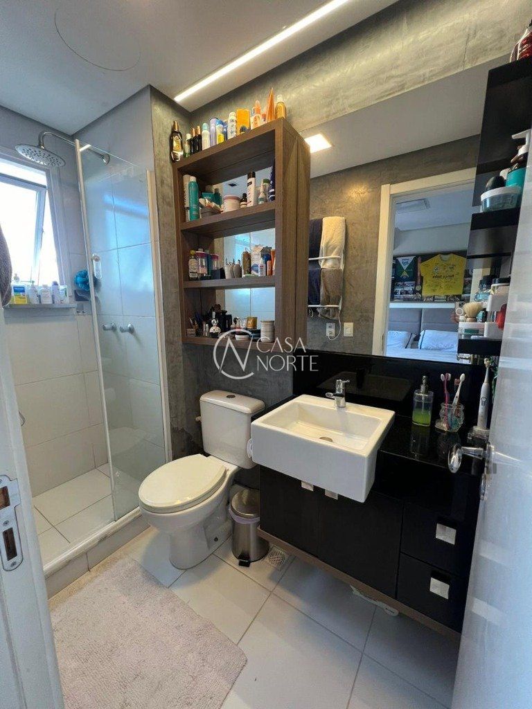O apartamento possui 1 suíte, com mais 1 banheiro social, piso porcelanato de alto padrão e armários em todas as peças e 2 vagas de garagem escriturada.