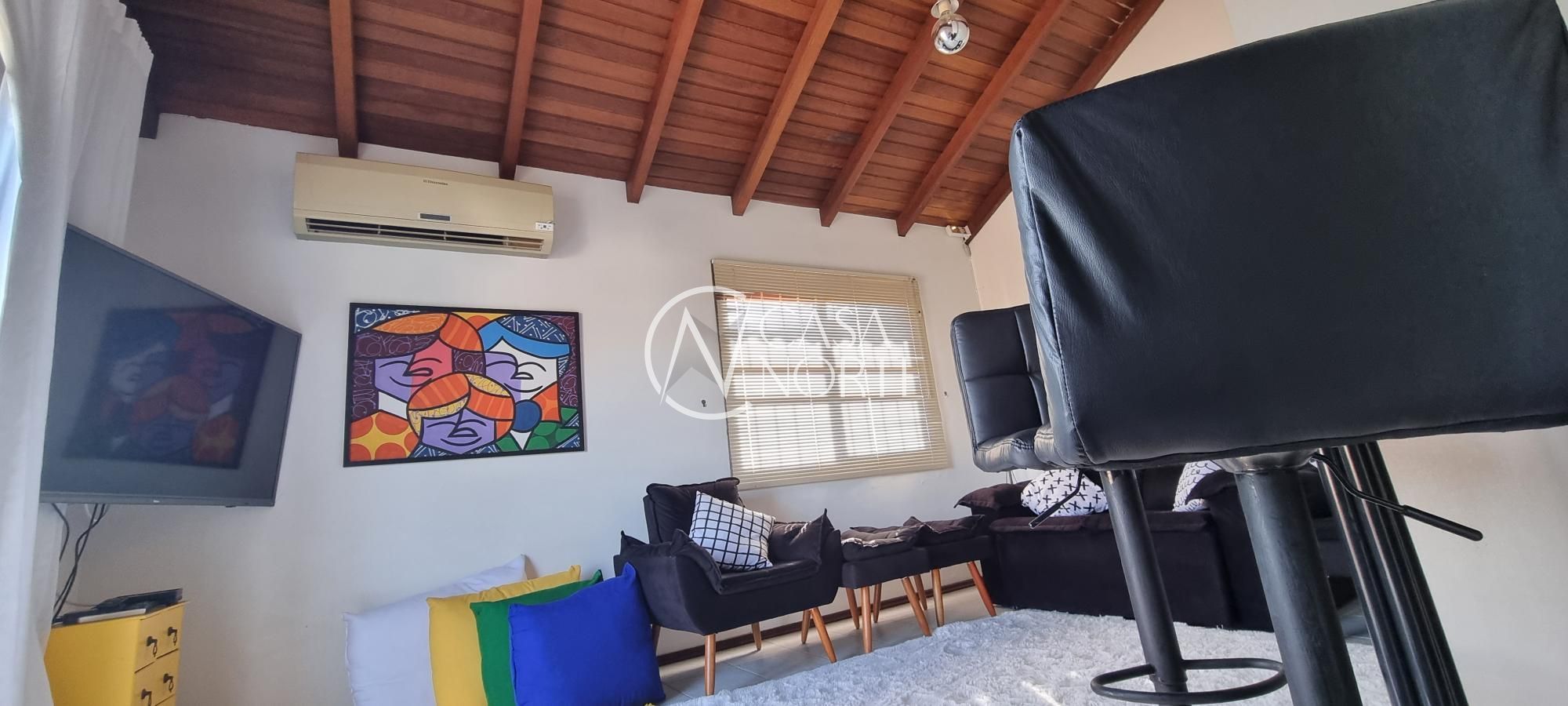 Ao entrar nesta casa, você será recebido por uma atmosfera calorosa e convidativa, com uma ampla sala de estar e uma cozinha espaçosa, equipada com armários planejados. A área de serviço e a lavanderia oferecem praticidade no dia a dia, enquanto a presença de ar condicionado garante conforto em todas as estações.