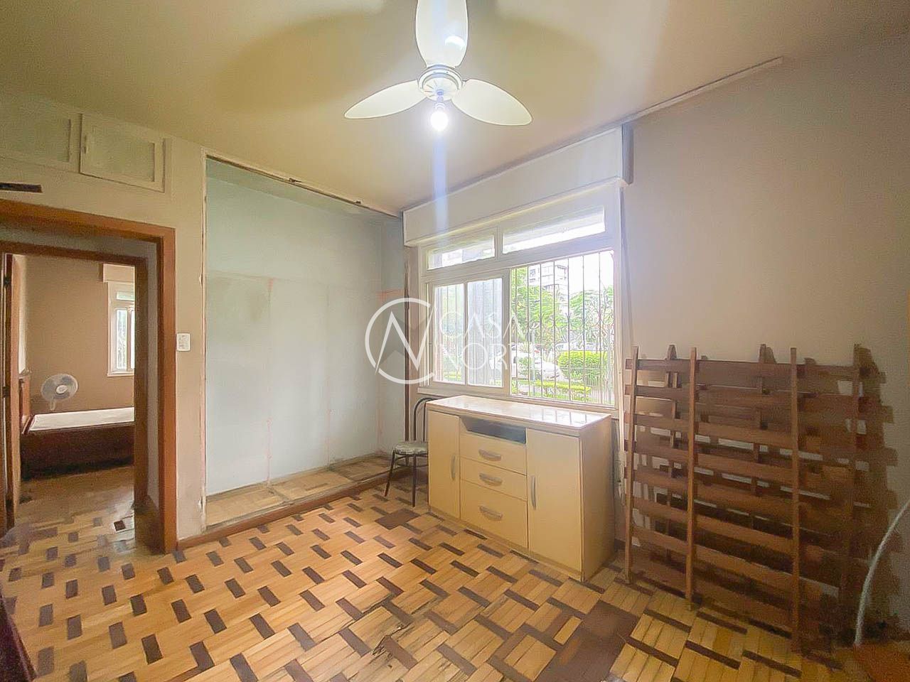 O imóvel possui planta bem distribuída, com living para dois ambientes, dois dormitórios confortáveis, banheiro social amplo, cozinha independente e área de serviço separada. As janelas grandes proporcionam excelente iluminação natural e ventilação, tornando os ambientes mais agradáveis e bem iluminados ao longo do dia.