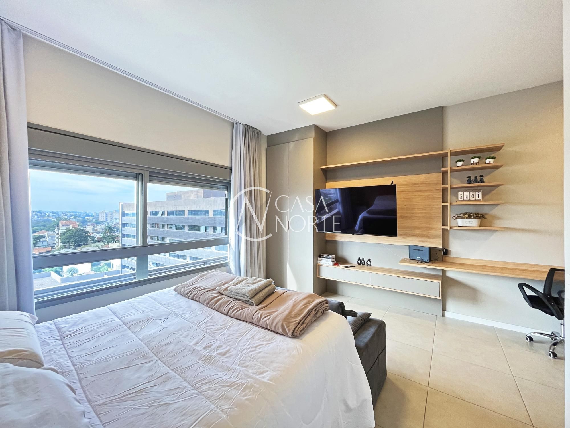 Loft de 35,55 m², ultimo andar, sol da manhã com living, dormitório, cozinha integrados e banheiro com 1 vaga coberta e escriturada. Localizado estrategicamente próximo a Perimetral e ao novo Shopping Bourbon Teresópolis dentro do complexo LINKED.