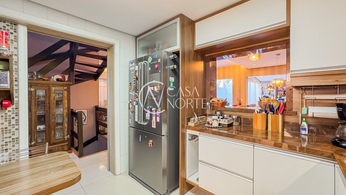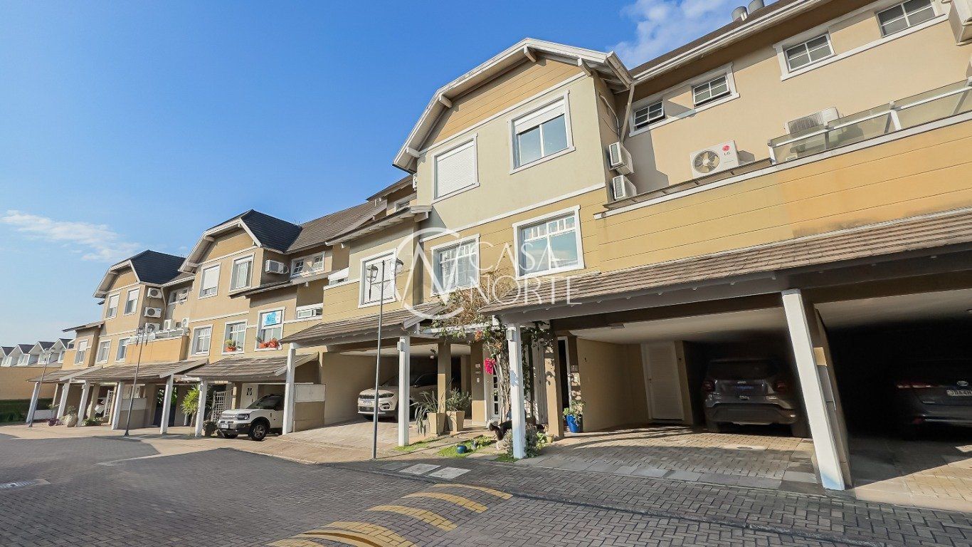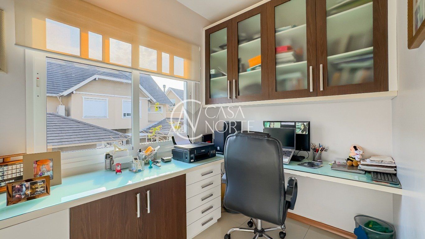 Casa em condomínio com 223m² de área privativa e 349m² de área total. O imóvel possui 3 dormitórios, sendo 1 suíte, amplo living para 4 ambientes com lareira, espaço office e lavabo. Cozinha montada e área de serviço independente.