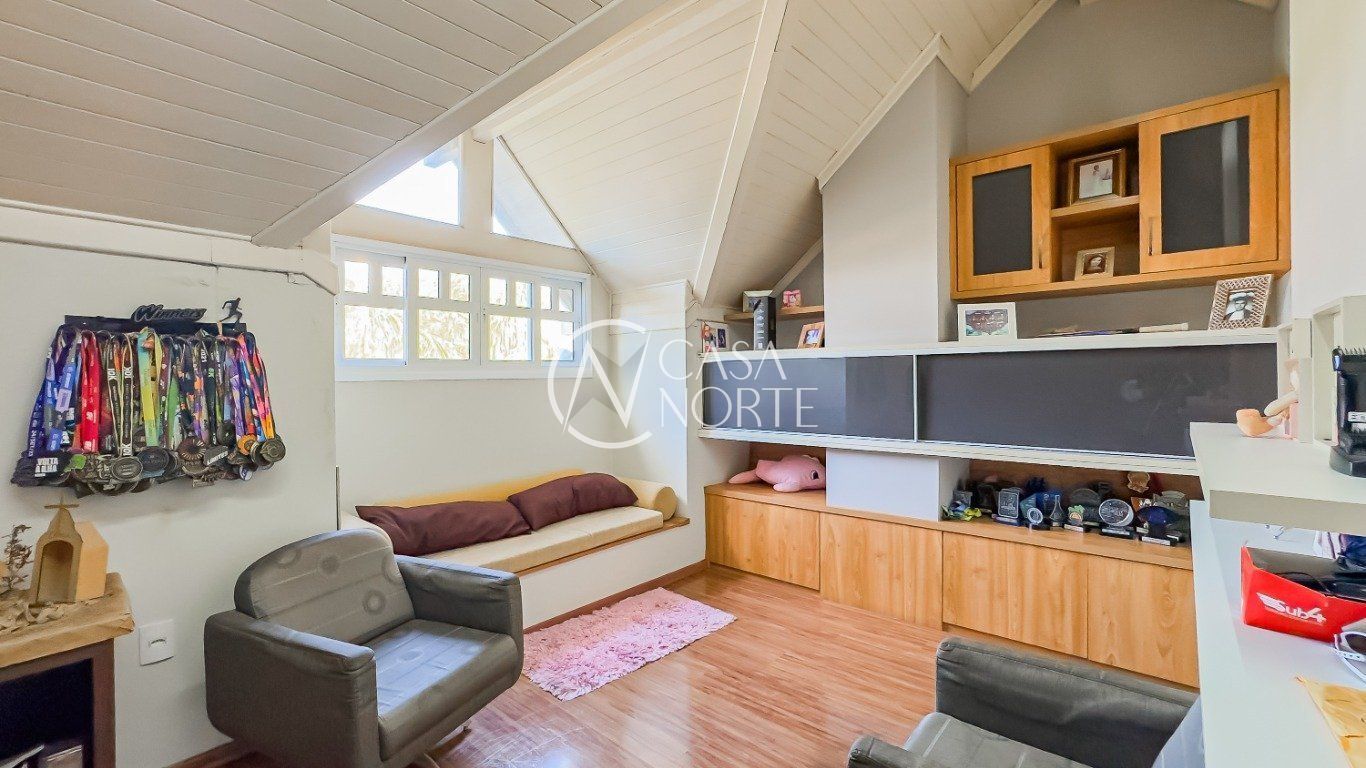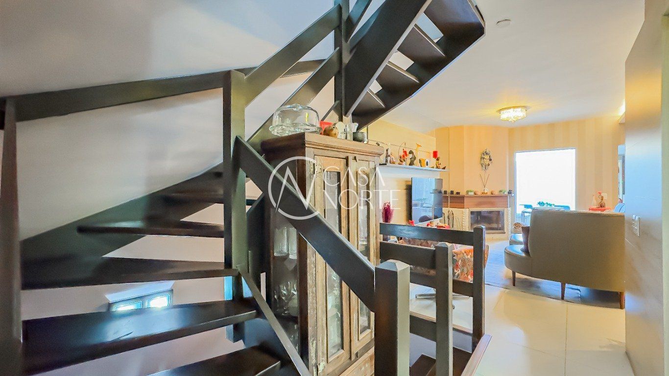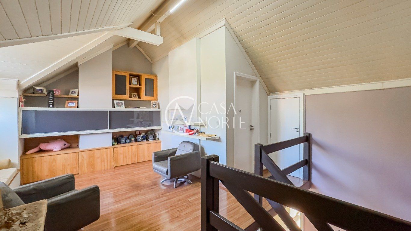 Casa em condomínio com 223m² de área privativa e 349m² de área total. O imóvel possui 3 dormitórios, sendo 1 suíte, amplo living para 4 ambientes com lareira, espaço office e lavabo. Cozinha montada e área de serviço independente.