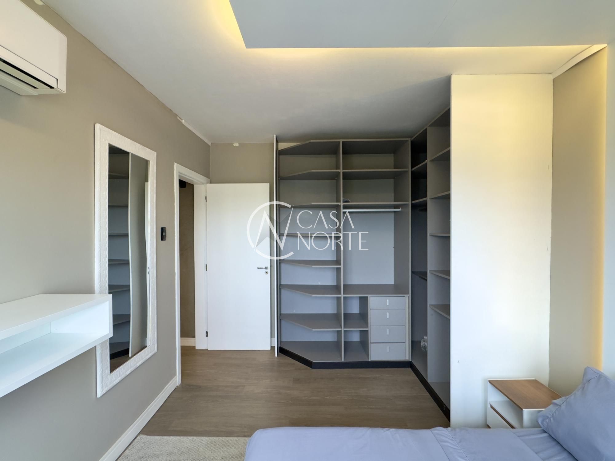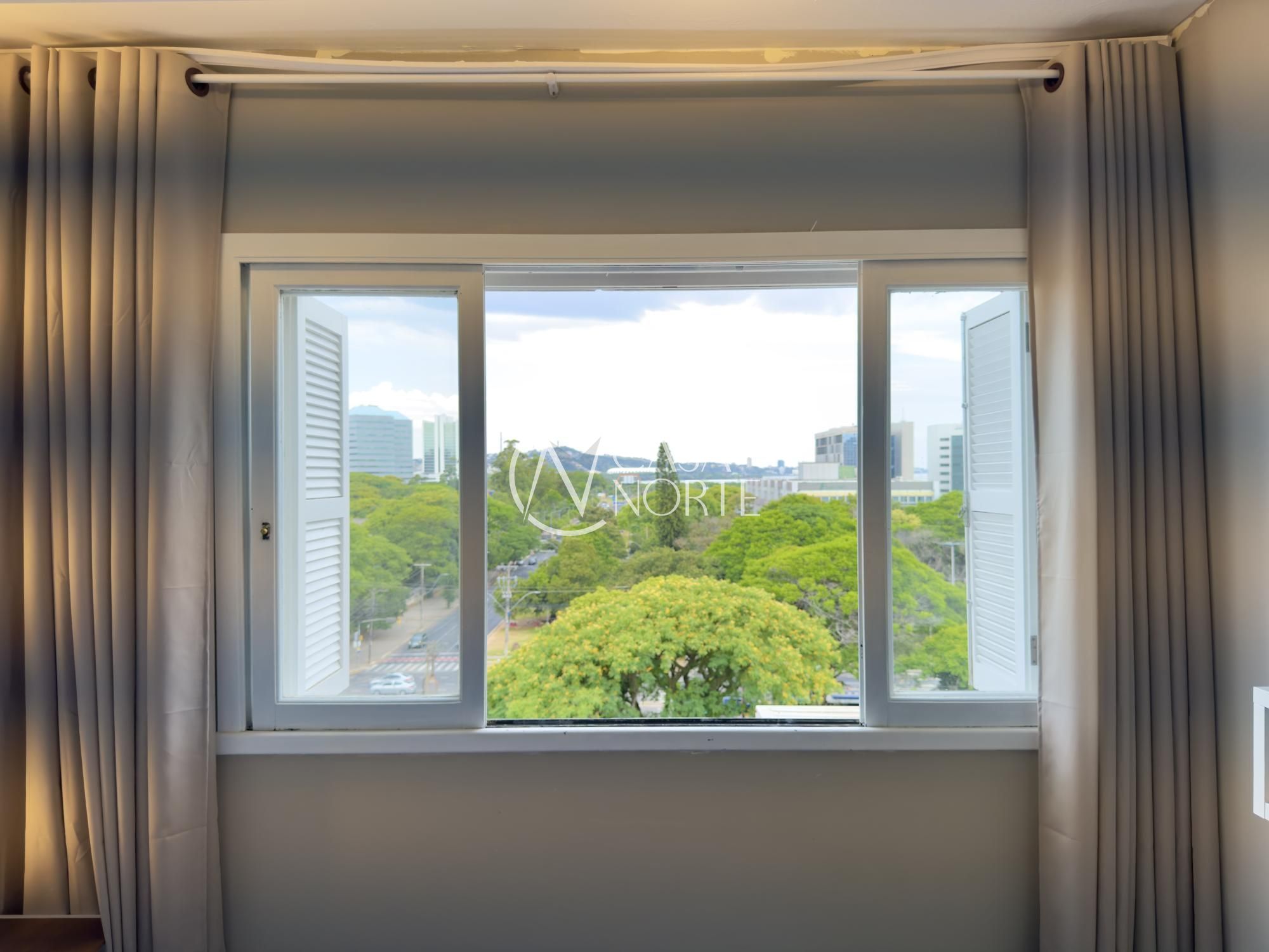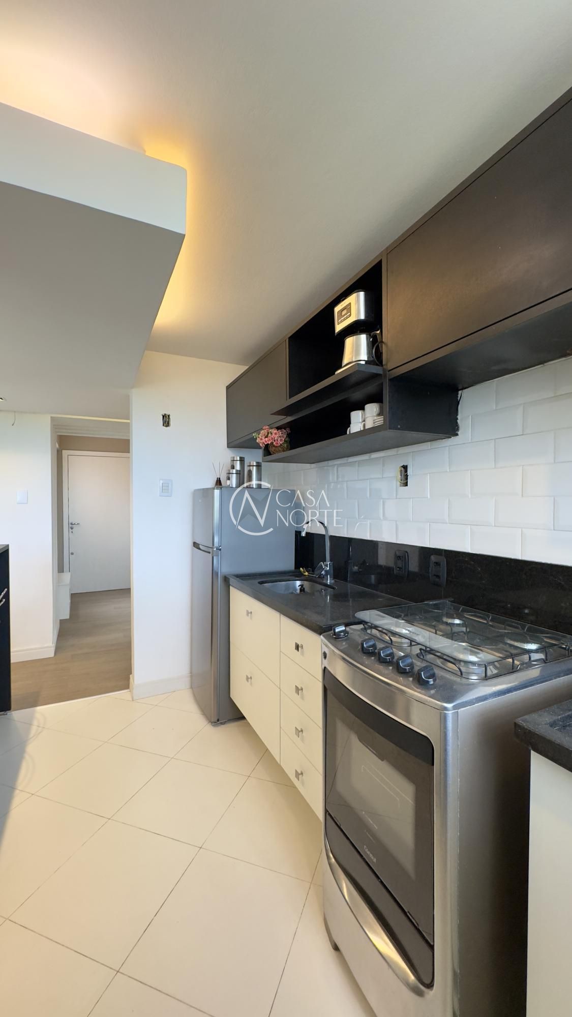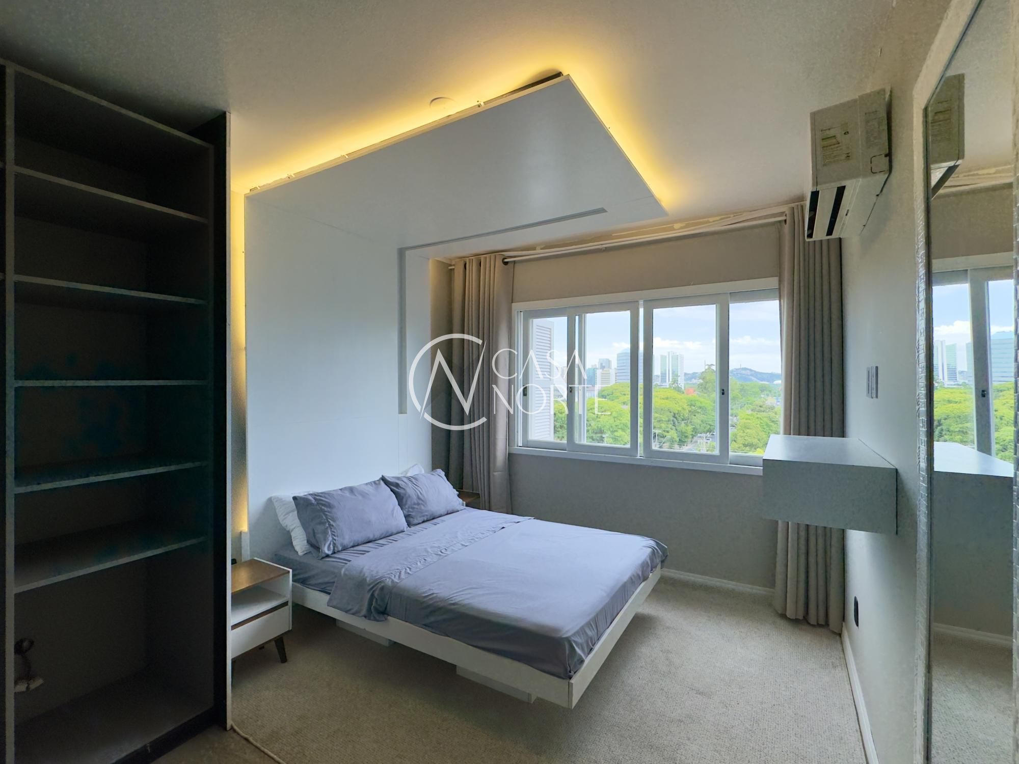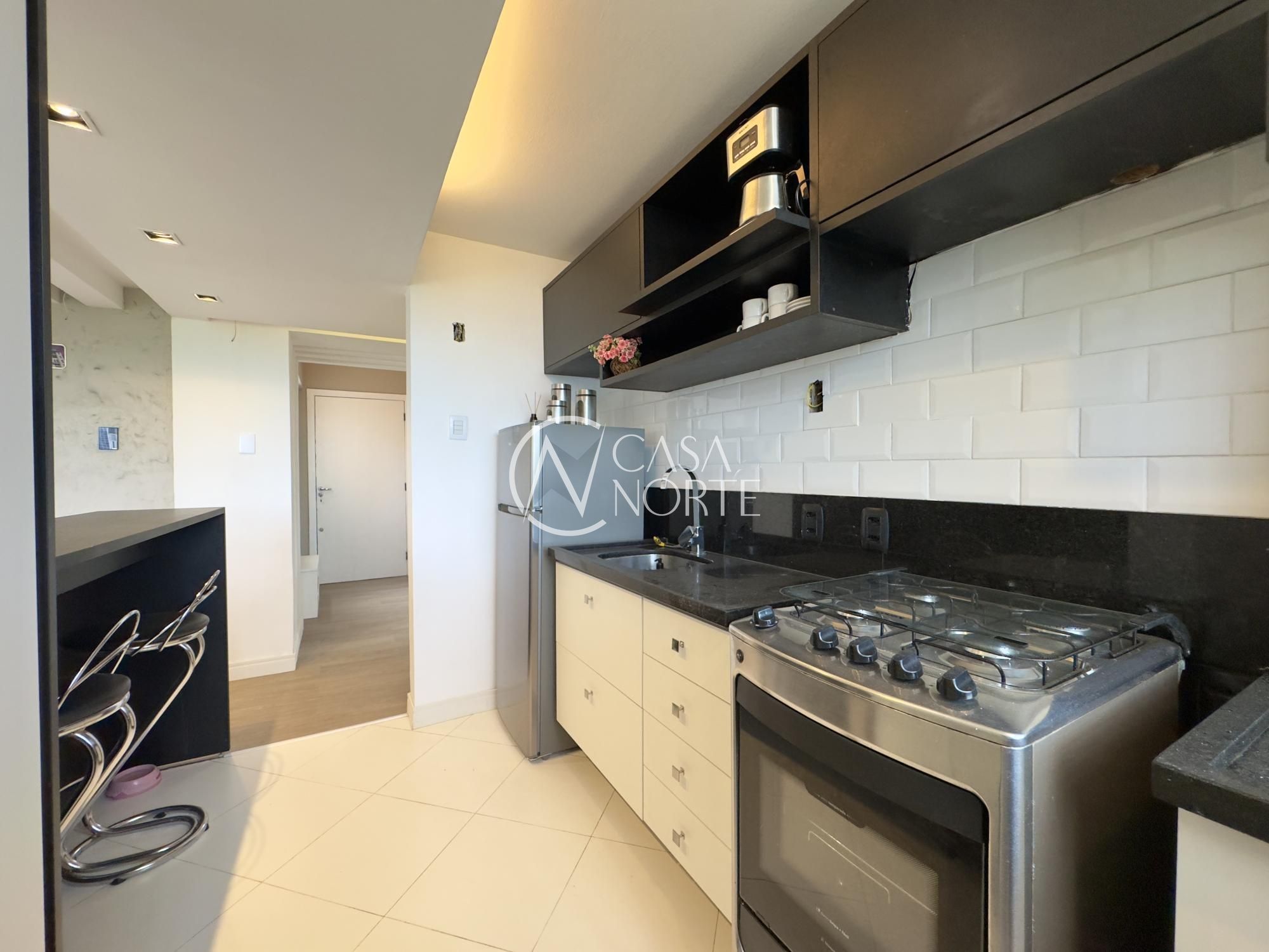 Apartamento mobiliado de 49m², de frente, 1 dormitório, living para dois ambientes, cozinha americana, área de serviço, 1 banheiro e 1 vaga de garagem. Imóvel disposto em andar alto, com linda vista definida para o Guaíba e skyline da cidade.