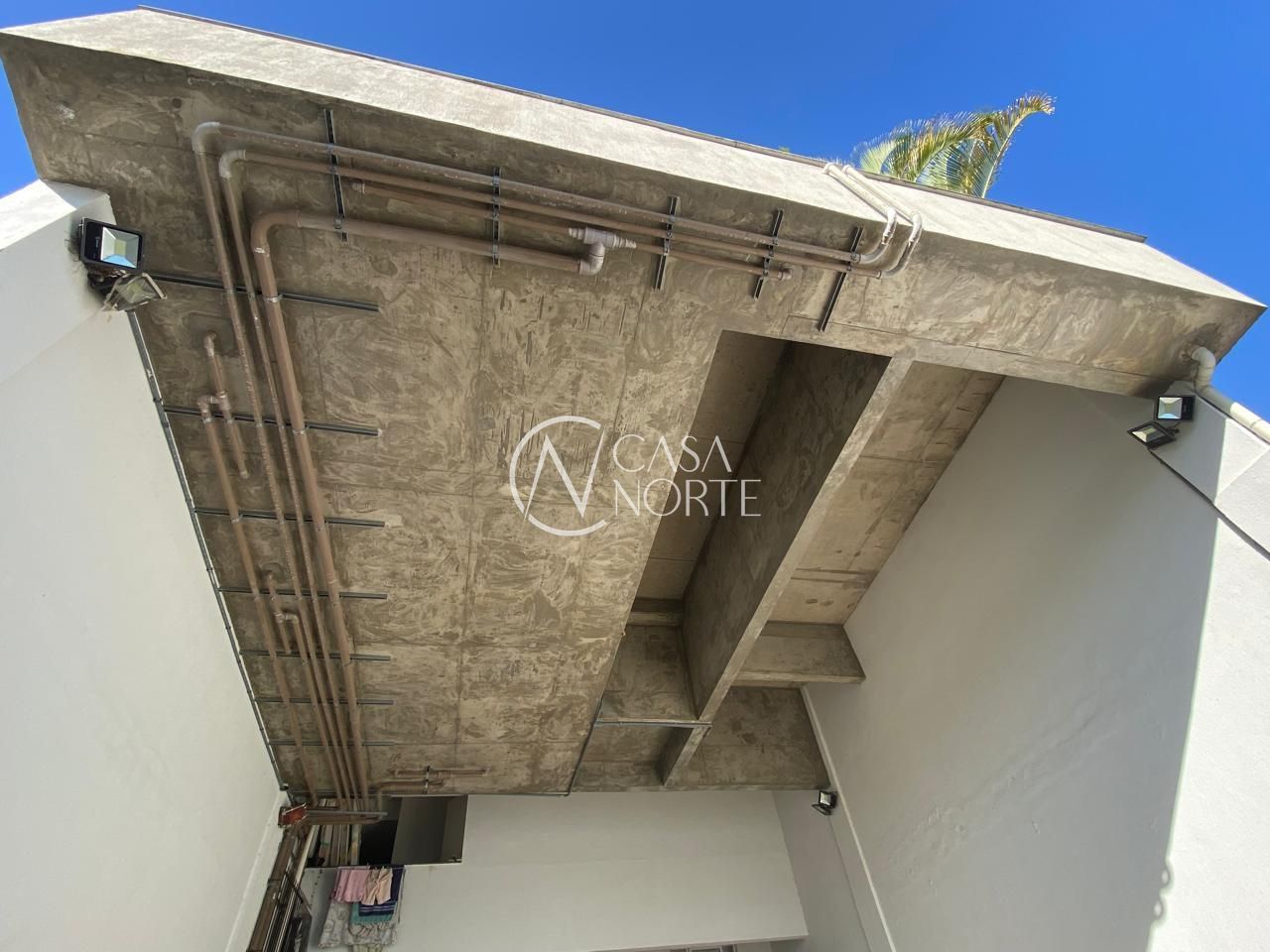 -Casa construída em estrutura de concreto e alvenaria de blocos de concreto celular para vedação.