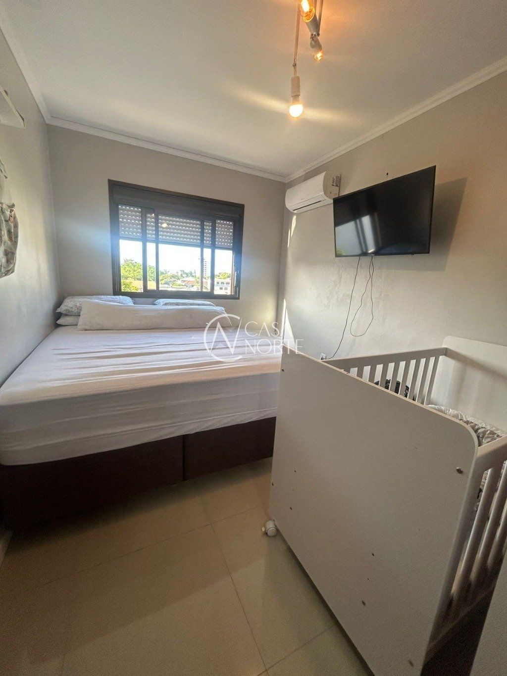 Apartamento com 1 quarto, sala, cozinha, banheiro auxiliar e área de serviço integrada com a cozinha. Sala de estar ampla, iluminada e ventilada, com living para dois ambientes, sancas de gesso que trazem charme ao ambiente e janelas amplas. Cozinha integrada, prática e moderna, bem arejada e iluminada, toda revestida em cerâmica e com janela grande que favorece a ventilação. Quarto principal amplo, ventilado e iluminado, com piso em porcelanato, ar-condicionado e janelas amplas. Banheiro auxiliar ventilado e iluminado, com armários planejados, box de vidro e janela com abertura para o exterior. Área de serviço integrada, trazendo mais praticidade ao dia a dia.