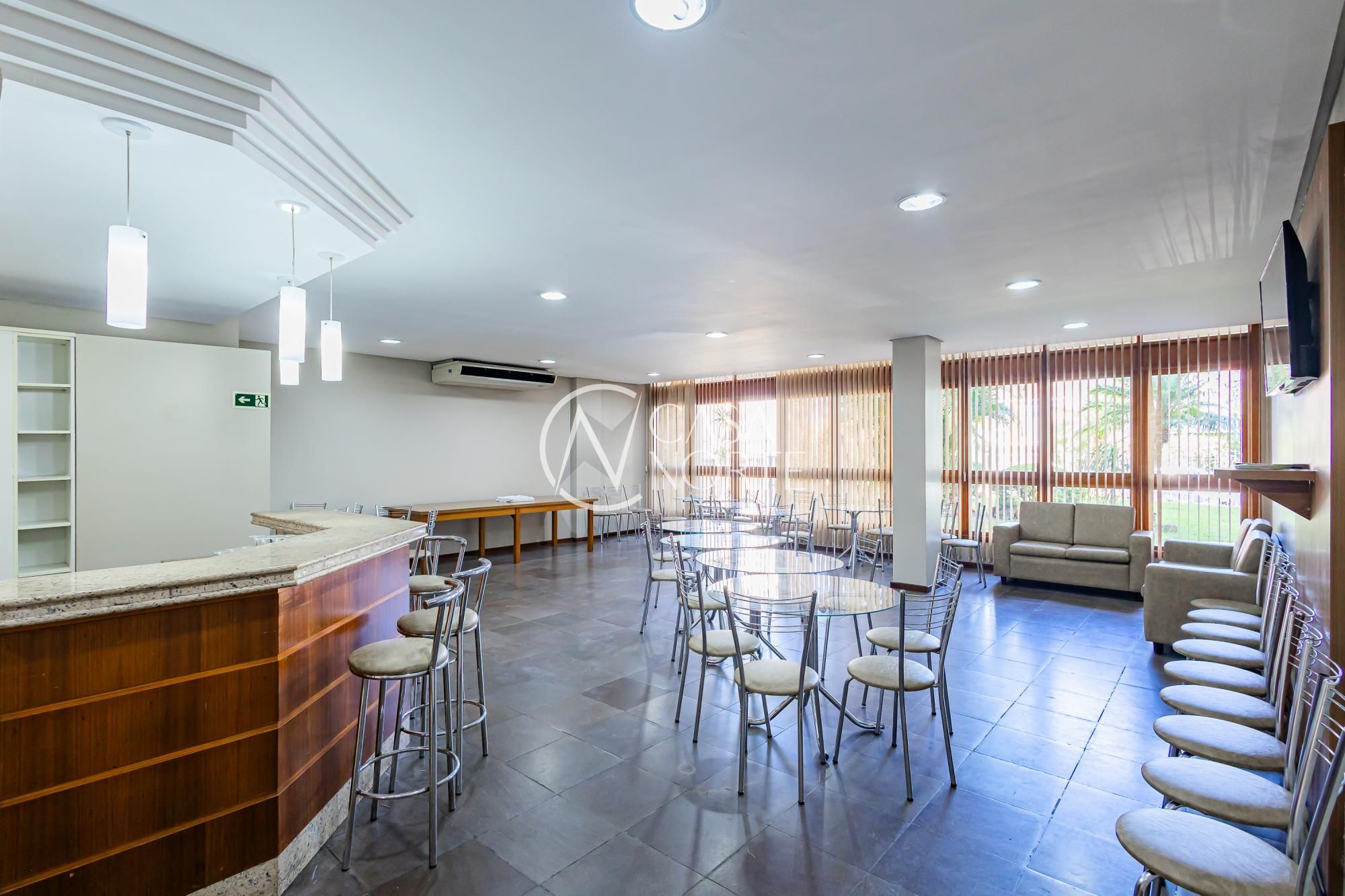 Condomínio com portaria 24h, piscina, salão de festas e pracinha.
