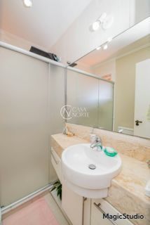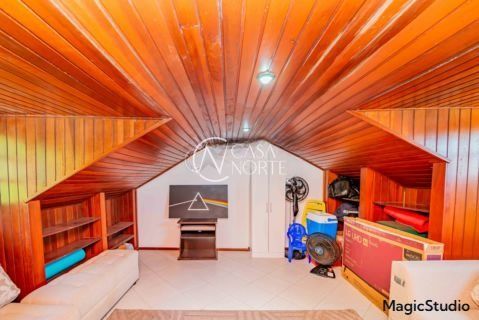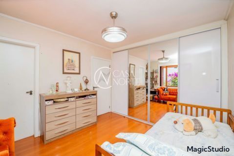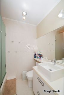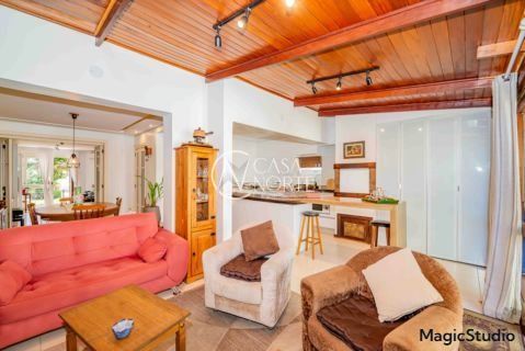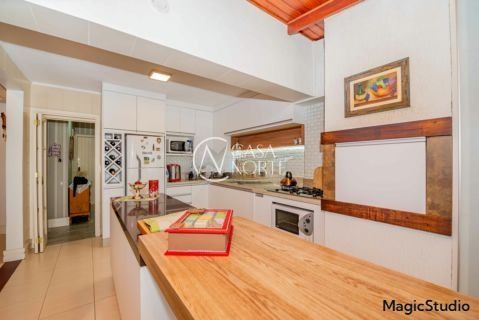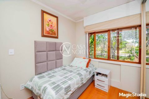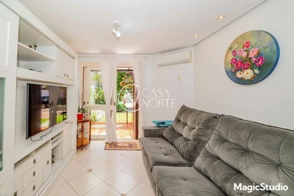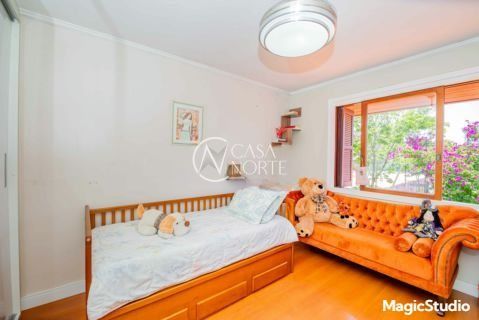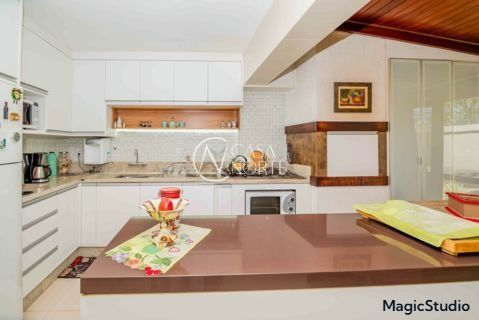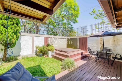 casa de 3 dormitórios em condomínio fechado na zona sul de Porto Alegre, na Rua Eduardo Prado, bairro Cavalhada. A casa conta com gramado e varanda na frente, garagem para dois carros, duas salas de estar e uma sala de jantar, lavabo, cozinha americana com churrasqueira, além de uma varanda nos fundos, pátio e spa. São três dormitórios, sendo uma suíte, e banheiro social. Possui ainda um sótão que pode ser utilizado como sala ou escritório.
