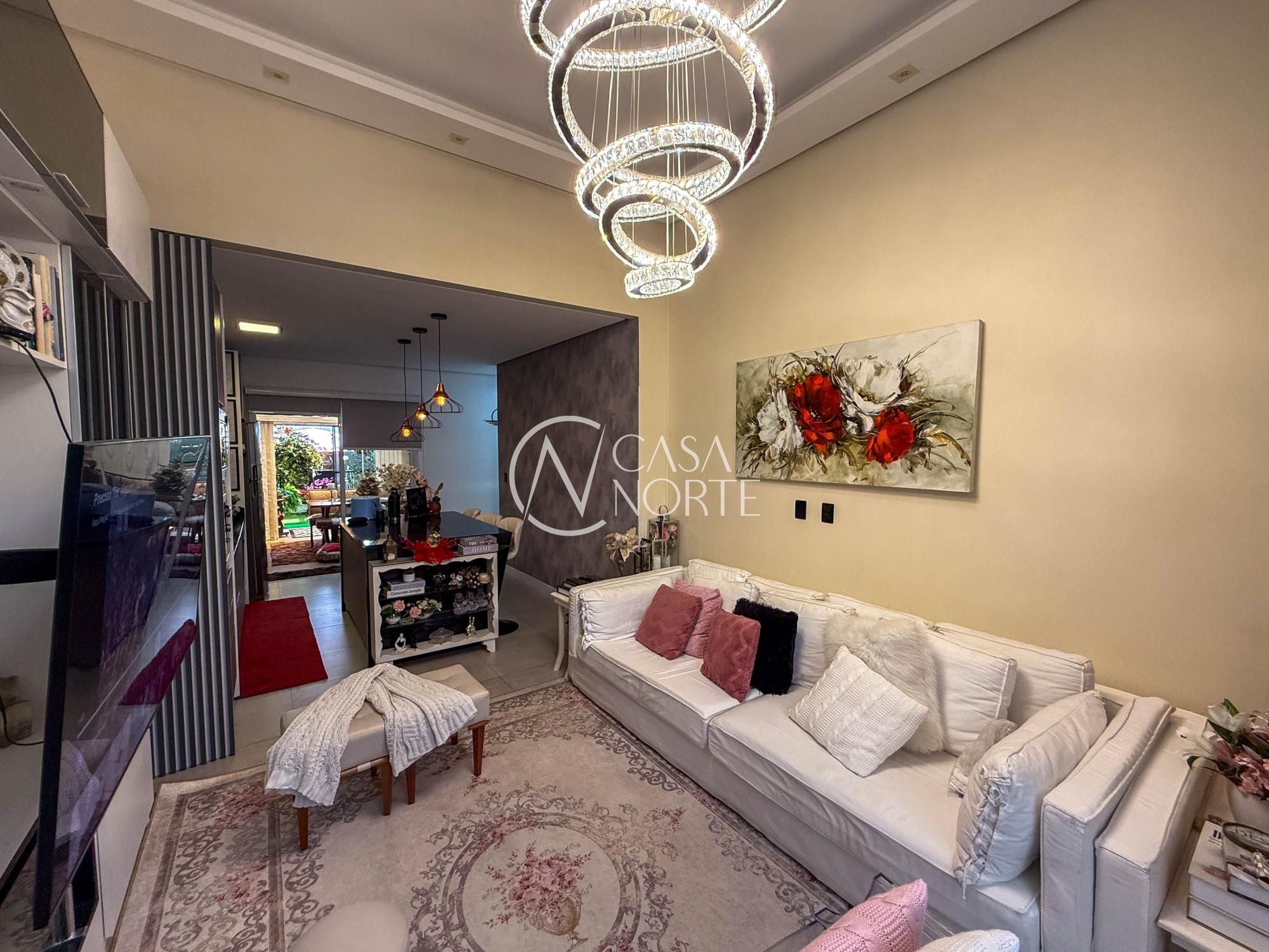 O imóvel possui 3 dormitórios, sendo 1 suíte, sala e cozinha totalmente mobiliadas. Todos os eletrodomésticos e móveis fixos permanecem. A casa foi toda telada contra mosquito e possui placas solares.