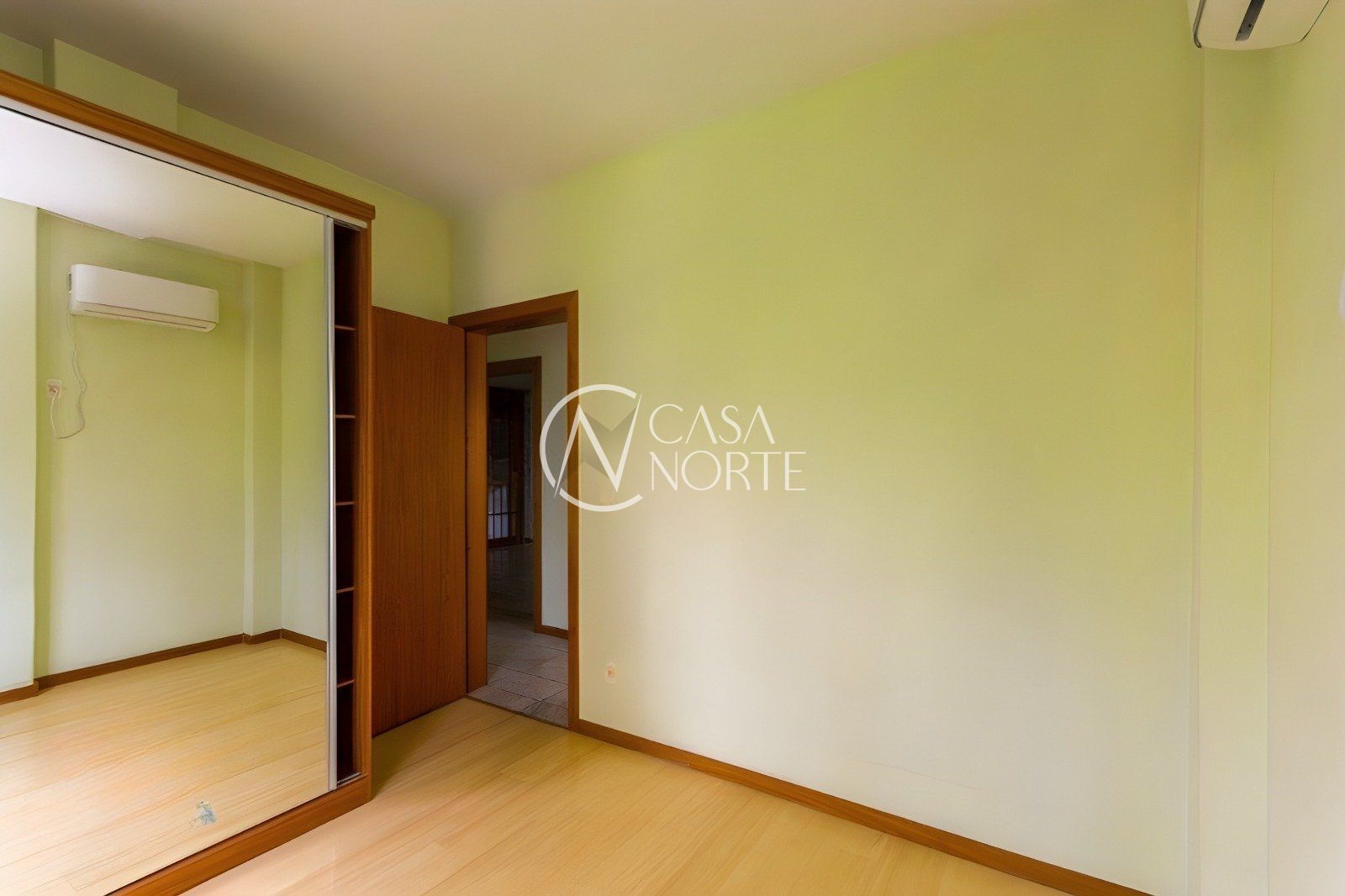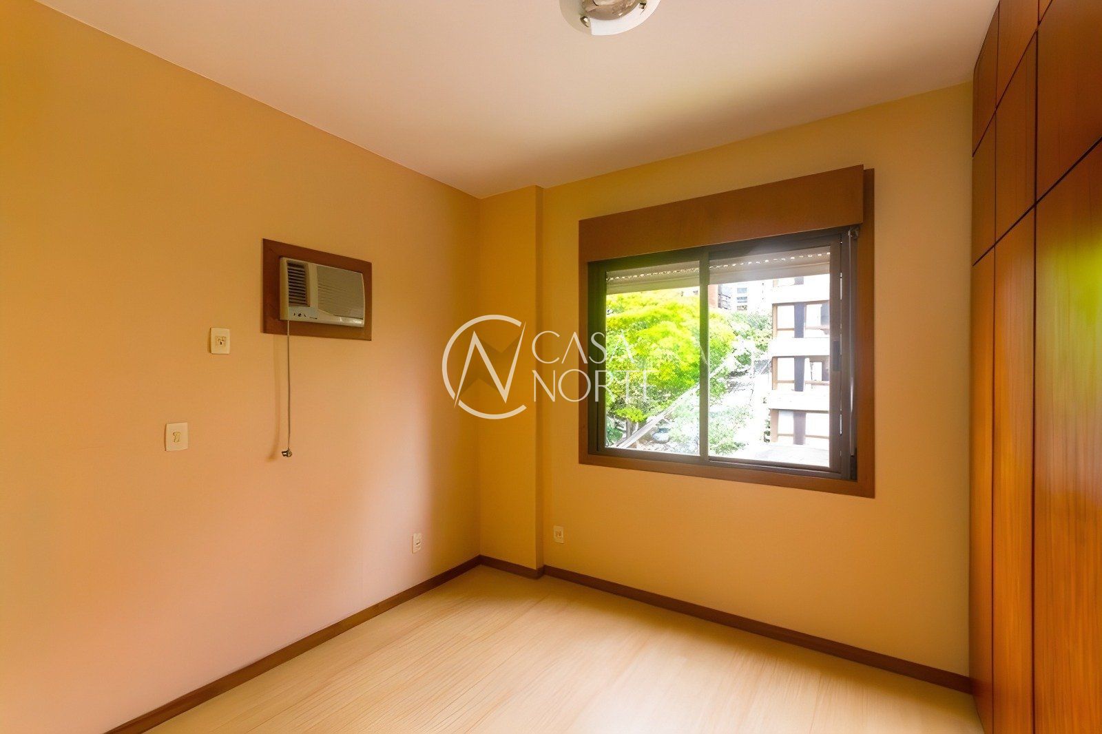 Apartamento de 2 dormitórios com excelente conforto e funcionalidade. Os quartos contam com armários planejados e ar-condicionado, sendo um deles uma suíte com mobiliário sob medida.
