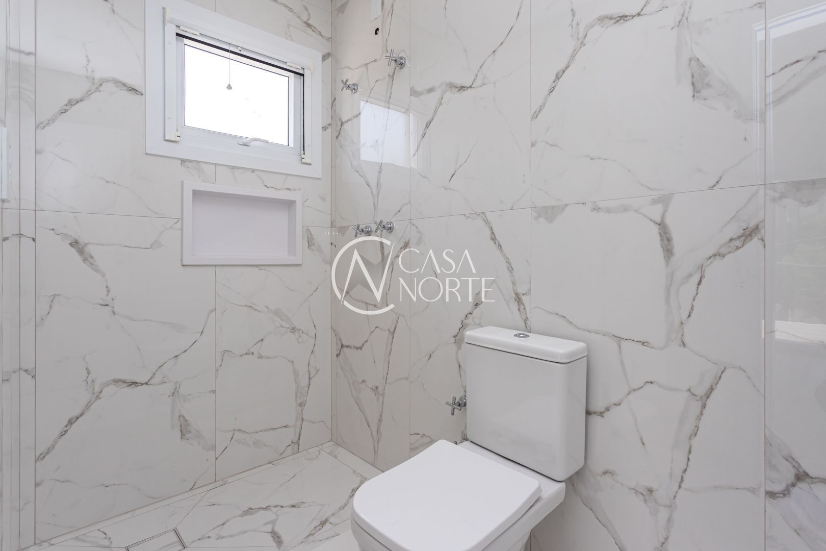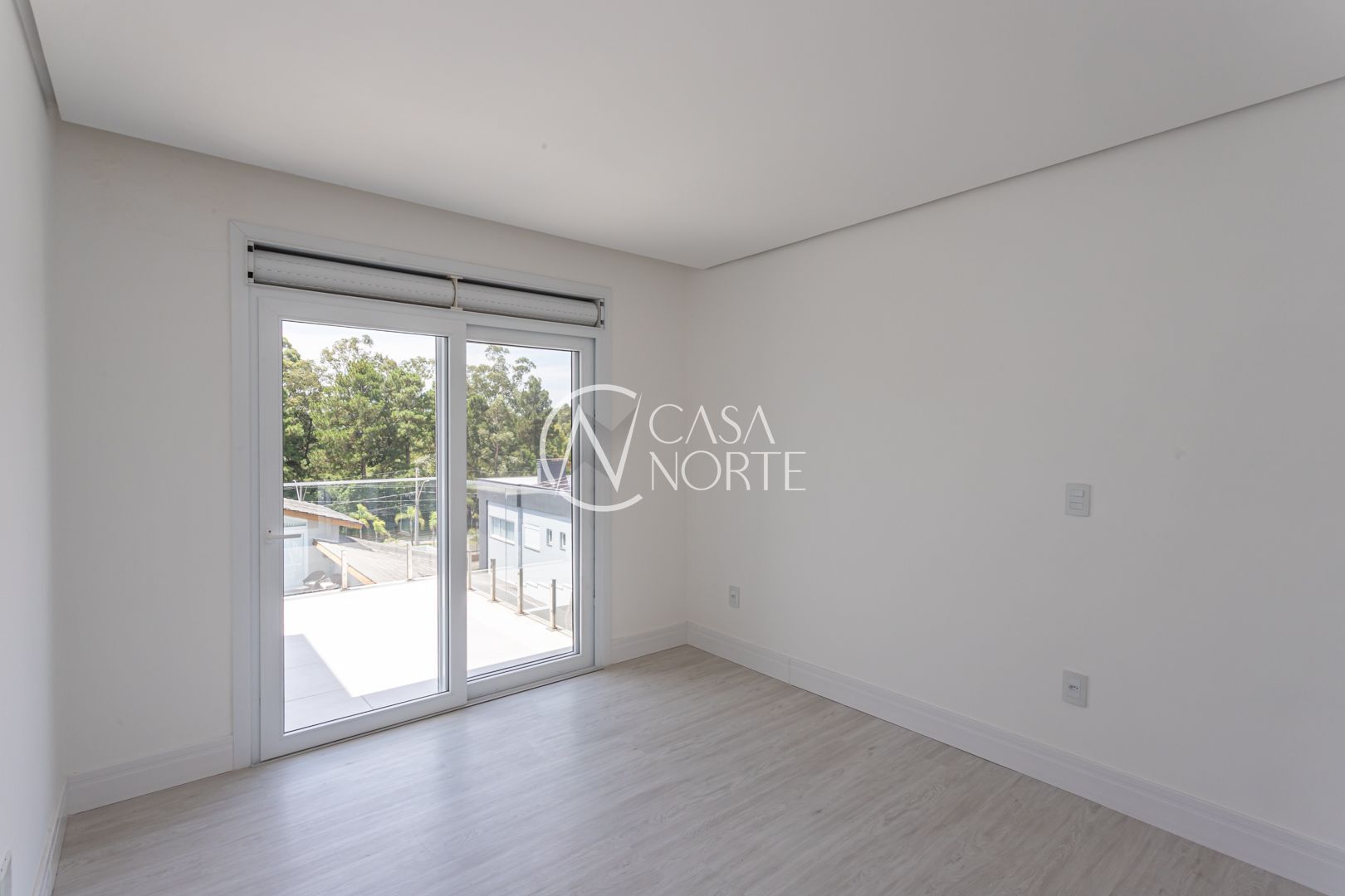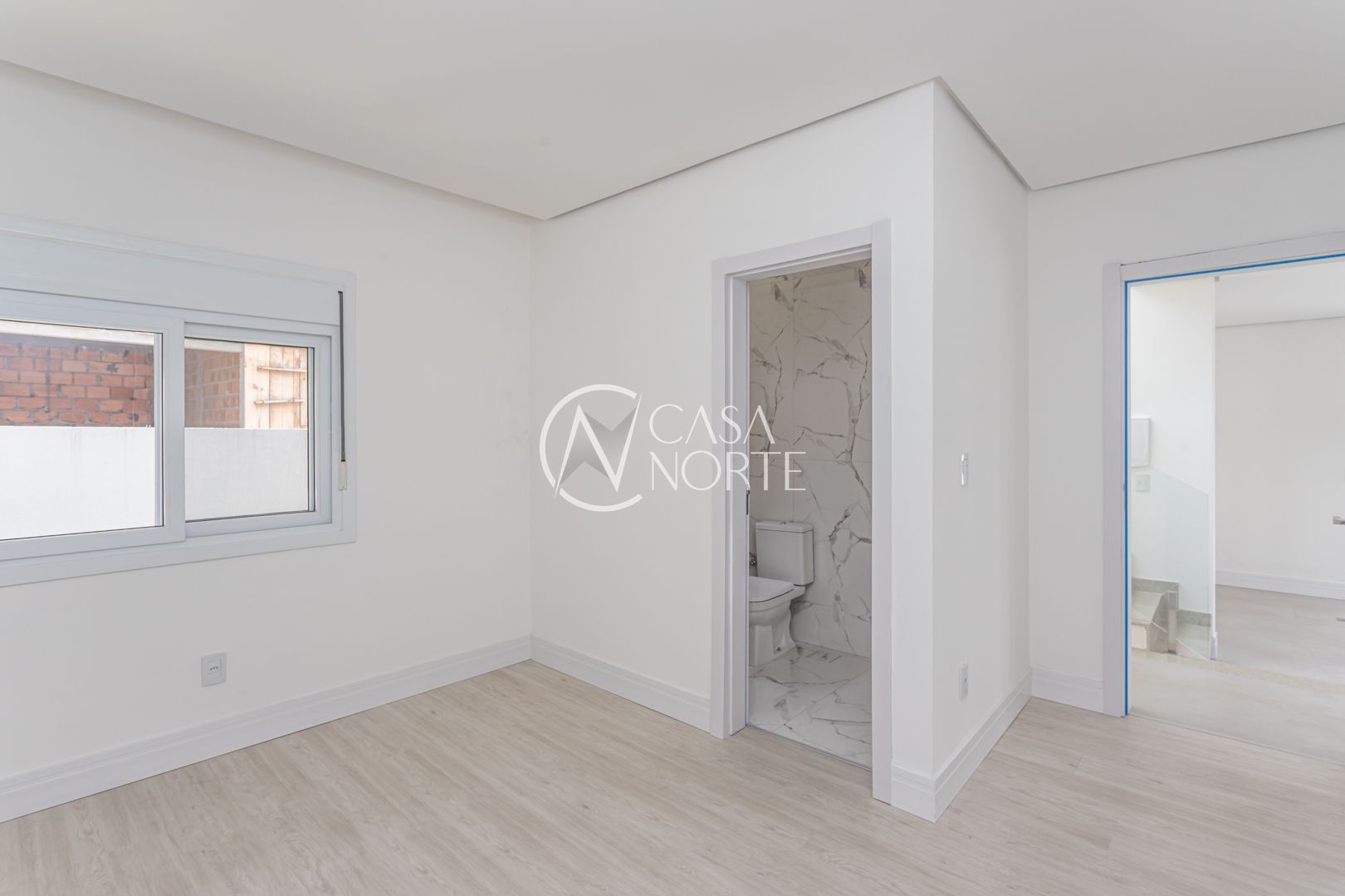 A casa possui esquadrias em alumínio em todos os ambientes, reforçando durabilidade e estética contemporânea.