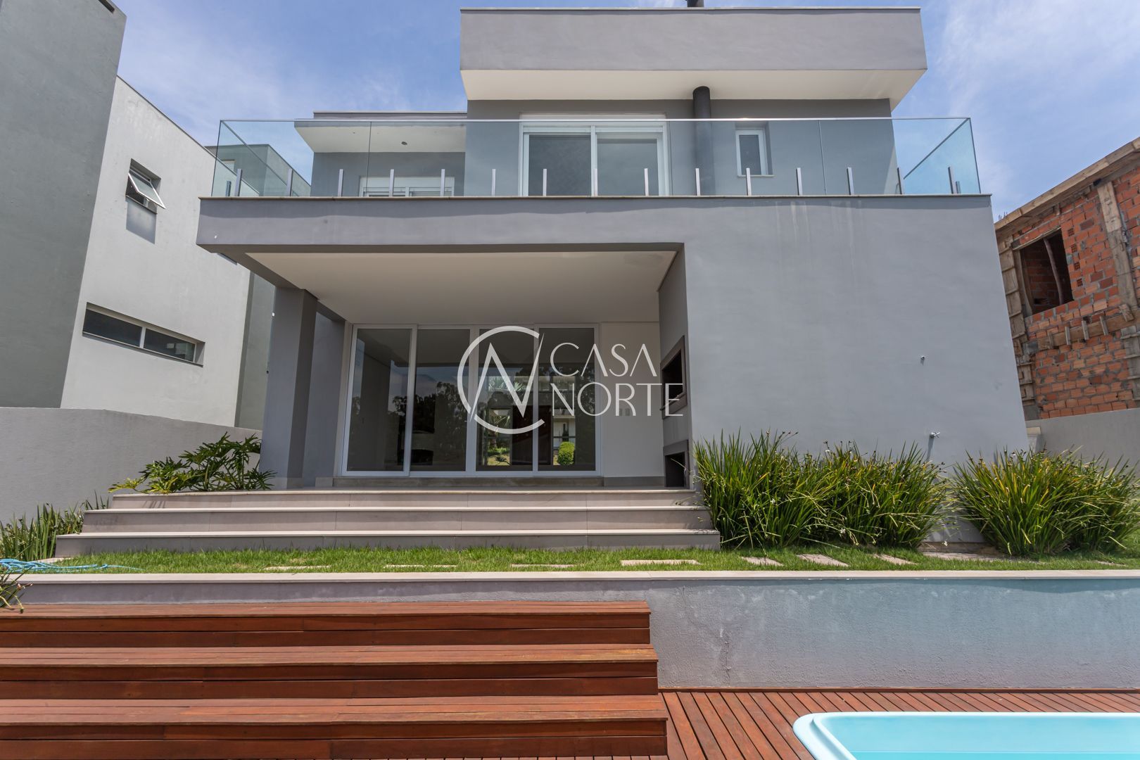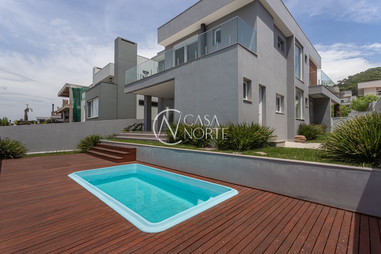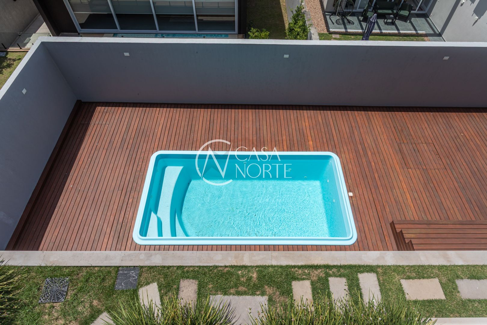 A área externa é um convite ao lazer: churrasqueira coberta, espaço para bancada, deck integrado à piscina e pátio amplo, perfeito para receber amigos e familiares com conforto e privacidade.