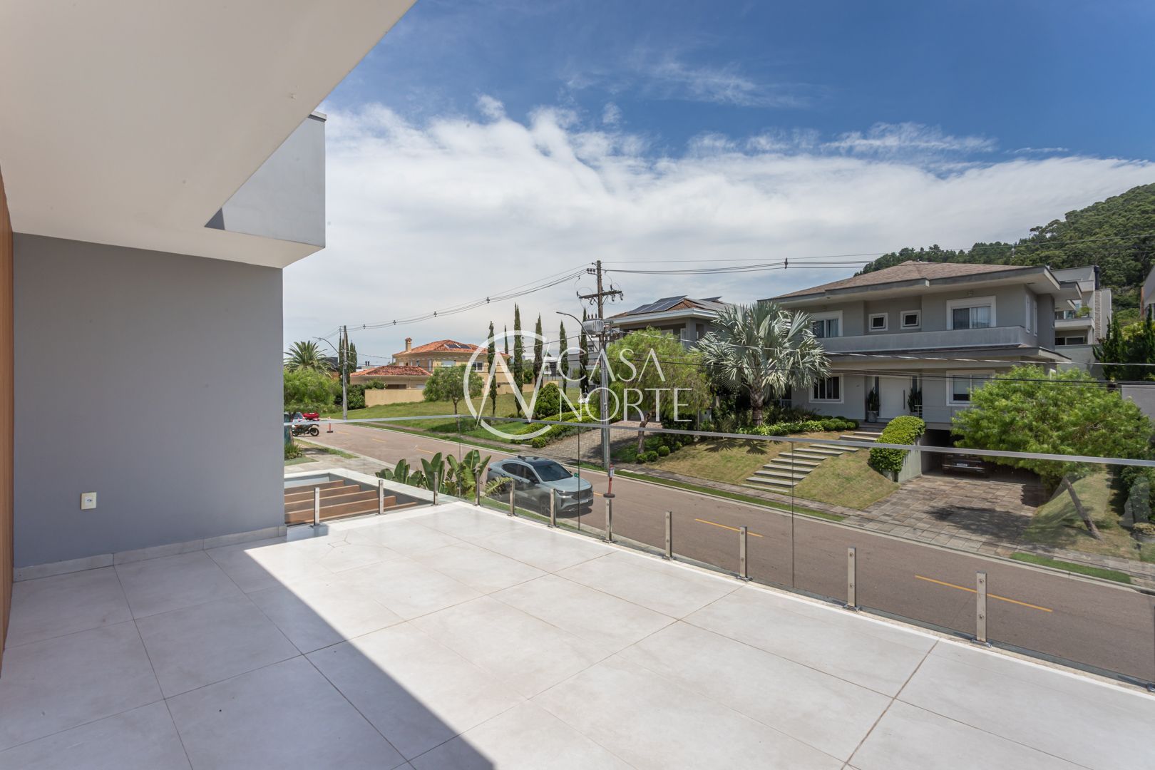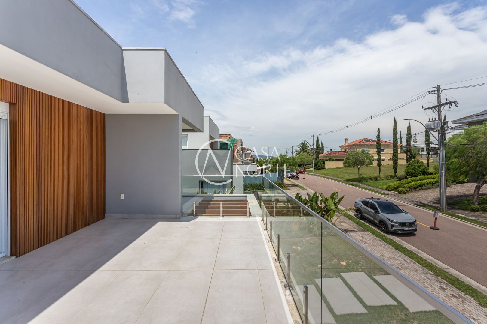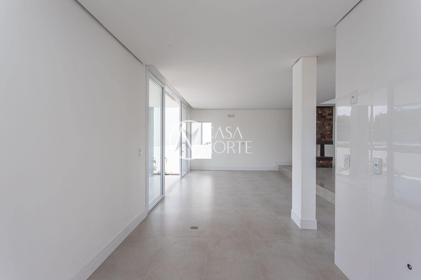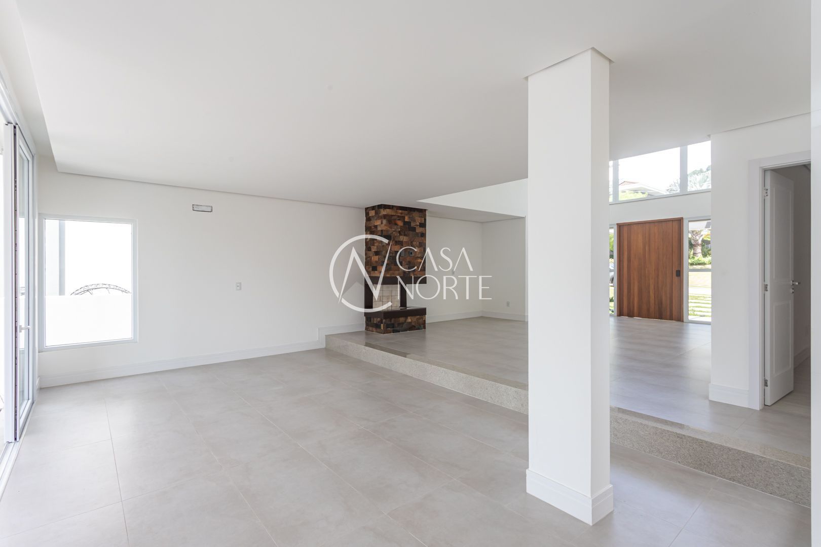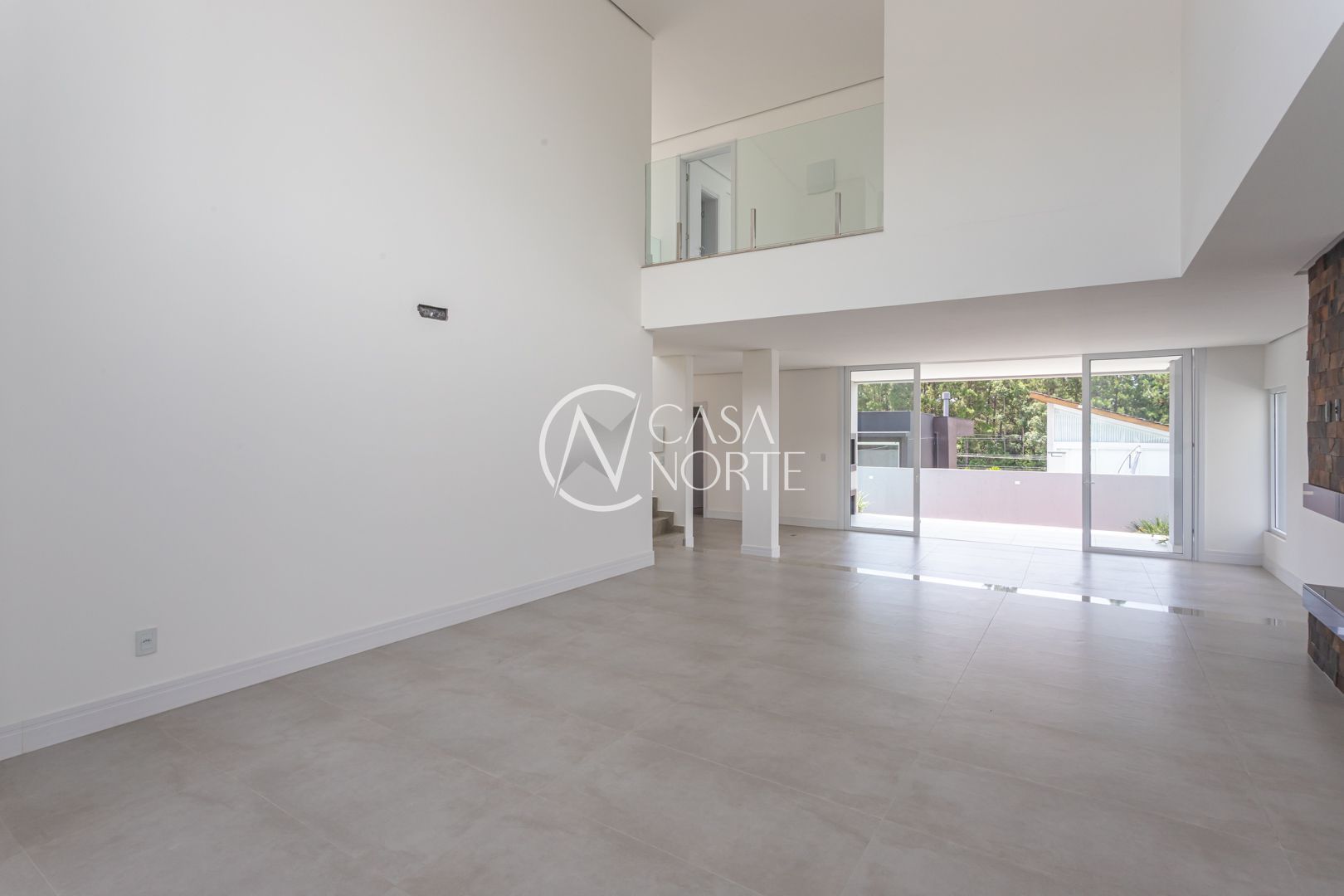 Com 484,92 m² de área privativa, a casa apresenta um living amplo e elegante, com possibilidade de até três ambientes, lareira, pé-direito elevado, piso em porcelanato e grandes esquadrias que garantem excelente iluminação natural e ventilação cruzada.