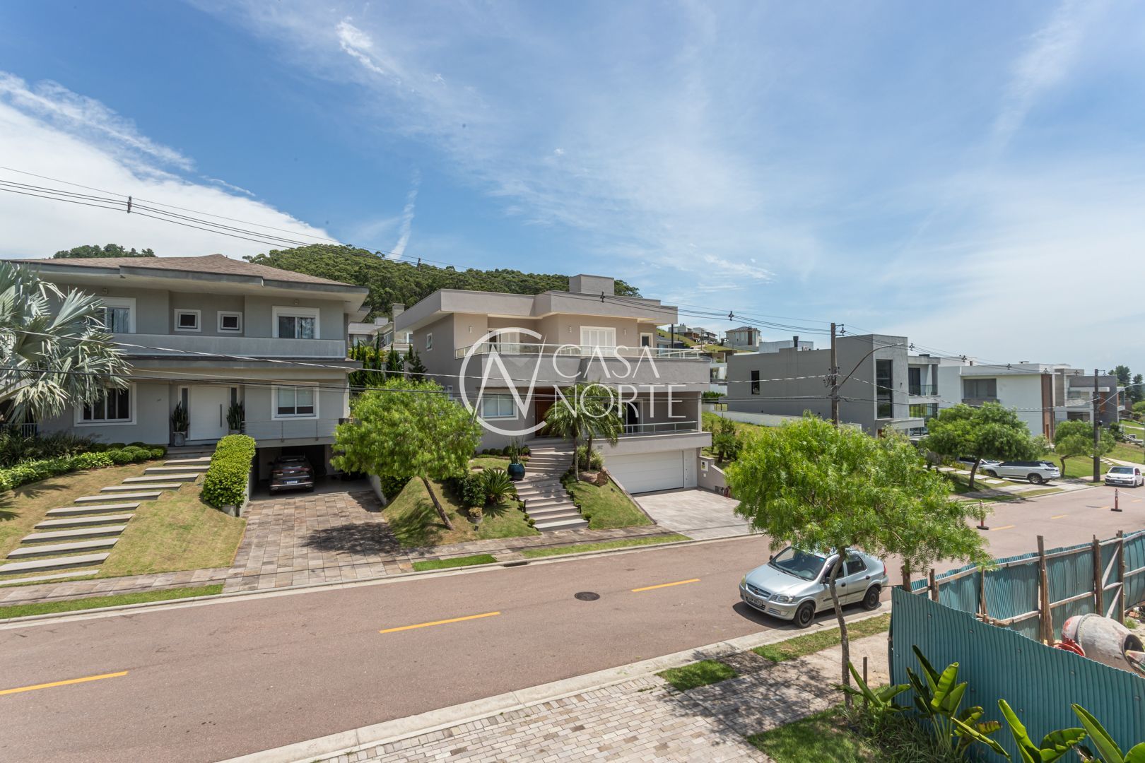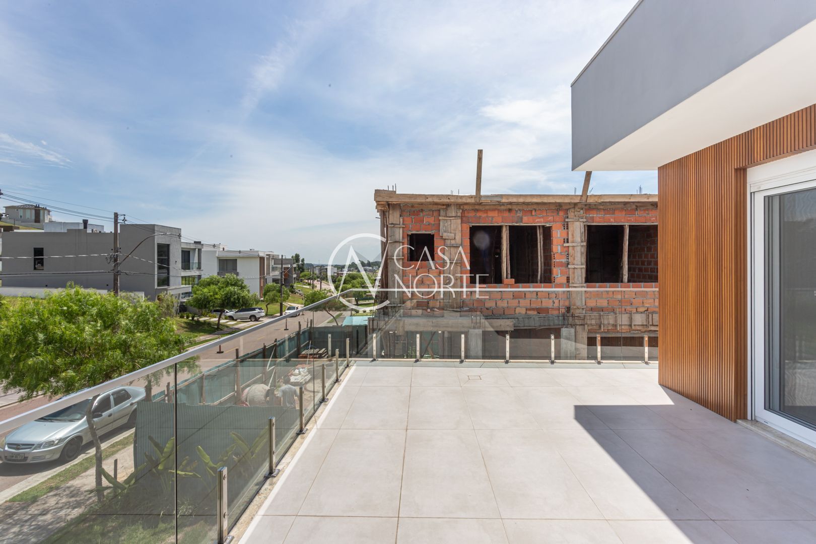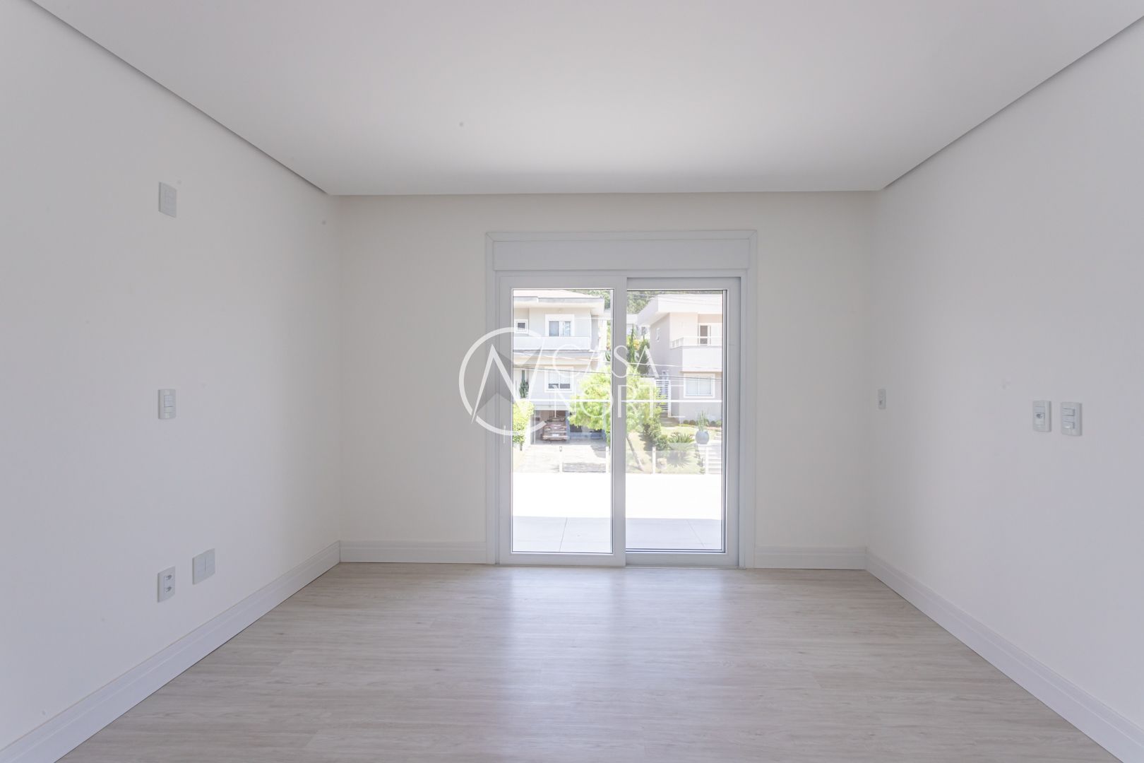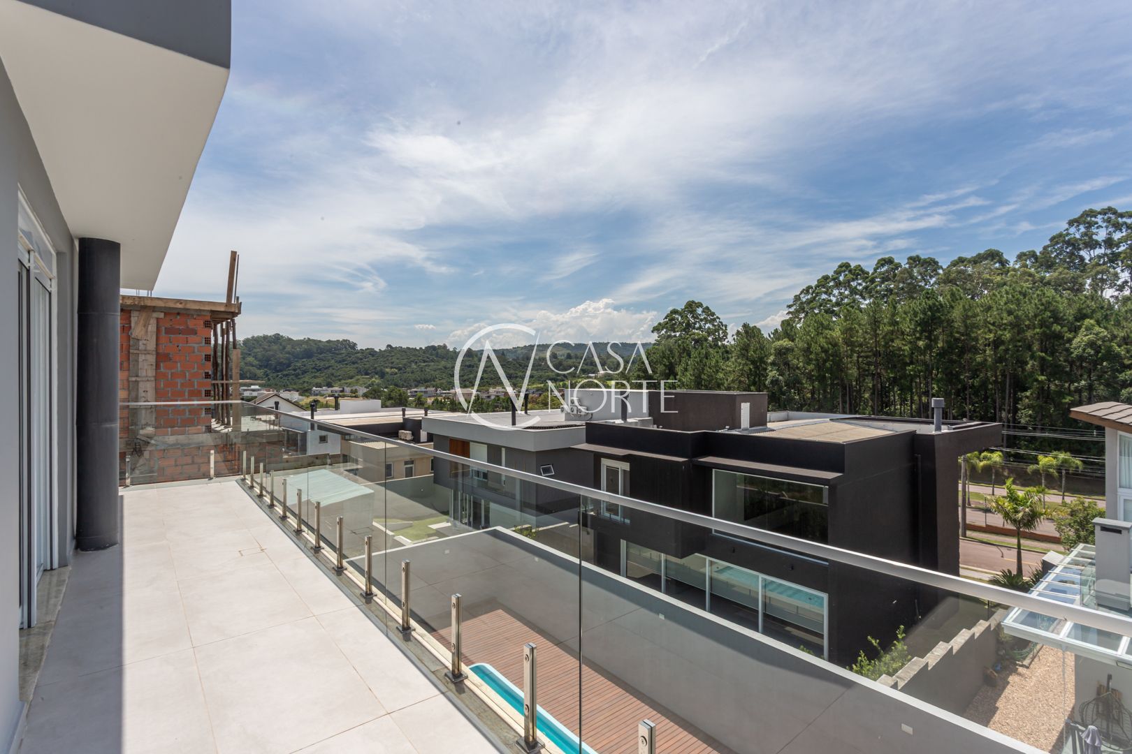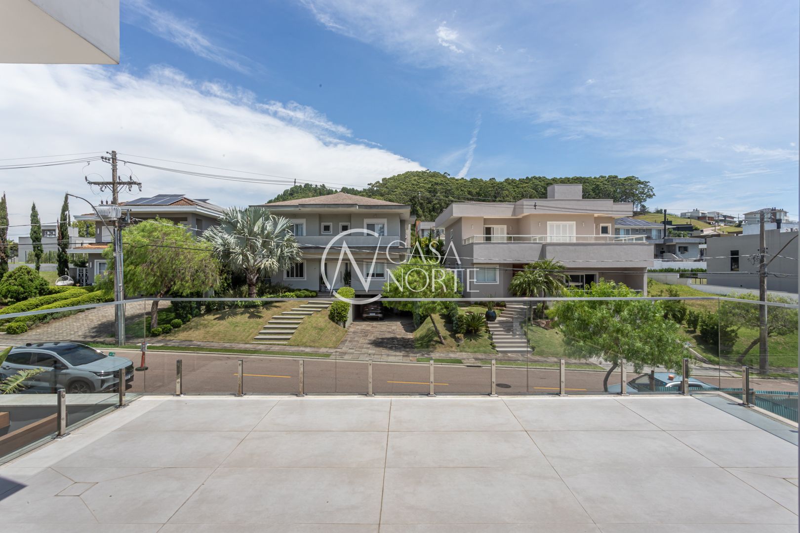 Com 484,92 m² de área privativa, a casa apresenta um living amplo e elegante, com possibilidade de até três ambientes, lareira, pé-direito elevado, piso em porcelanato e grandes esquadrias que garantem excelente iluminação natural e ventilação cruzada.