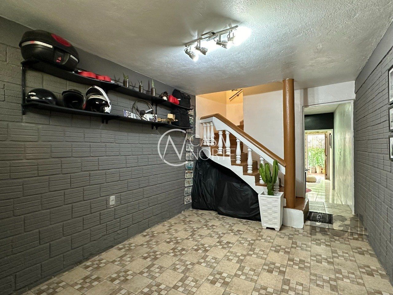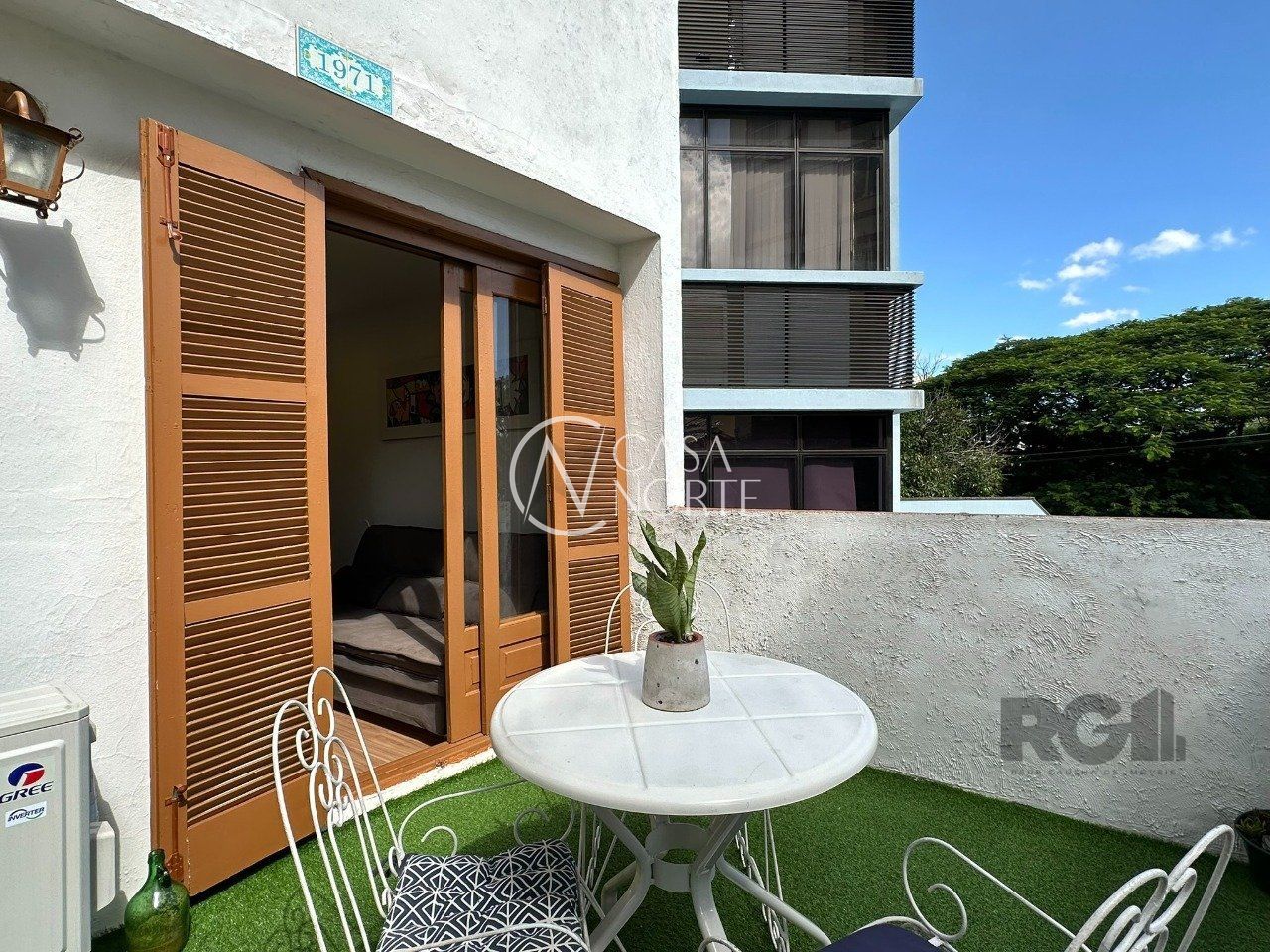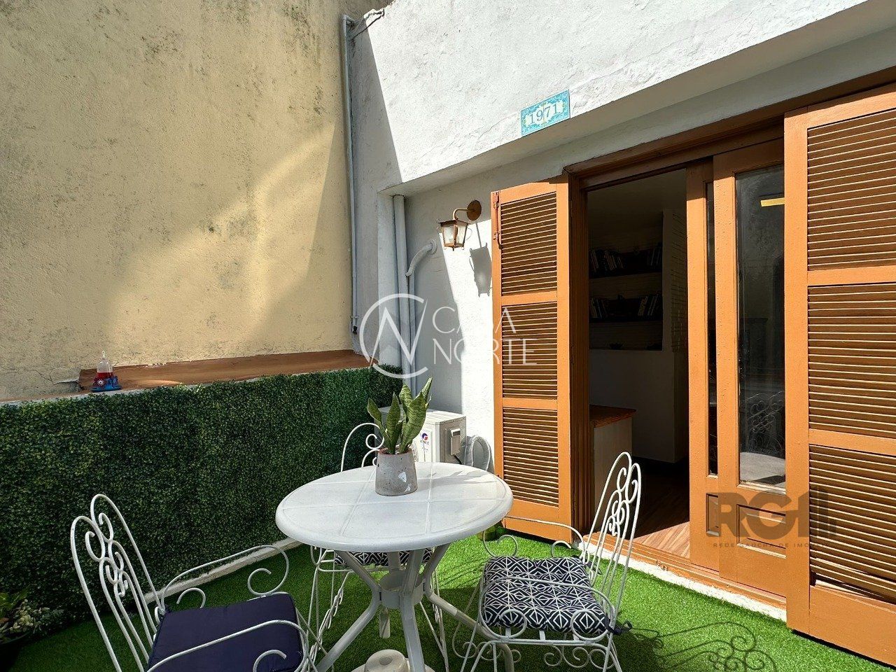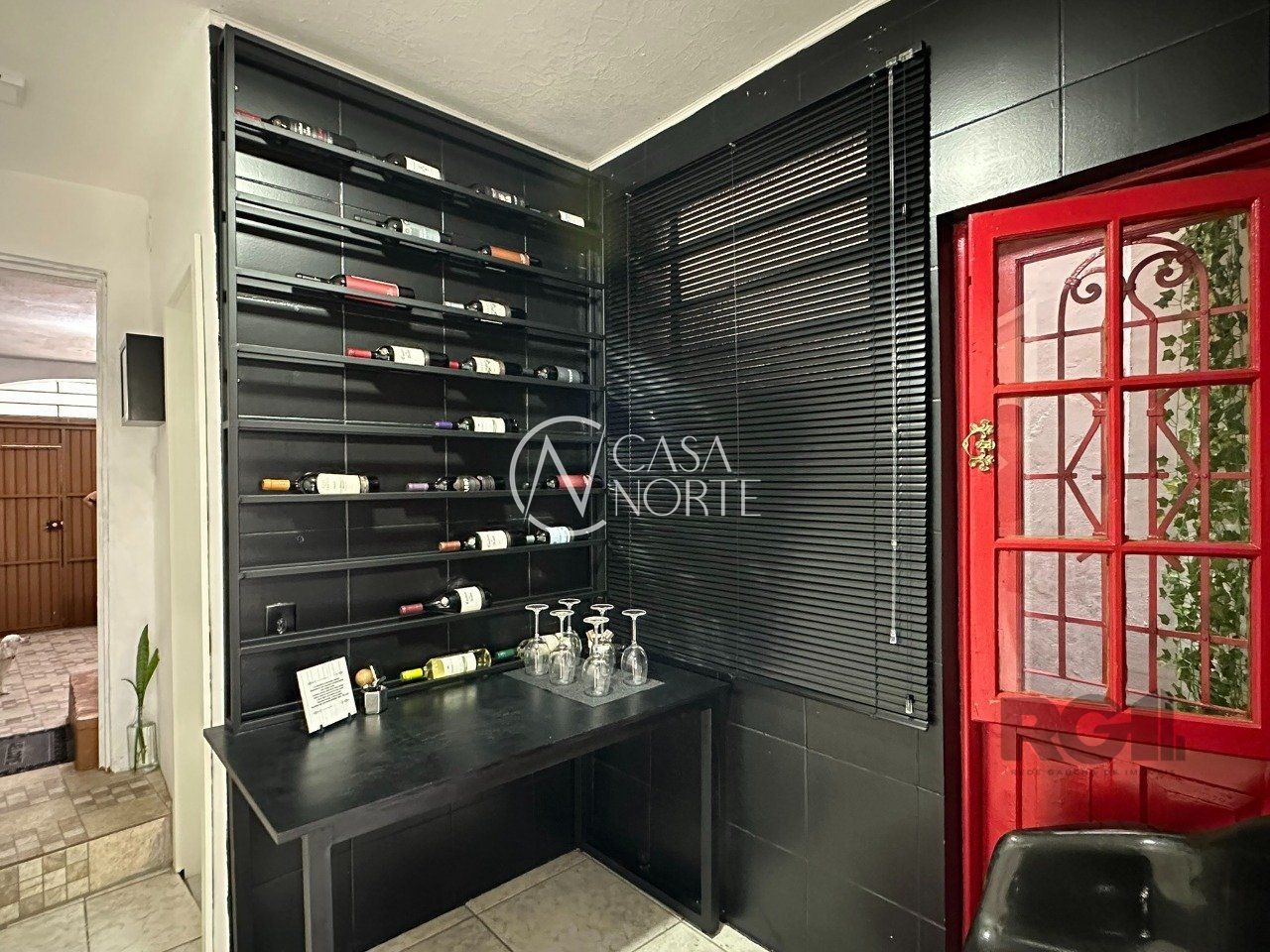 No térreo está a garagem, espaço adega com jardim de inverno, living, 1 banheiro e pátio fechado que possui orientação solar Leste.