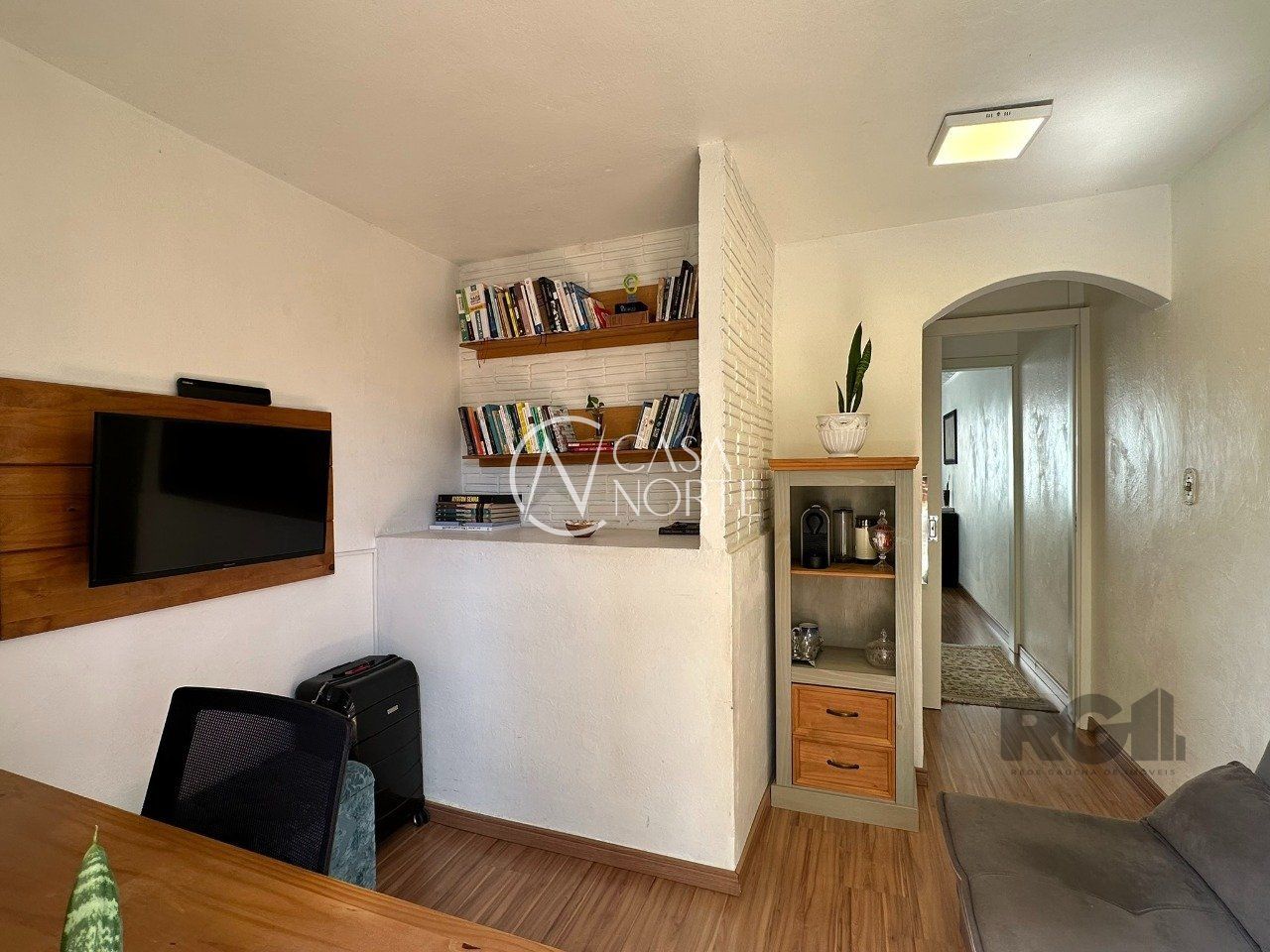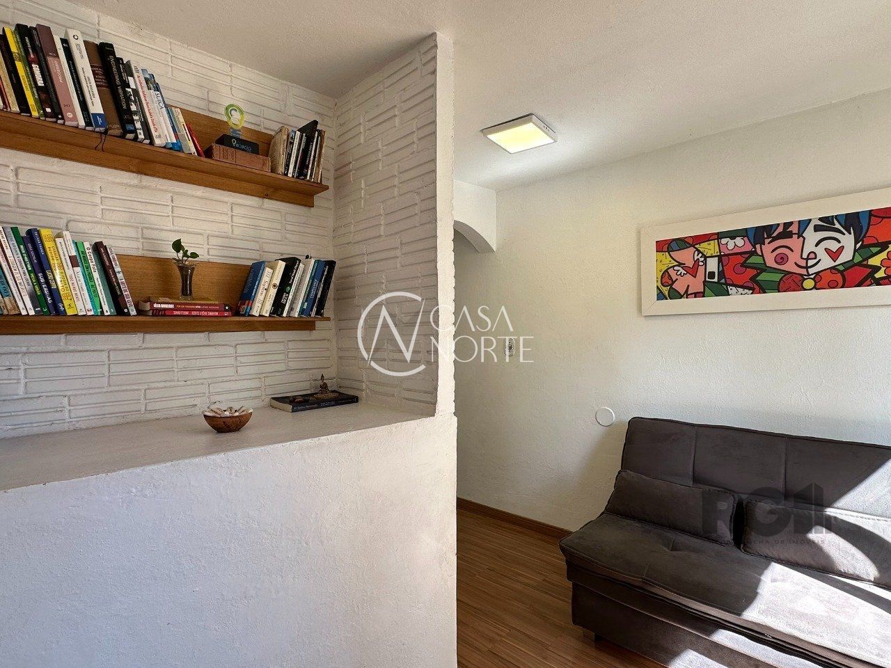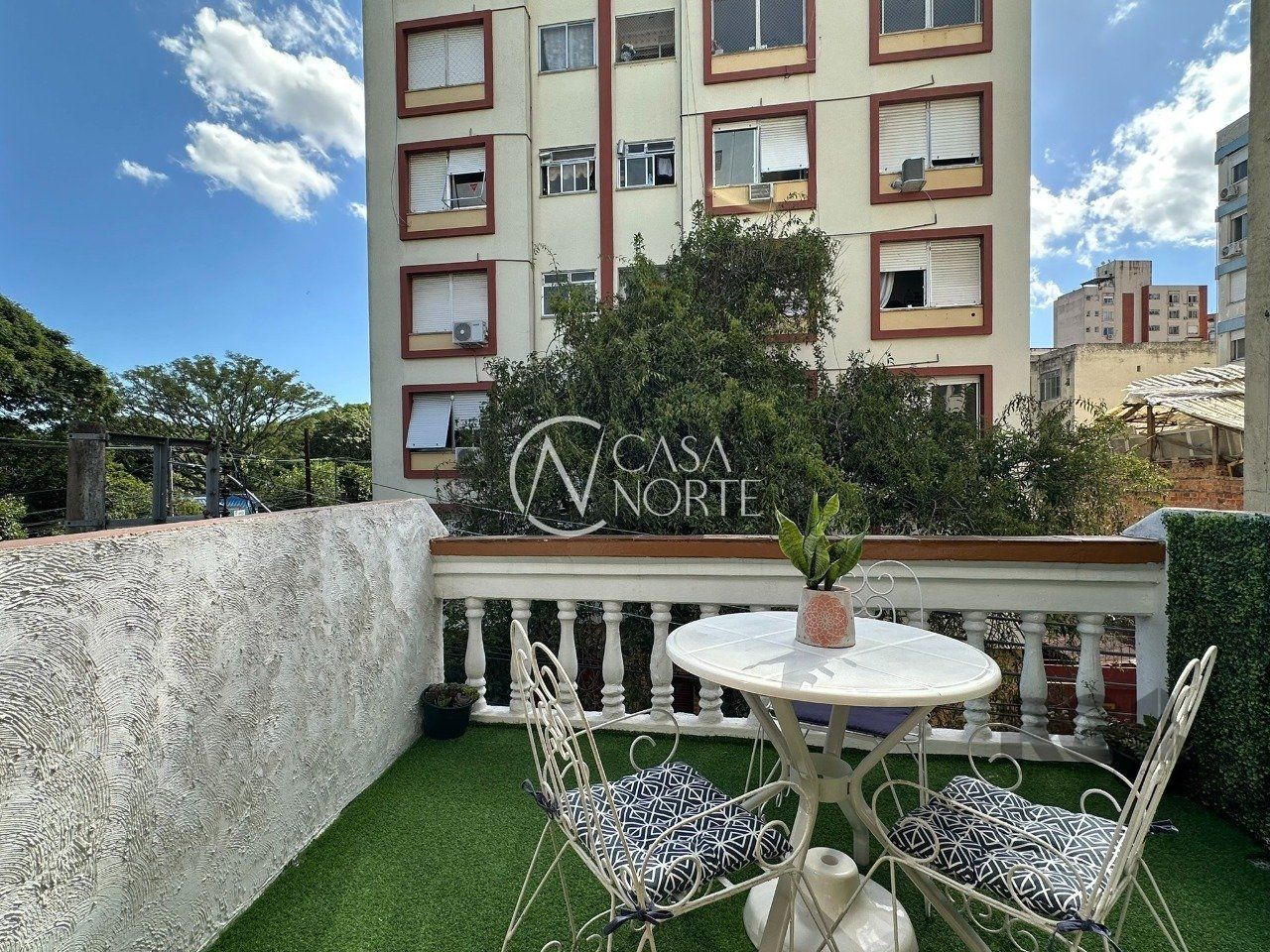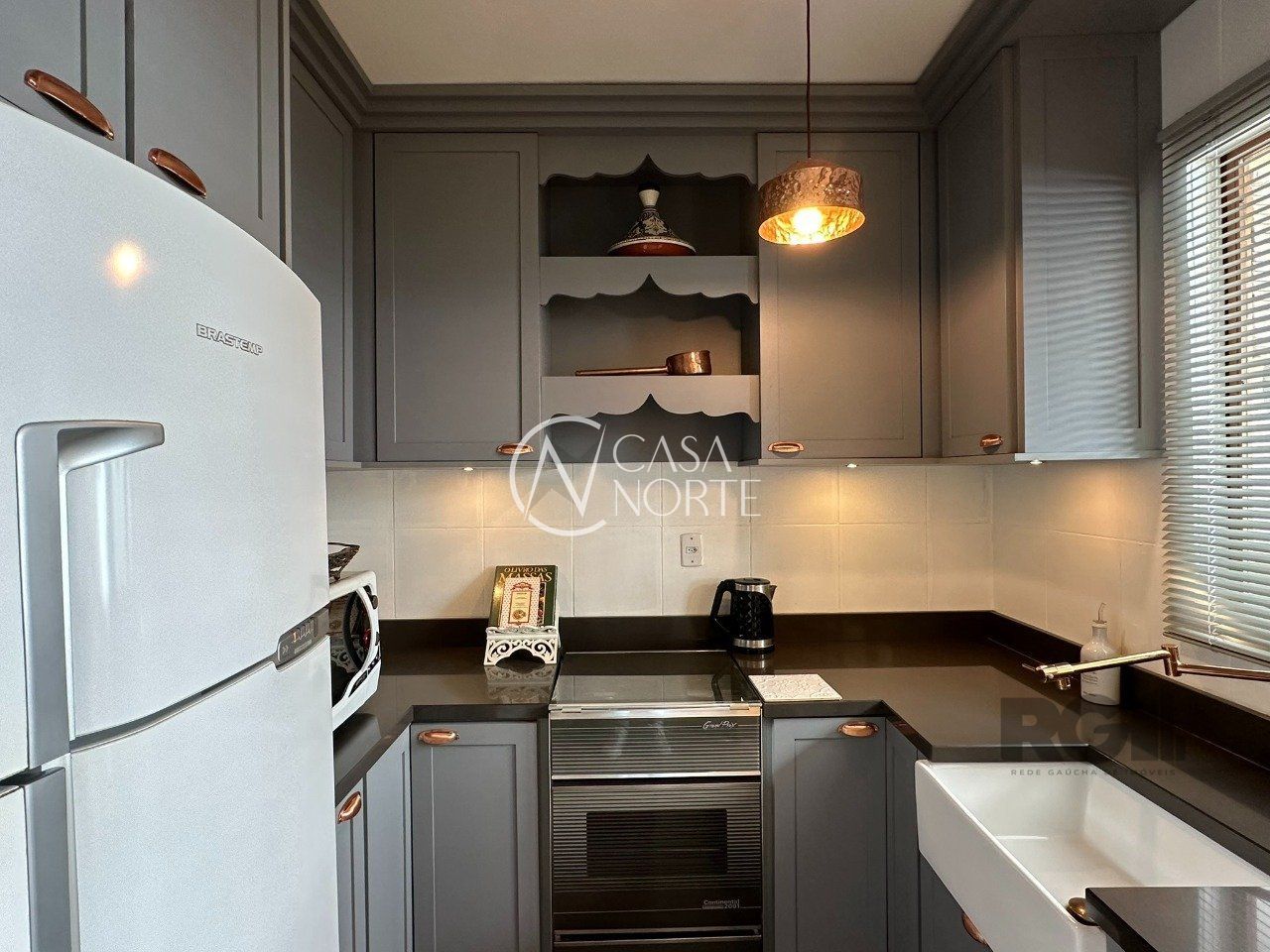 No térreo está a garagem, espaço adega com jardim de inverno, living, 1 banheiro e pátio fechado que possui orientação solar Leste.