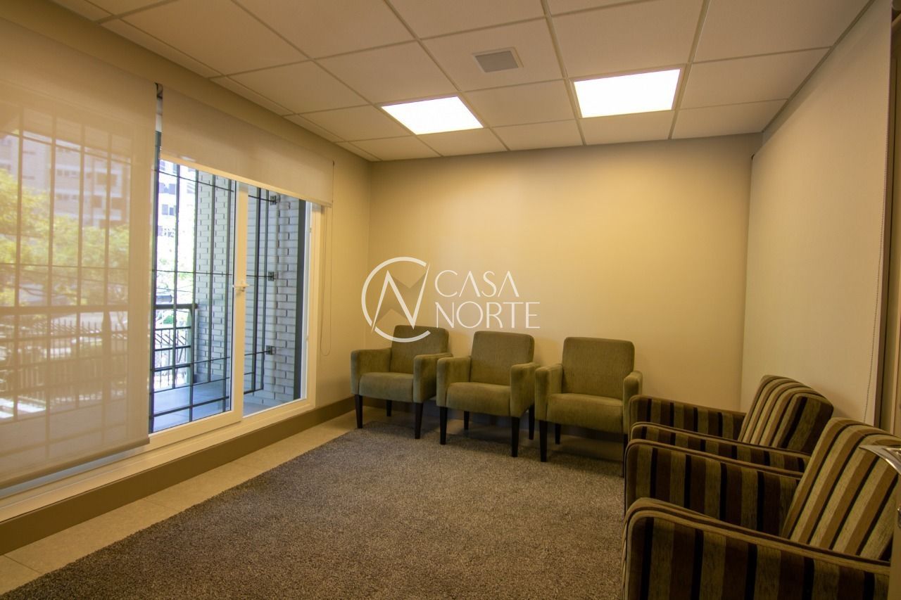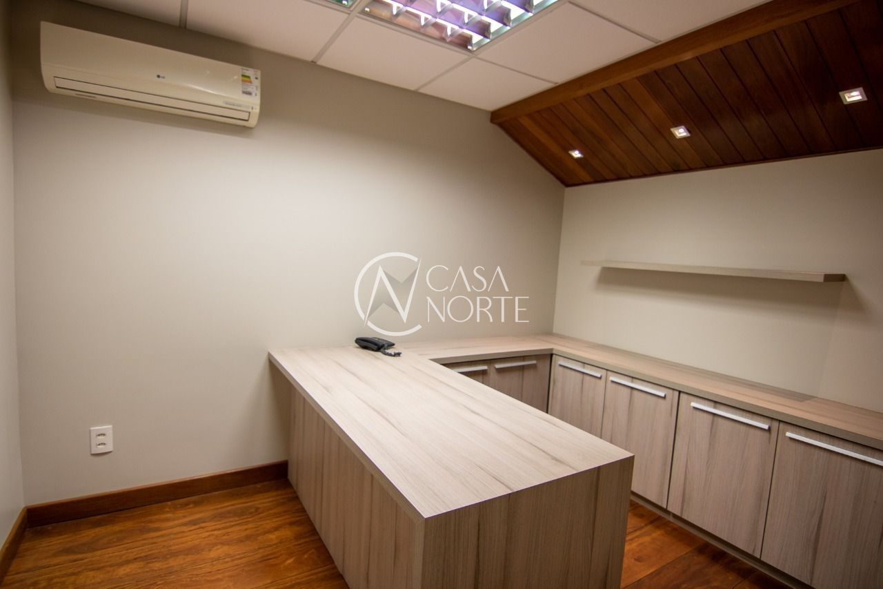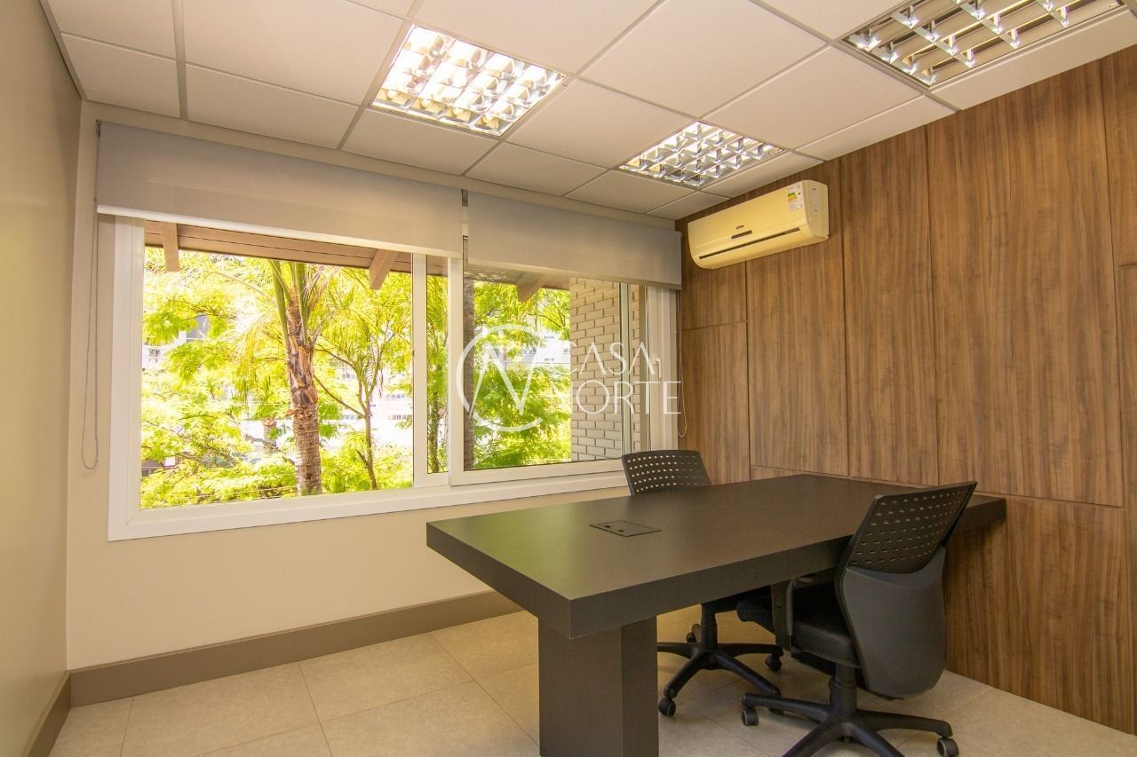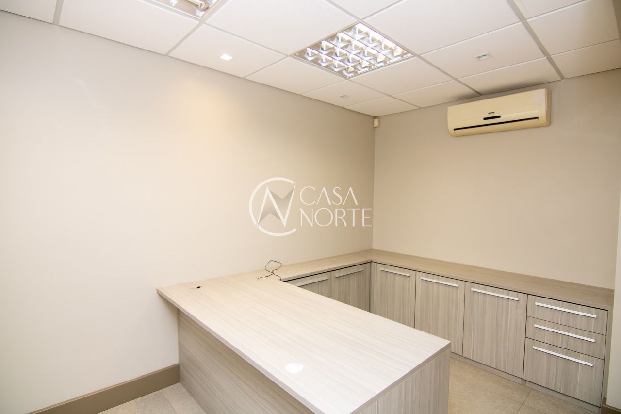 Forro mineral acústico em todo o teto. Cortinas de enrolar com tela solar em todas as janelas, salão de Eventos com projetor e tela, cozinha gourmet mobiliada, bar e churrasqueira.