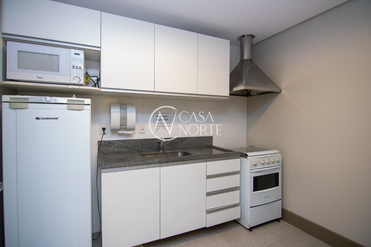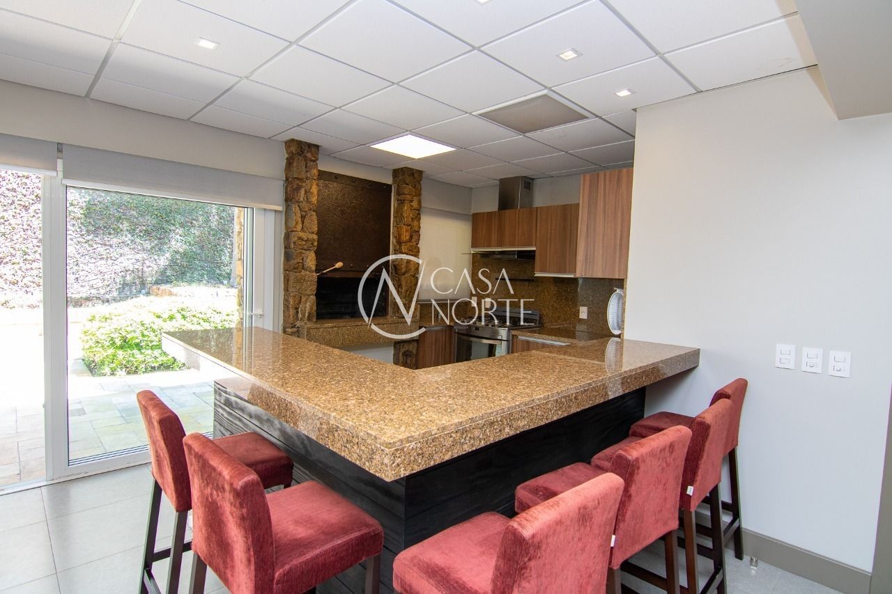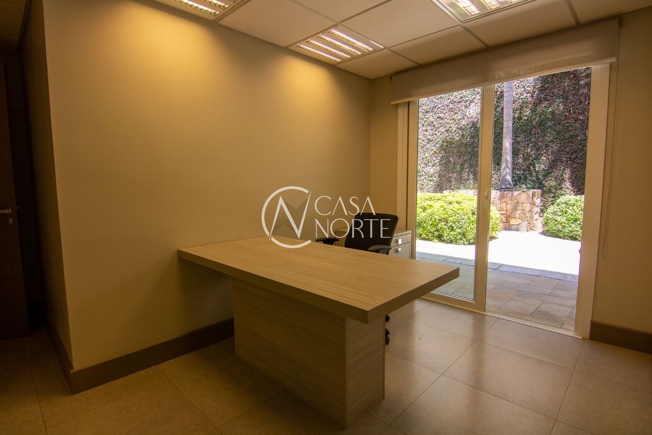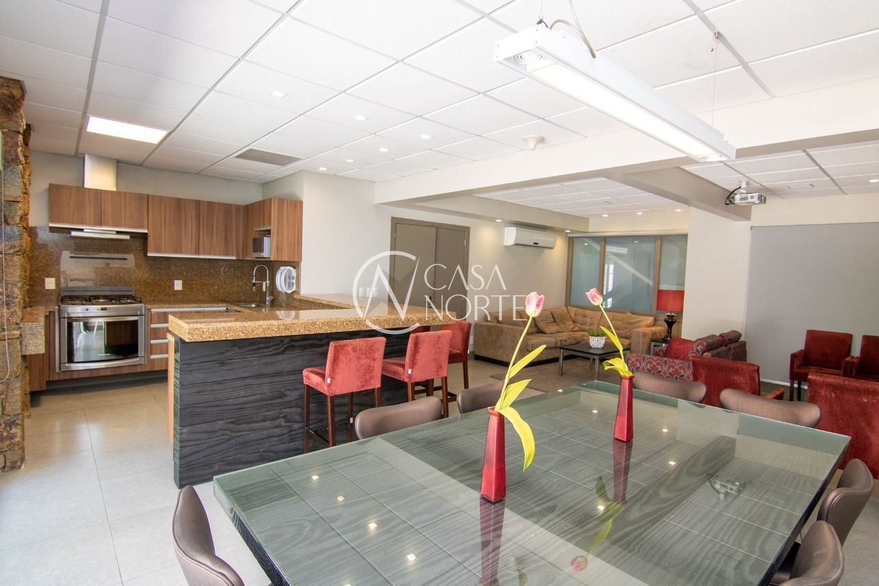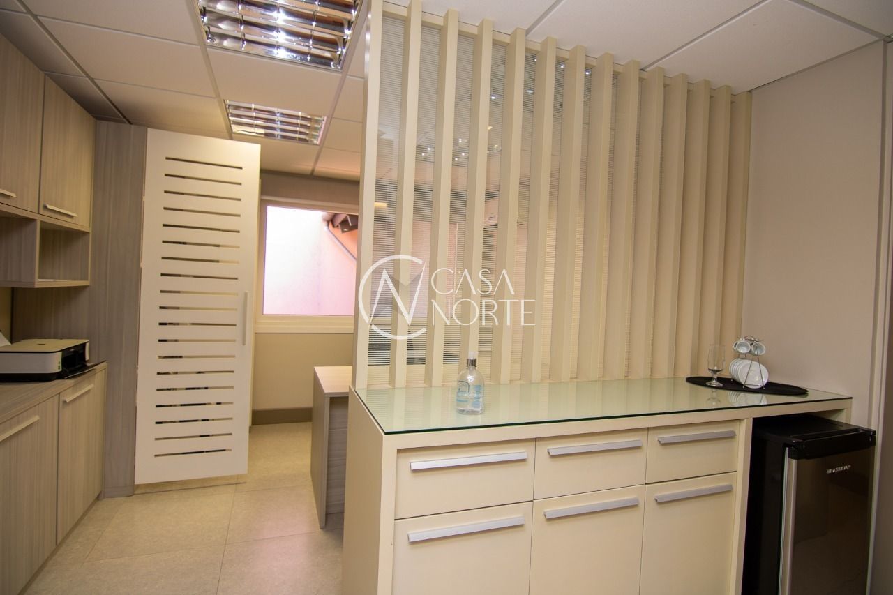 Forro mineral acústico em todo o teto. Cortinas de enrolar com tela solar em todas as janelas, salão de Eventos com projetor e tela, cozinha gourmet mobiliada, bar e churrasqueira.