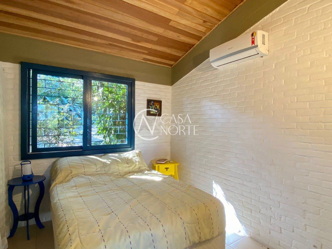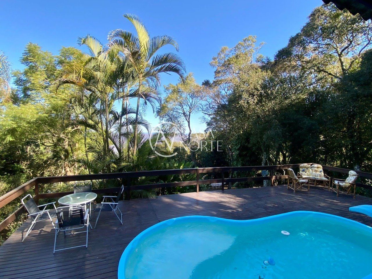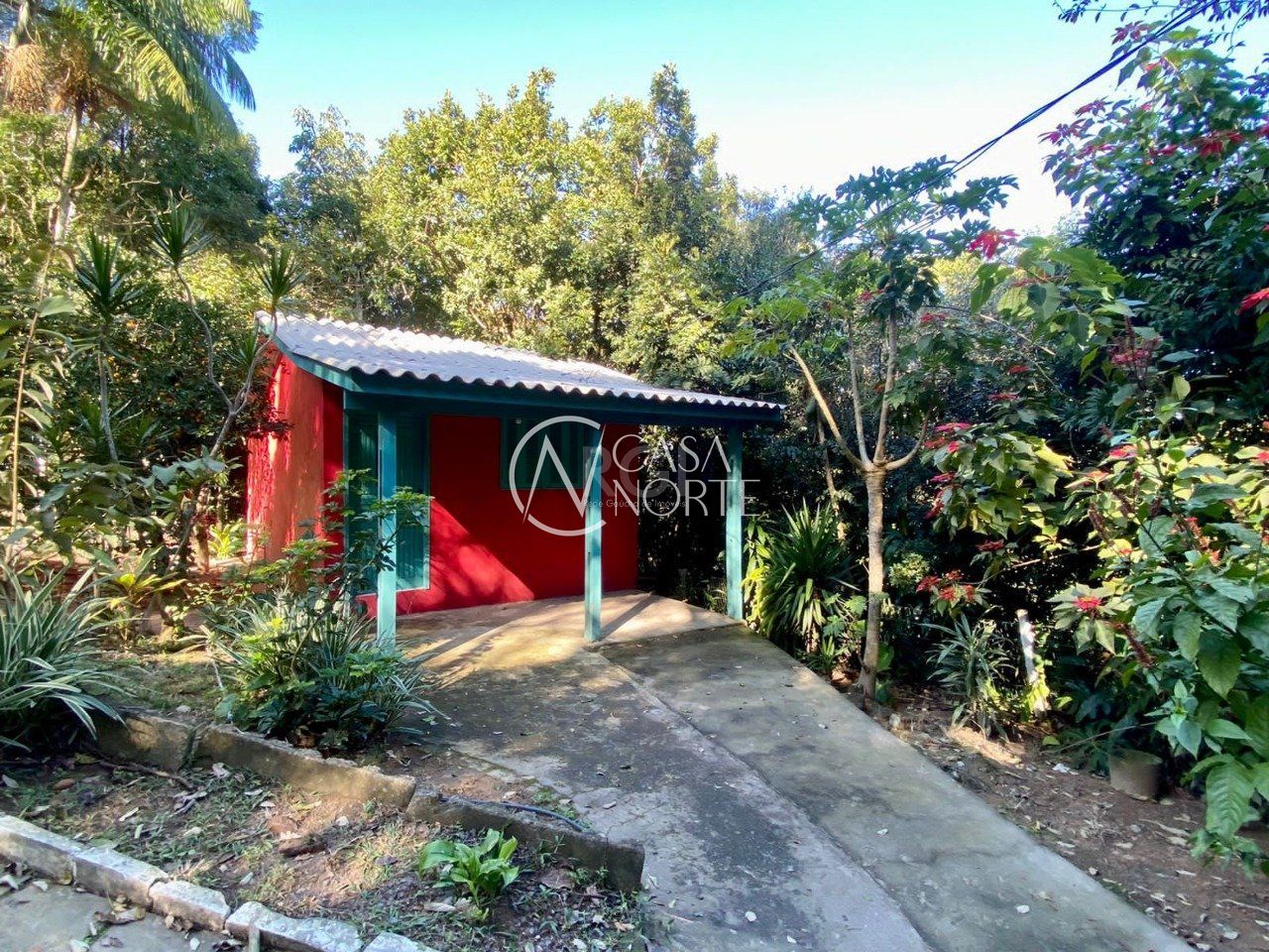 Casa do caseiro com quarto sala e banheiro. Possui também um banheiro externo que dá acesso para a piscina.