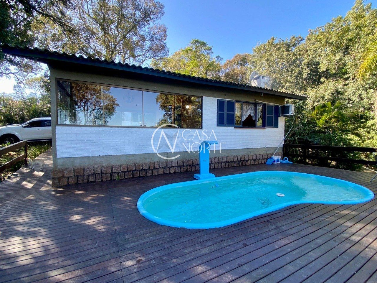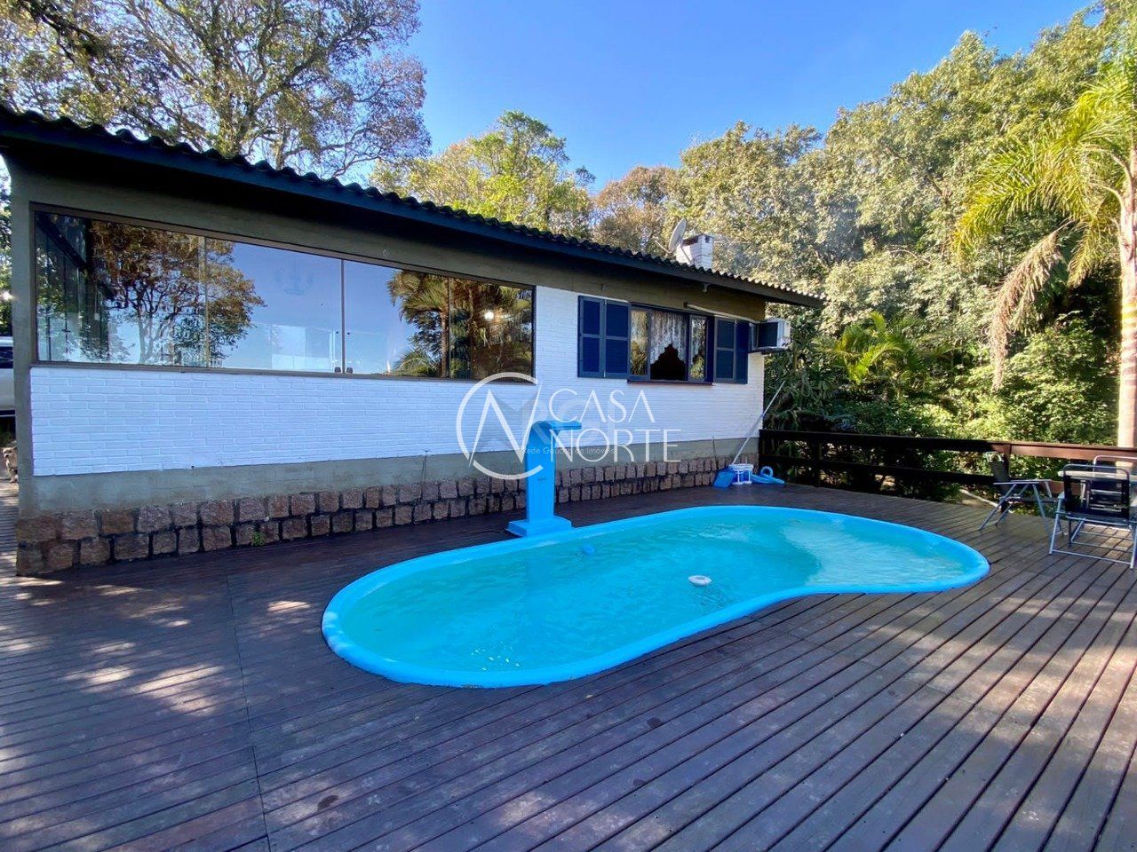 Excelente sítio em condomínio fechado no bairro Ponta Grossa. Arborizado com árvores nativas e frutíferas, com três casas. A casa principal com sala e lareira uma suite, cozinha ampla com fogão campeiro e churrasqueira, Deck com piscina é uma vista eterna para o Guaíba.