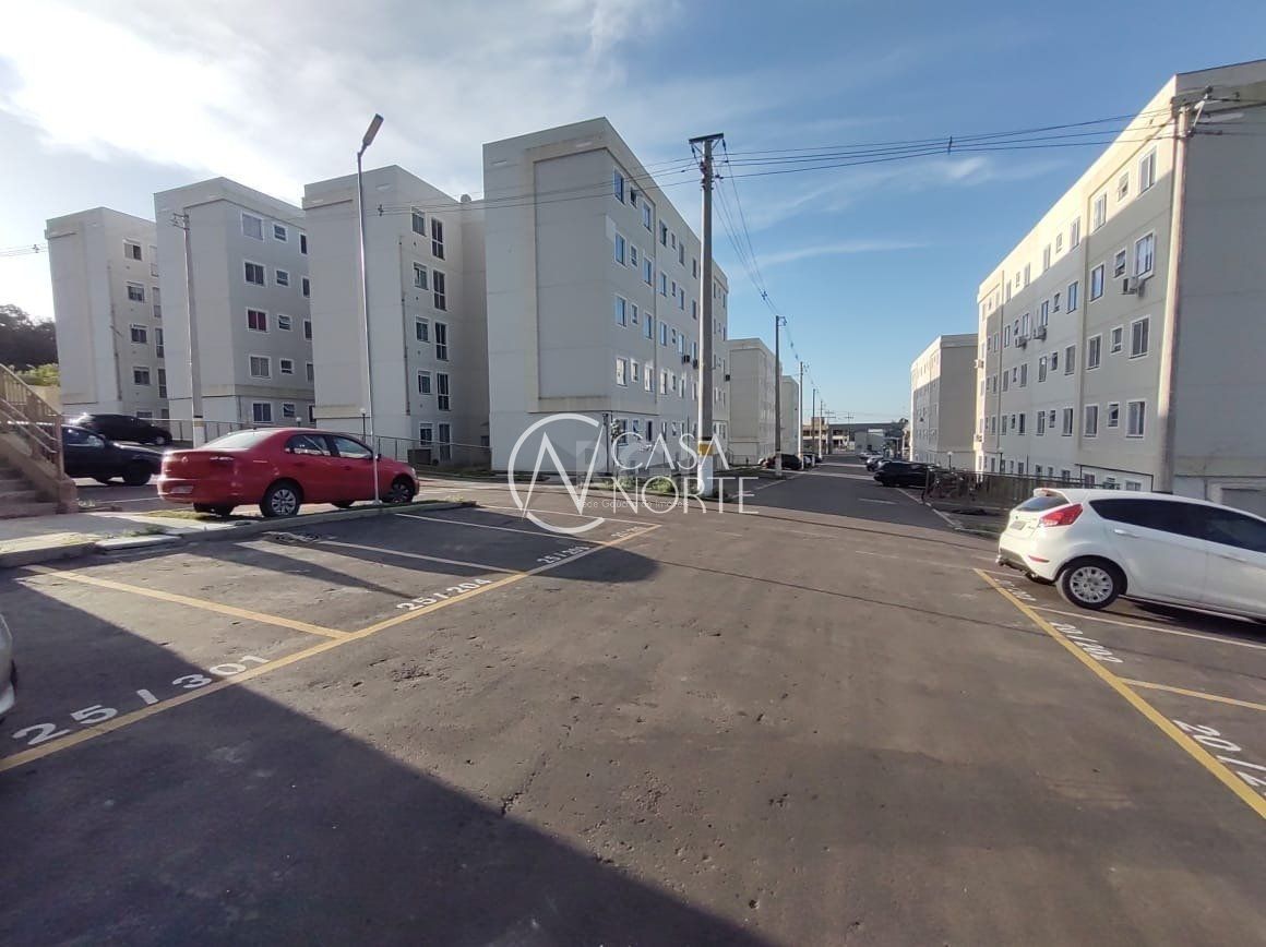 Possui dois dormitórios, living de estar e jantar, banheiro social e área de serviço integradas.