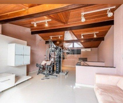 Terceiro pavimento com espaçoso sótão, estar íntimo e equipamentos de ginástica.