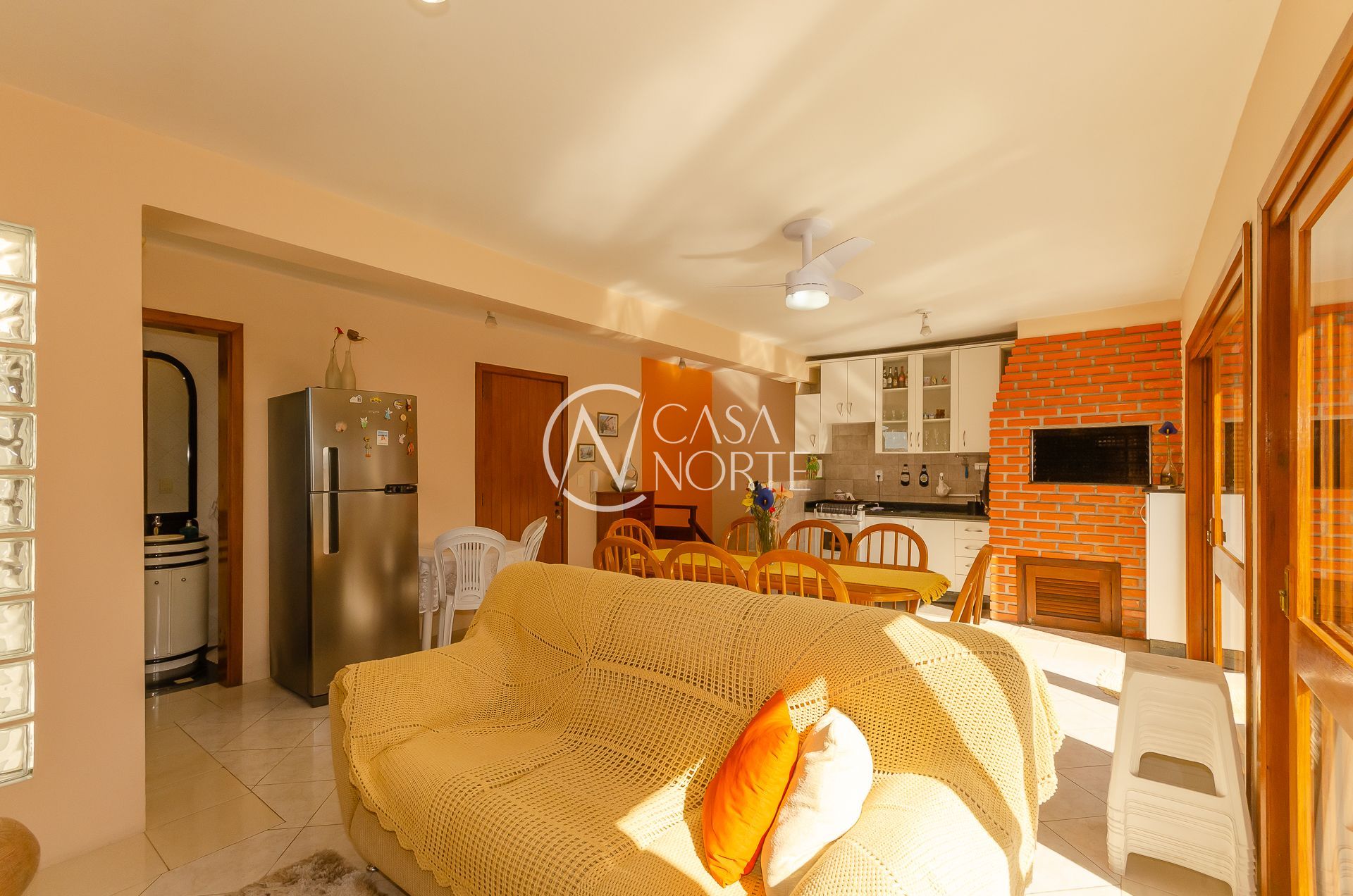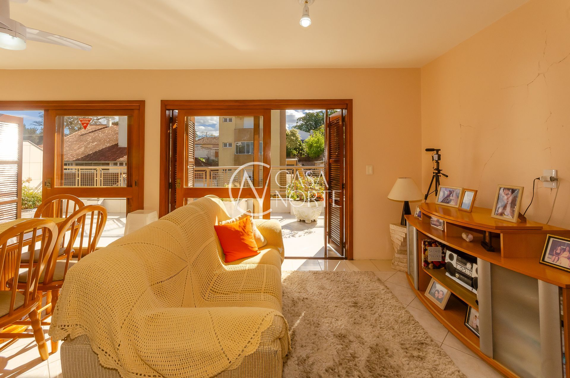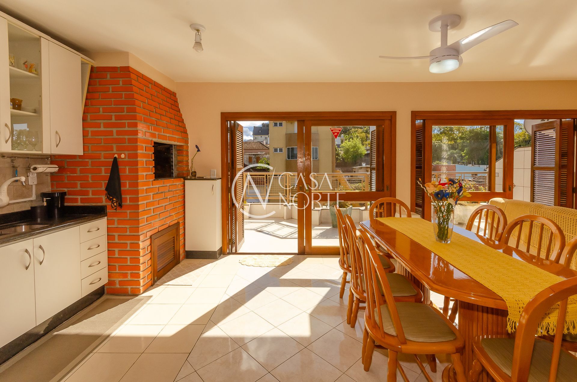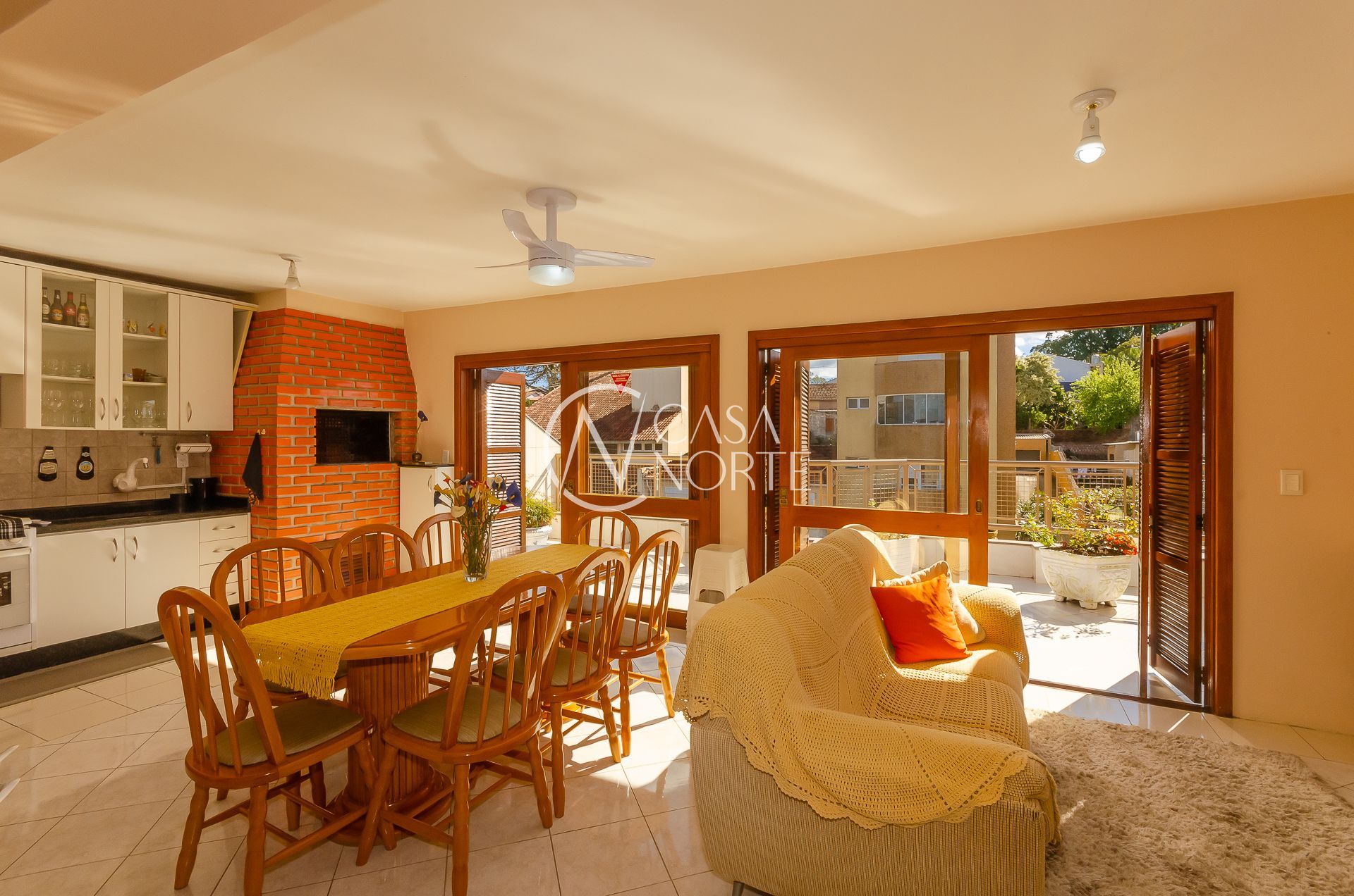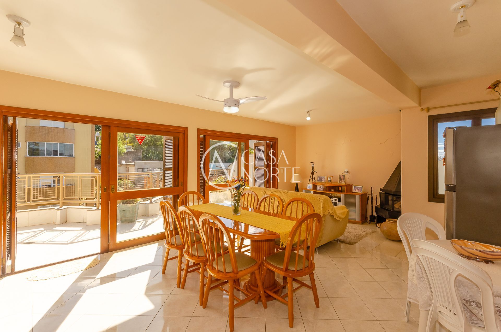 No andar superior grande living com três ambientes ( estar com lareira, jantar e churrasqueira gourmet) e amplo terraço.