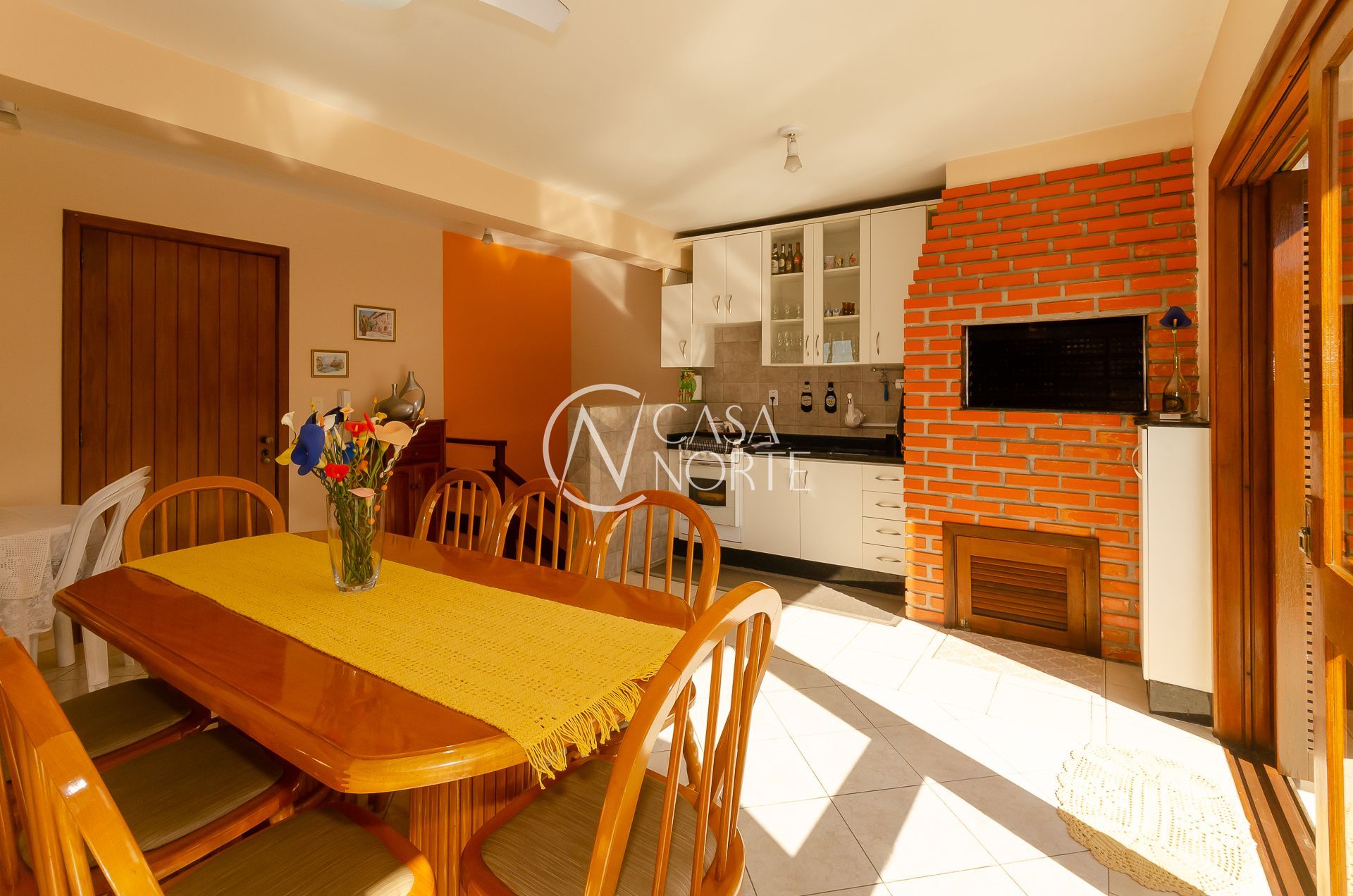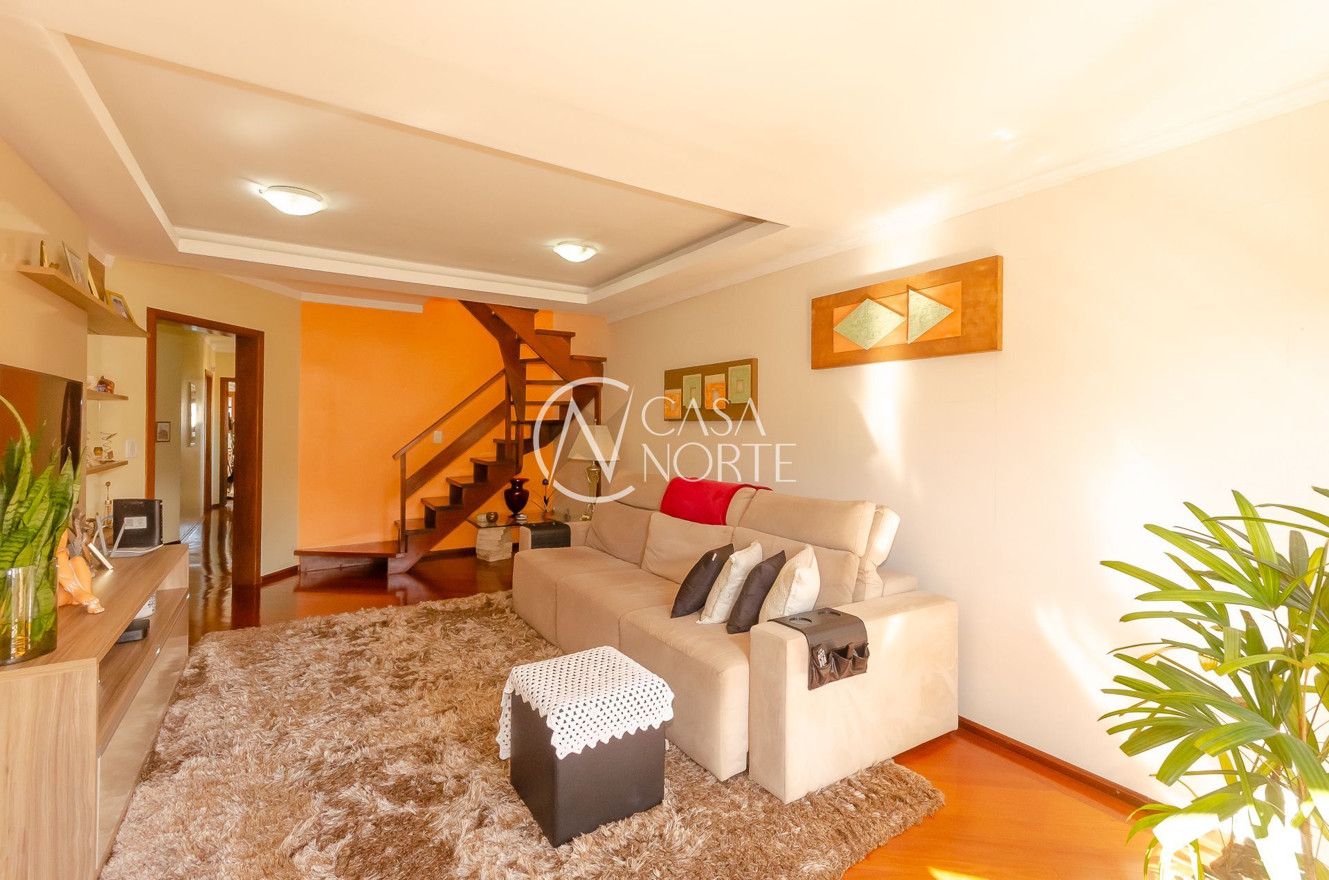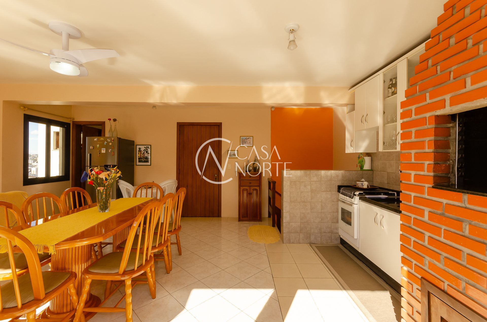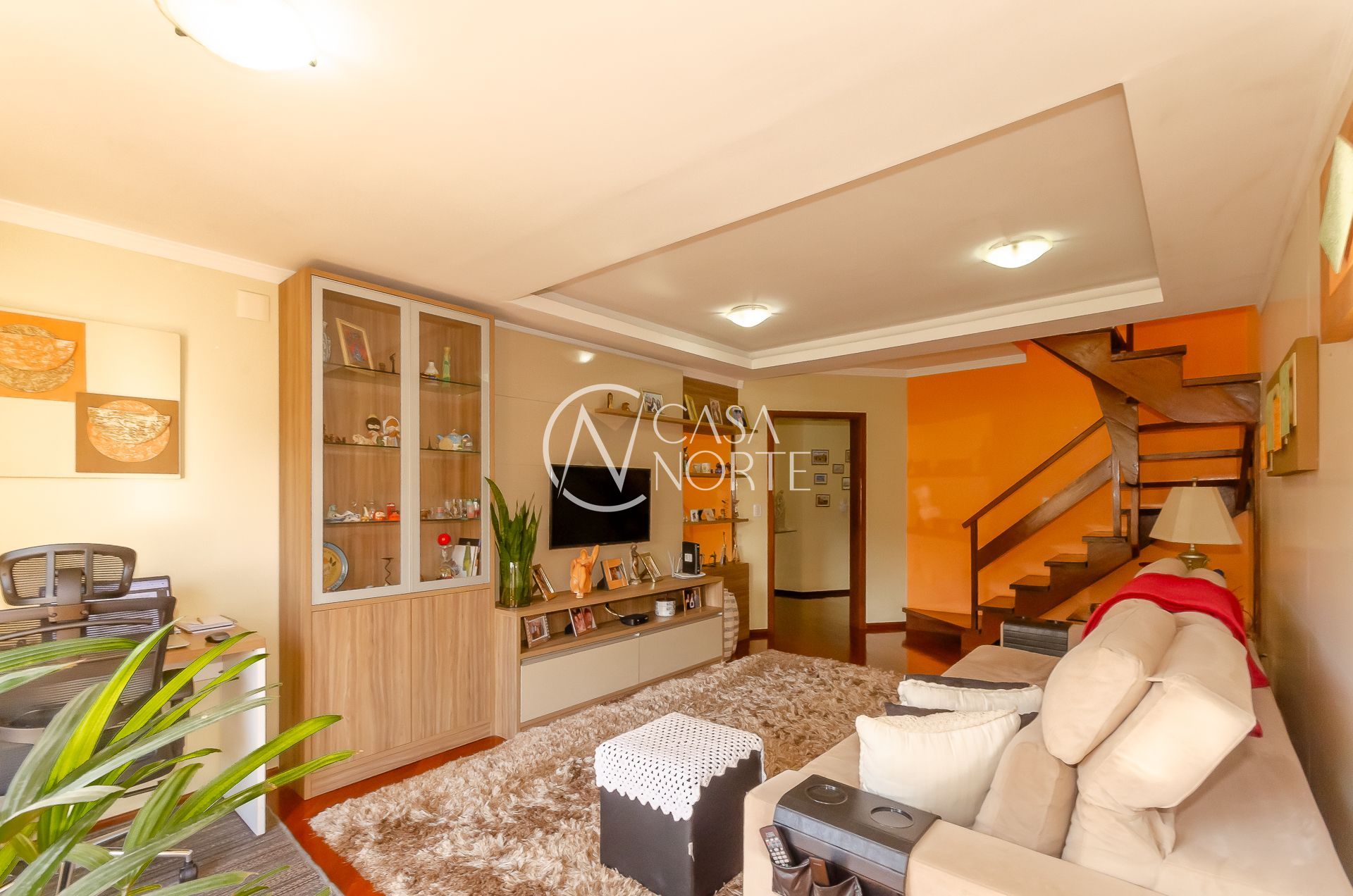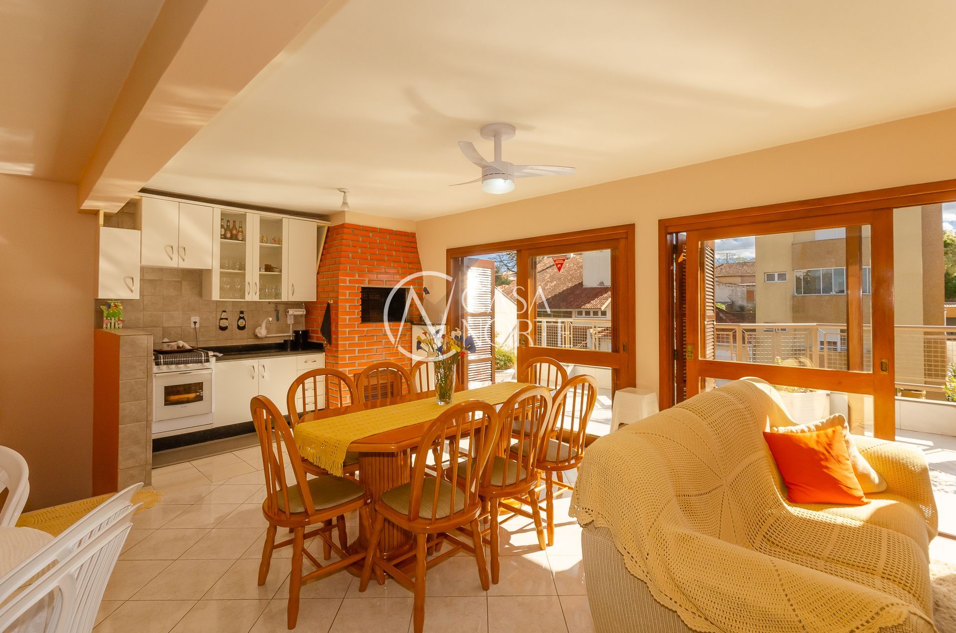 No andar superior grande living com três ambientes ( estar com lareira, jantar e churrasqueira gourmet) e amplo terraço.