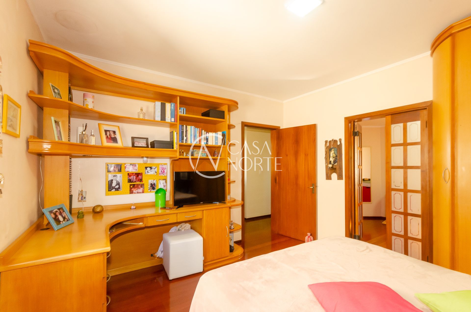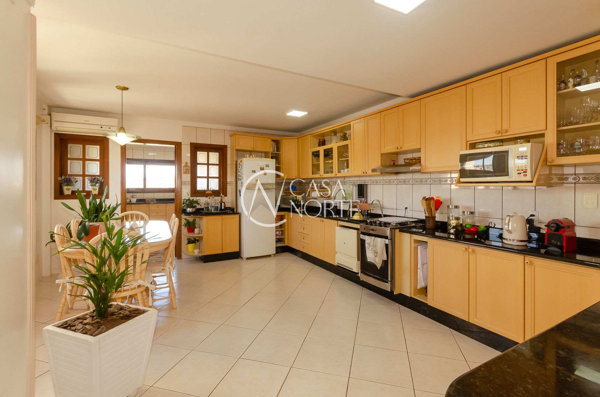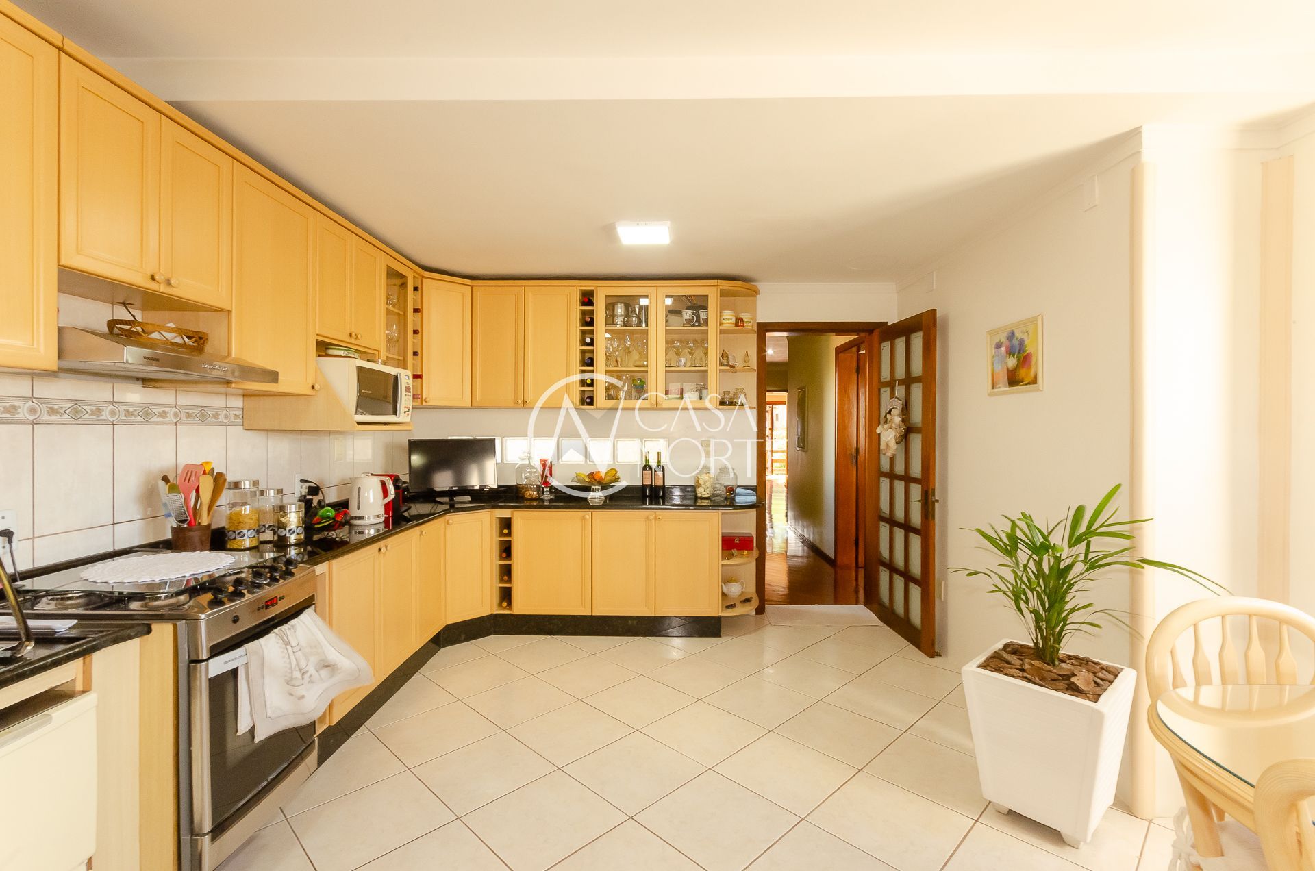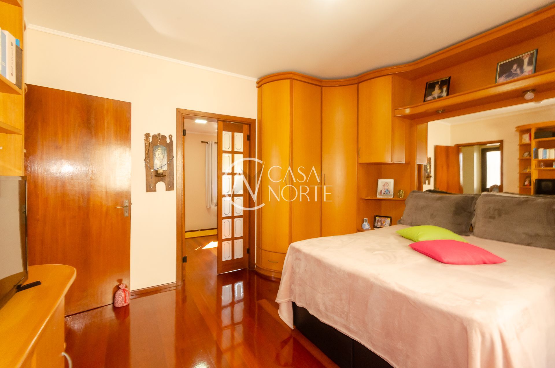 No primeiro andar são 3 dormitórios, sendo uma suíte com sacada (possibilidade de um 4° dormitório), estar social com sacada e Home, banheiro social, enorme cozinha/ jantar, área de serviço com vista/ banheiro de serviço e dormitório de visitas com sacada e encantadora vista.
