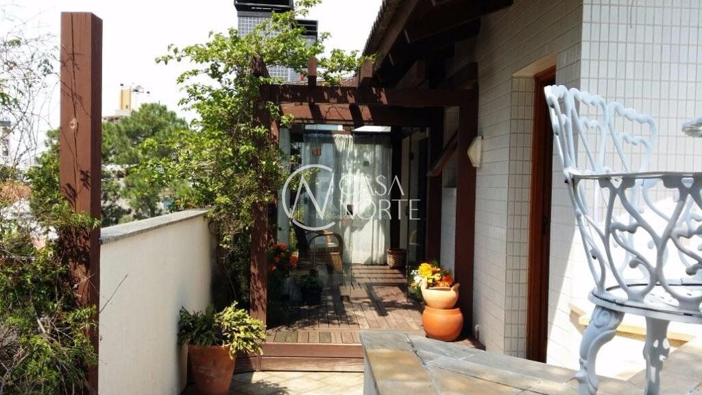 Vende cobertura mobiliada, com 223,91 m² privativos, 3 dormitórios - sendo um suíte com hidro, localizada no bairro Petrópolis, a poucos minutos da praça da Encol e do Grêmio Náutico União. Possui living com lareira, 3 vagas de garagem coberta e piscina privativa, salão com churrasqueira.