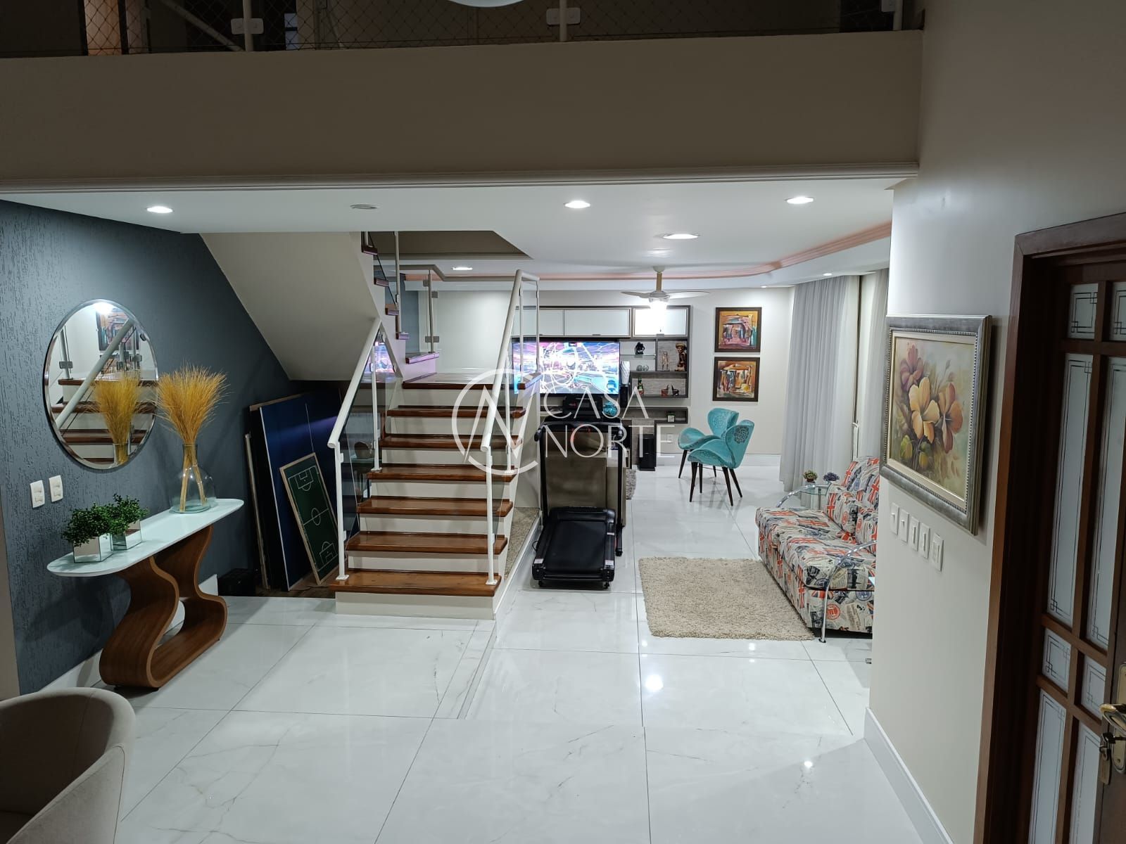 Living e Áreas Sociais: O living possui três ambientes com piso em desnível e pé direito duplo, proporcionando uma sensação de amplitude e sofisticação. O banheiro social conta com uma relaxante banheira de hidromassagem.