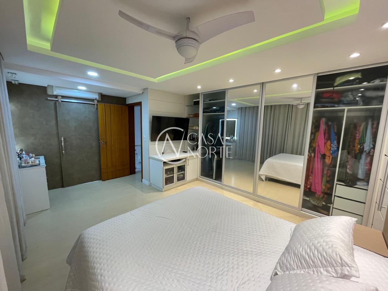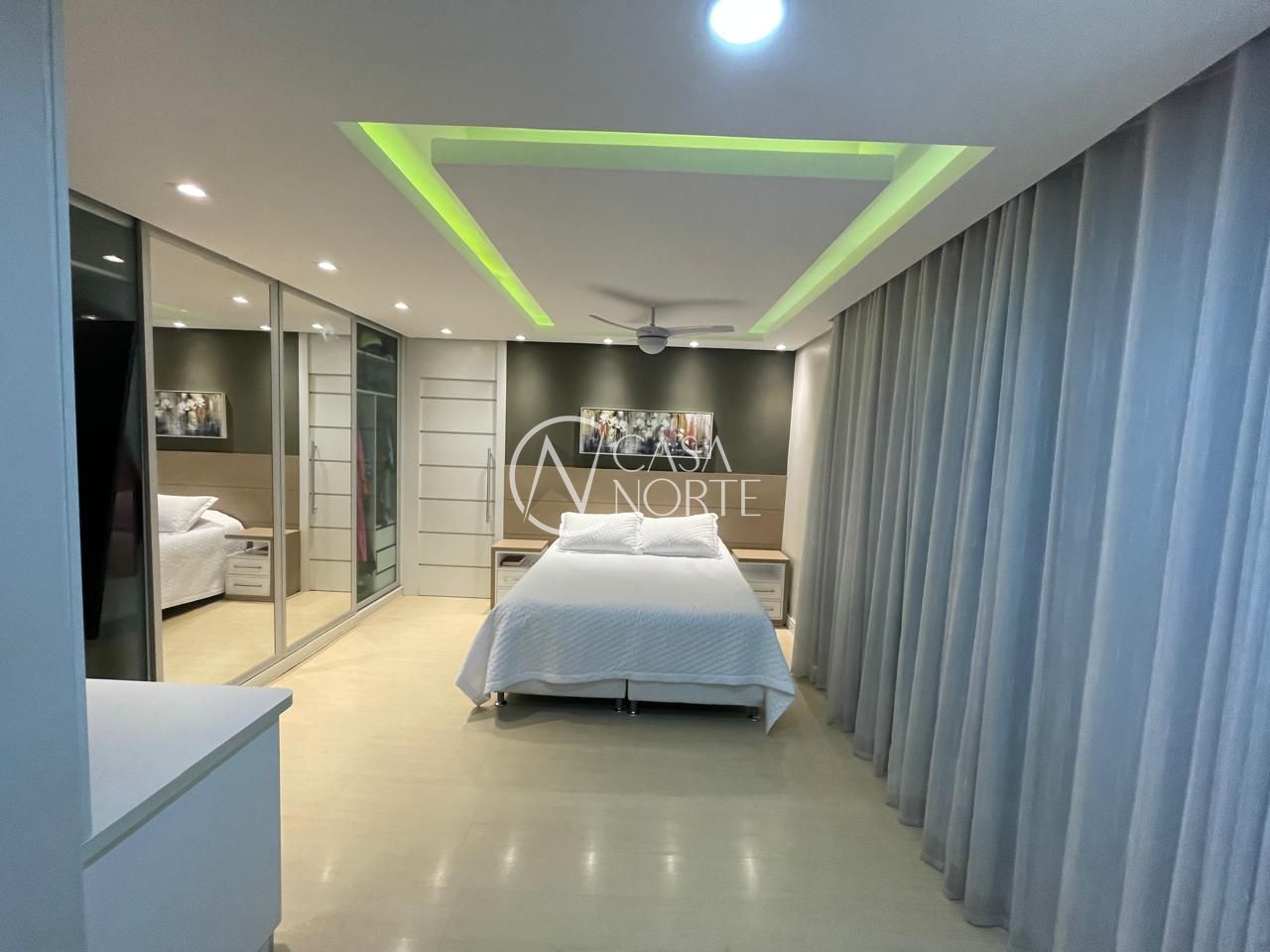 Dormitórios: A casa possui três dormitórios, sendo uma suíte com três closets. A suíte é um refúgio de conforto, equipada com ar condicionado split, ventilador de teto, cortinas blackout e um projeto de iluminação embutida no rebaixamento de gesso. Além disso, há um escritório versátil e um dormitório infantil bem equipado.