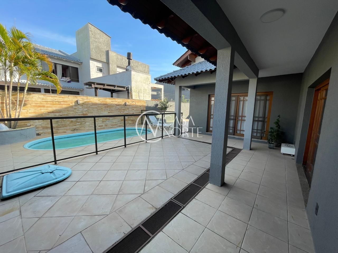 Área Externa: O excelente pátio com piscina é ideal para momentos de lazer. A garagem coberta acomoda três carros, com espaço adicional para três veículos no estacionamento. Há também um banheiro completo e uma bancada para churrasco equipada com armários sob medida.
