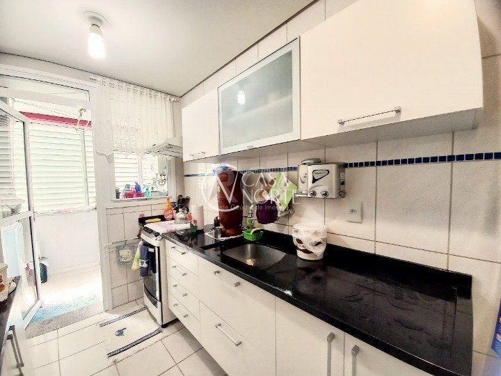 Apartamento 2 (dois) dormitórios, sendo 1 suíte, banheiro social, sala, área de serviço, cozinha montada, sacadas (1 no quarto principal), garagem escriturada e coberta, água quente, prédio com elevador.