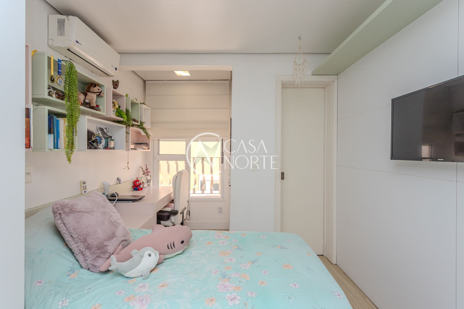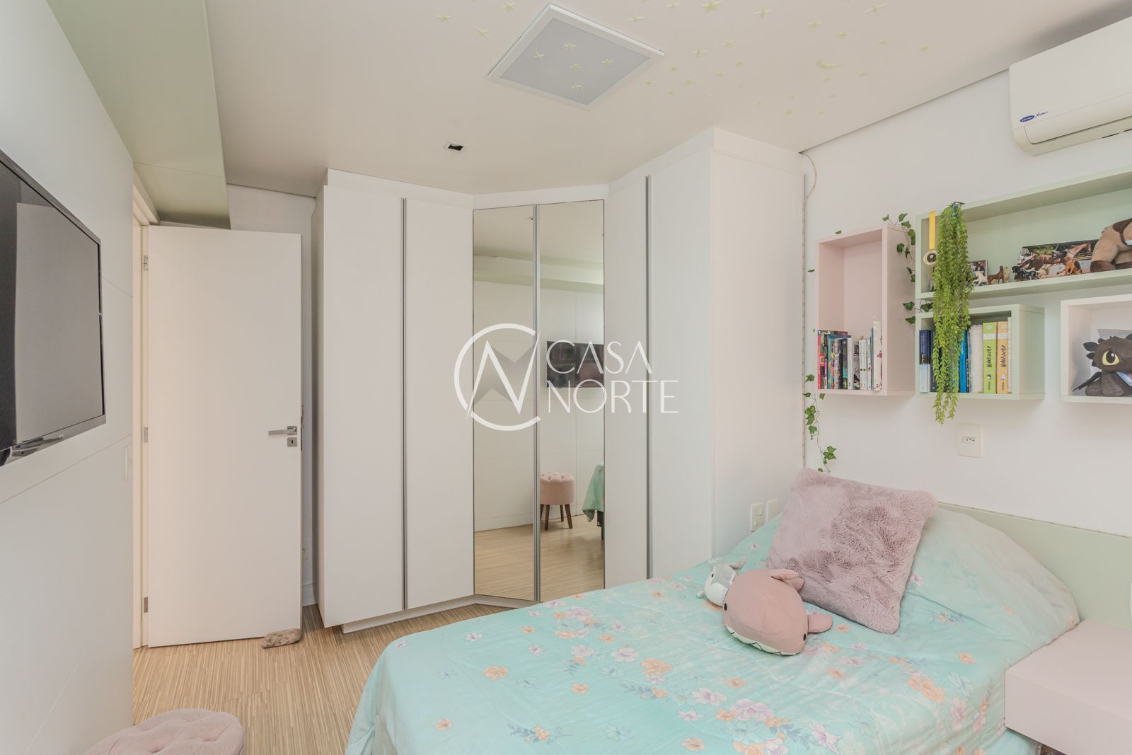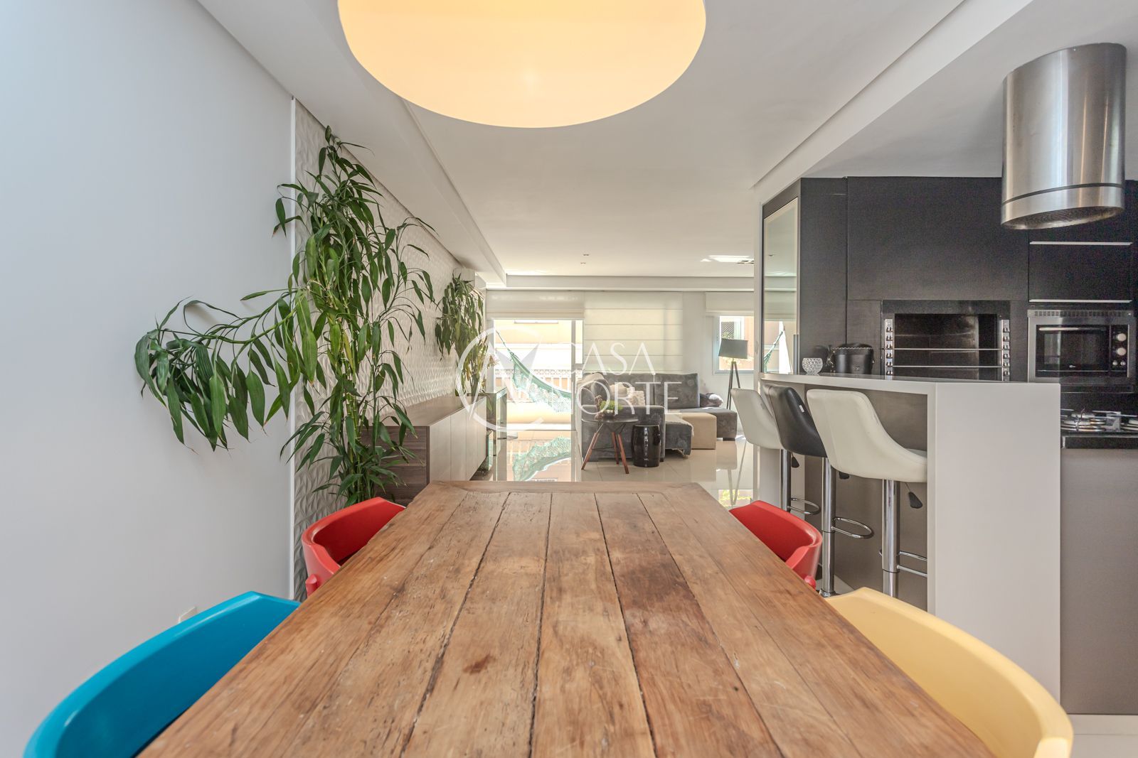 Com 230 m² privativos, o imóvel apresenta uma planta bem resolvida, onde os espaços se conectam de forma fluida e funcional. Na área íntima, são 3 dormitórios, com destaque para a suíte principal que conta com closet, além de uma prática suíte americana.