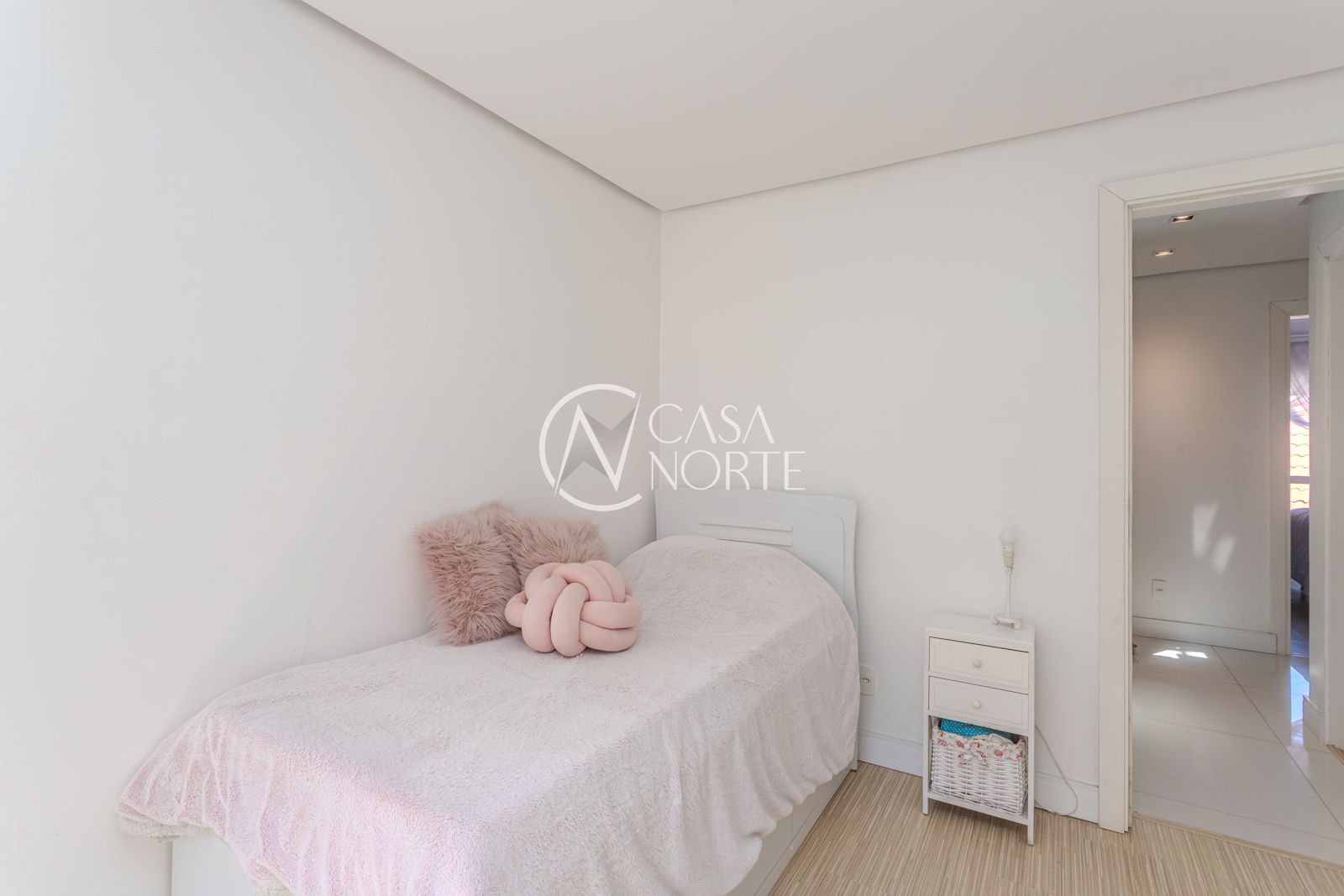 No pavimento superior, um ambiente versátil amplia as possibilidades: hoje utilizado como escritório, pode ser facilmente adaptado para dormitório adicional ou suíte, conforme a necessidade.