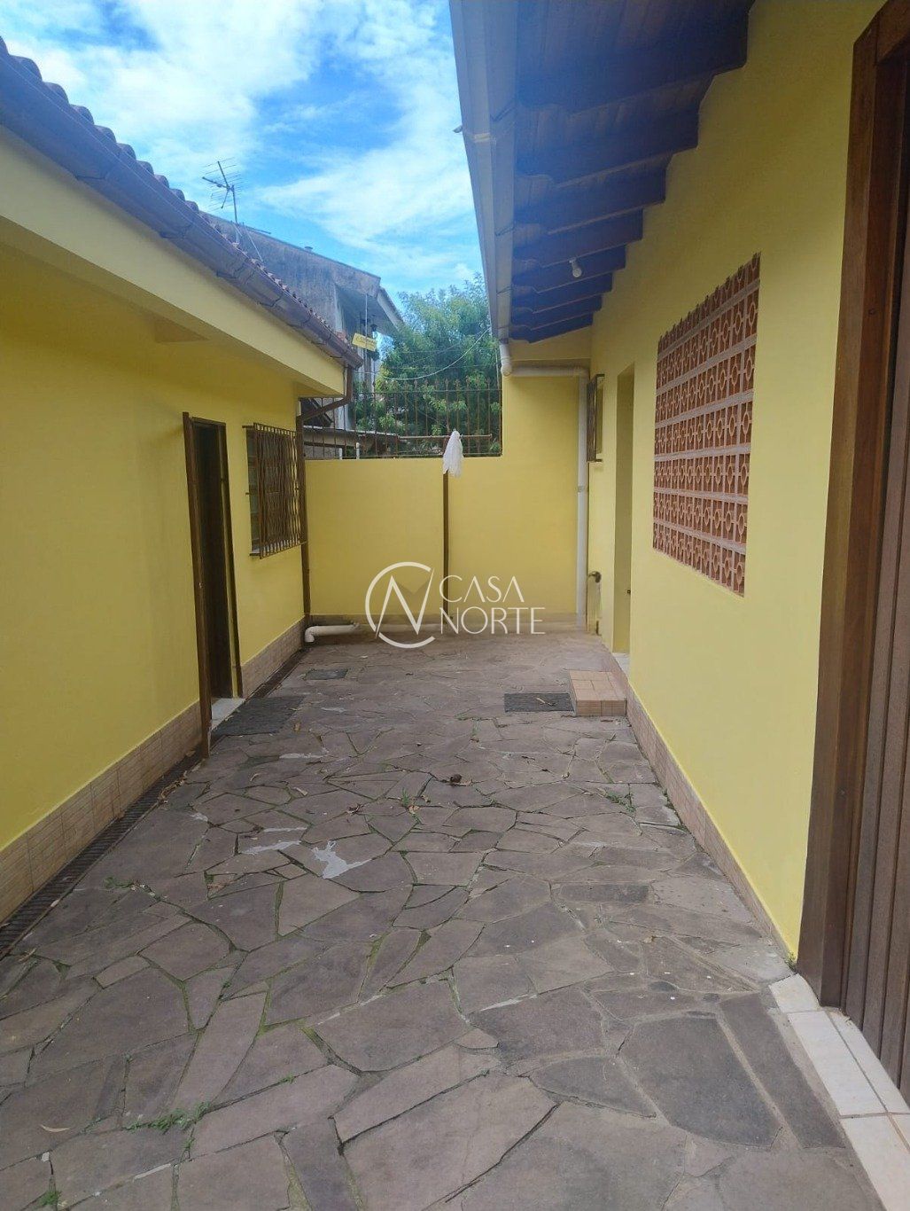 Pátio e excelente área externa. Terreno com 10m de frente por 30m de frente a fundos. Conta com 4 vagas de garagem cobertas e salão de festa com churrasqueira e banheiro auxiliar.