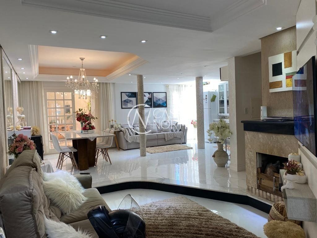 Com uma garagem coberta e uma descoberta, teto com sanca de gesso e iluminação de luz led , lareira, sacada , lavanderia , pátio e um espaço de lazer.