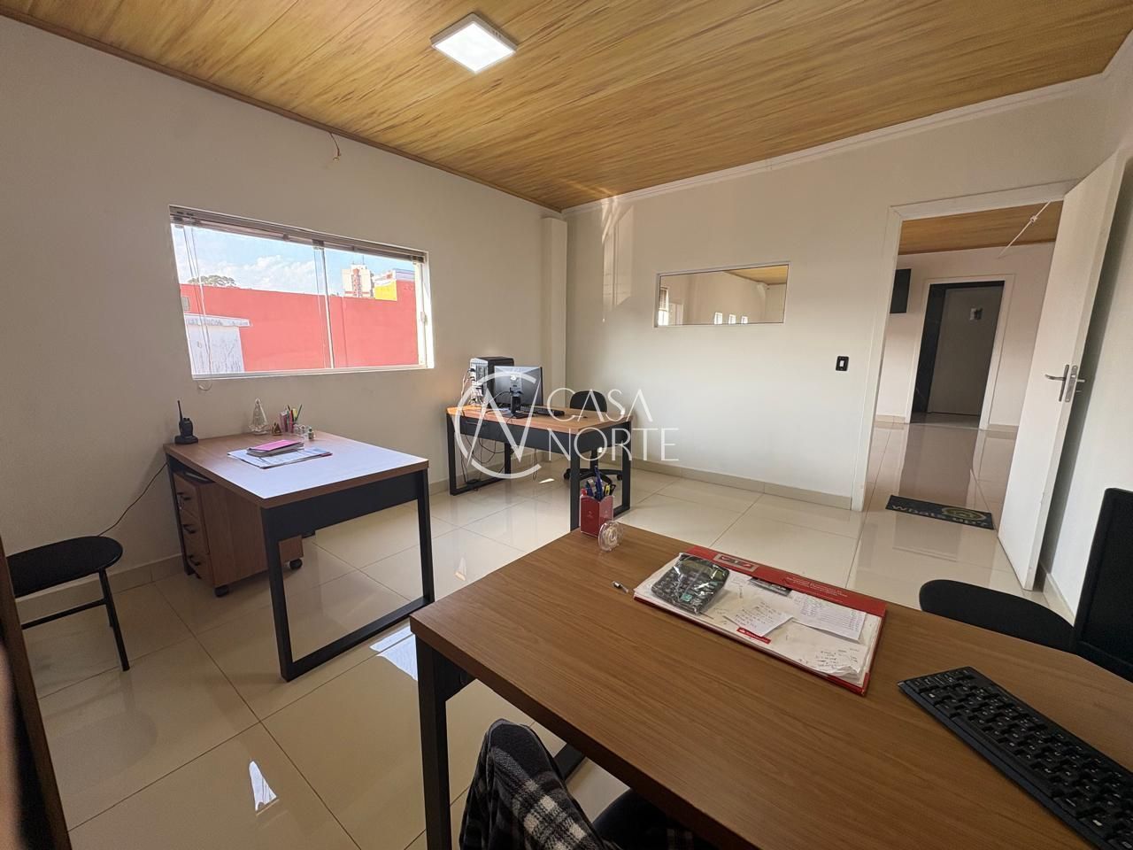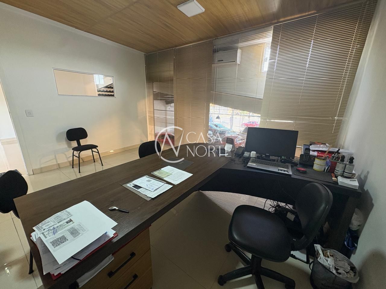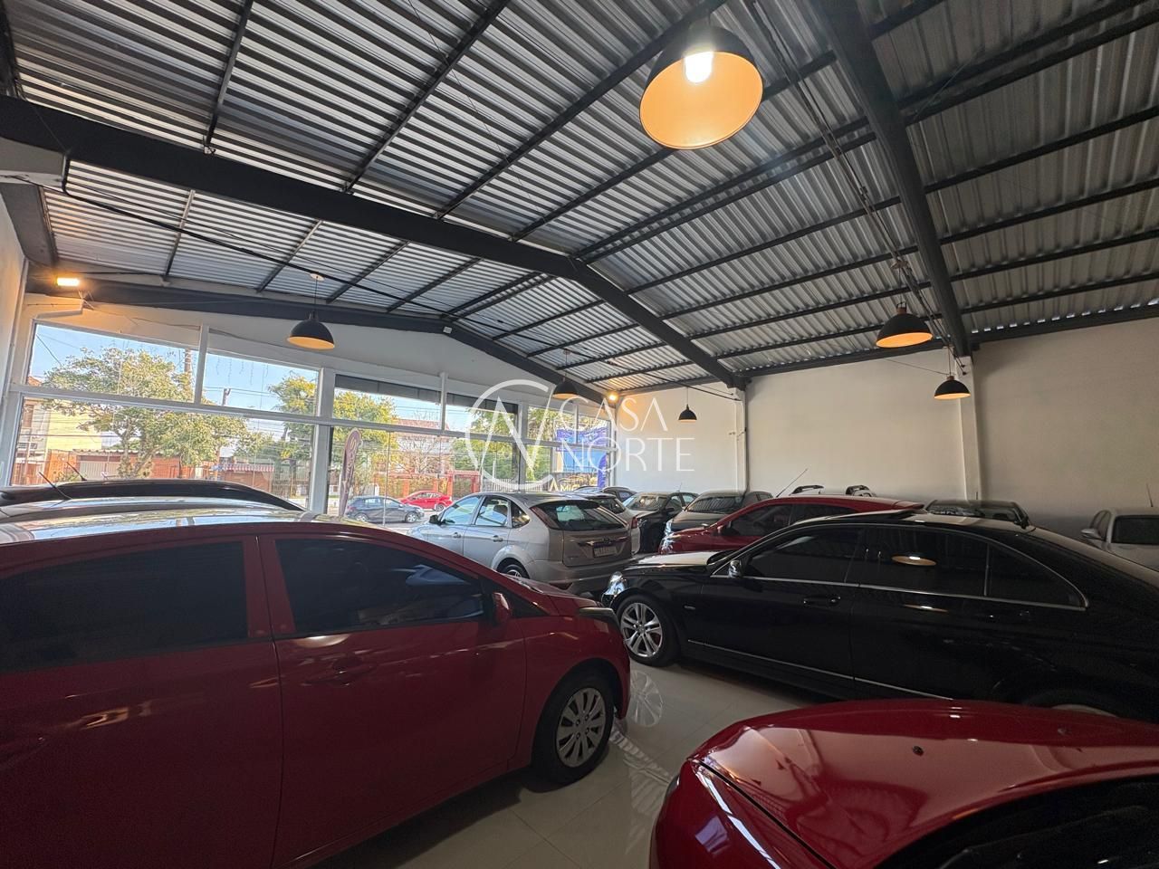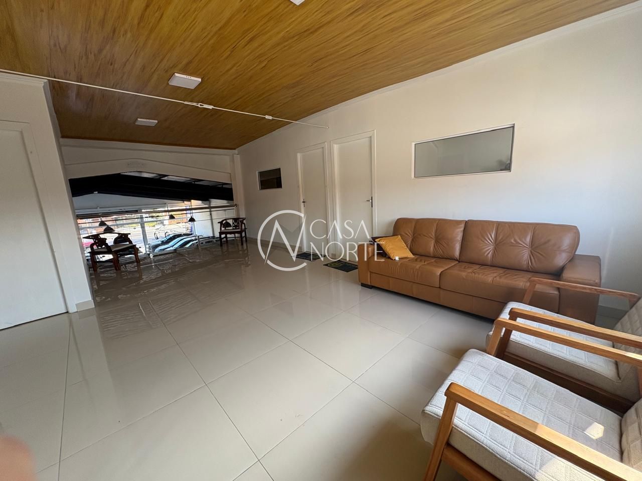 Piso em porcelanato, fechada com vidros a frente e fundos da loja.