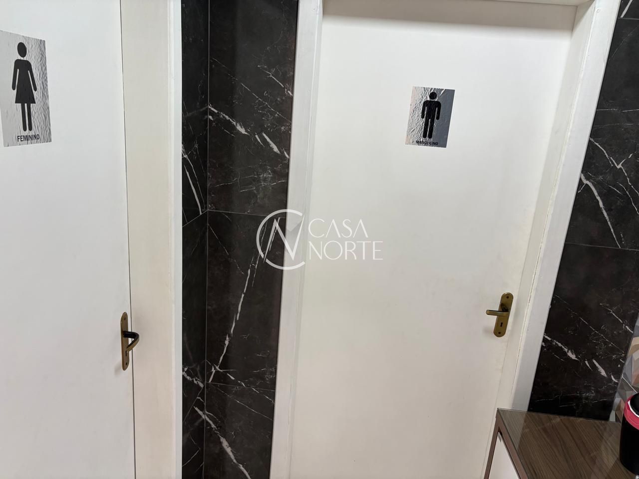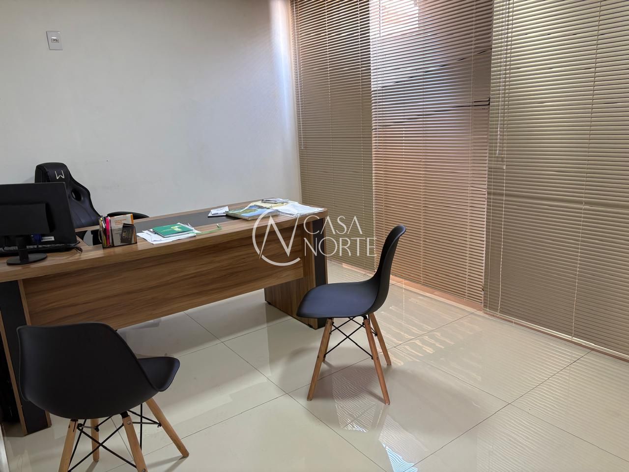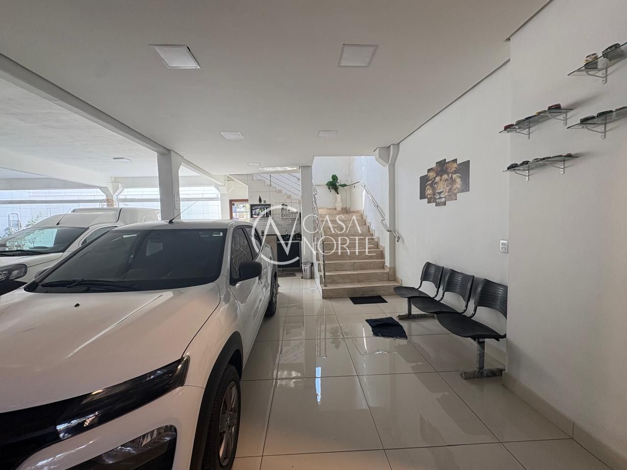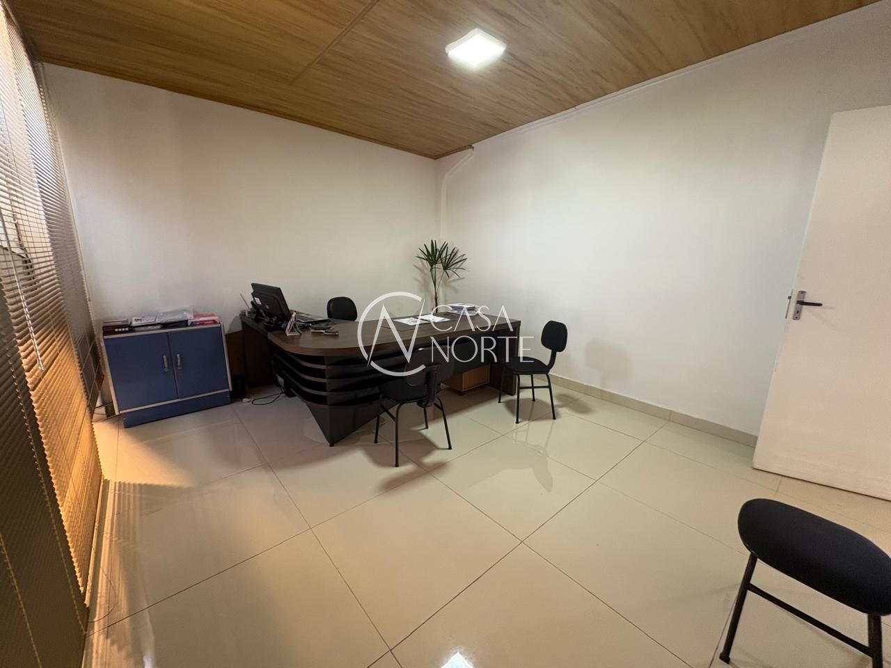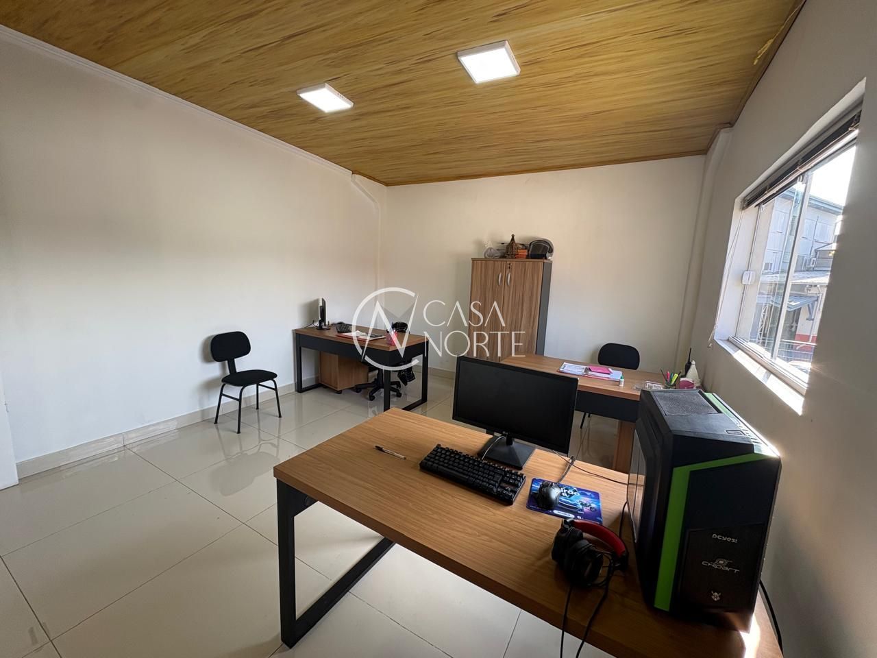 Piso em porcelanato, fechada com vidros a frente e fundos da loja.