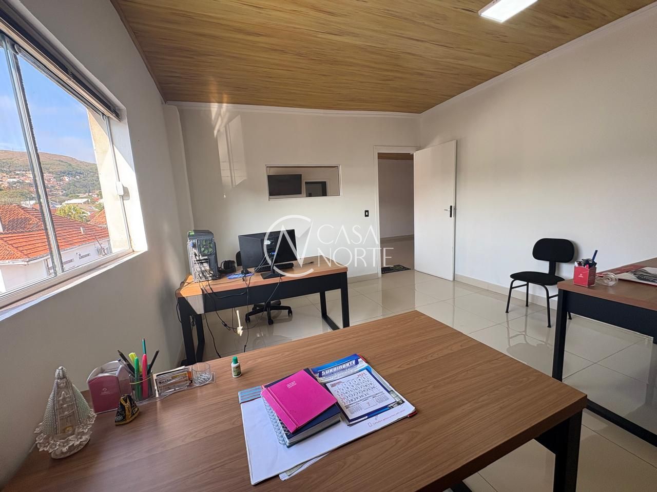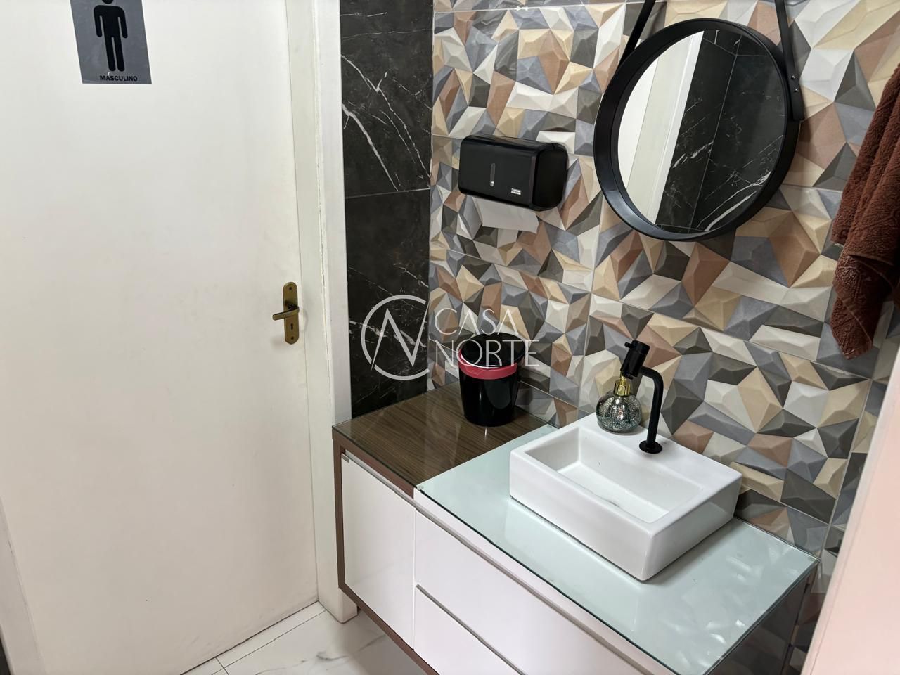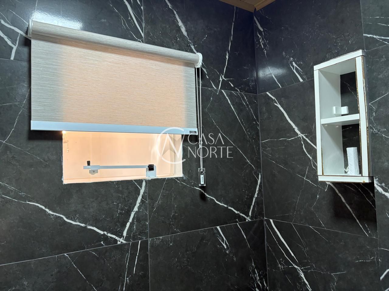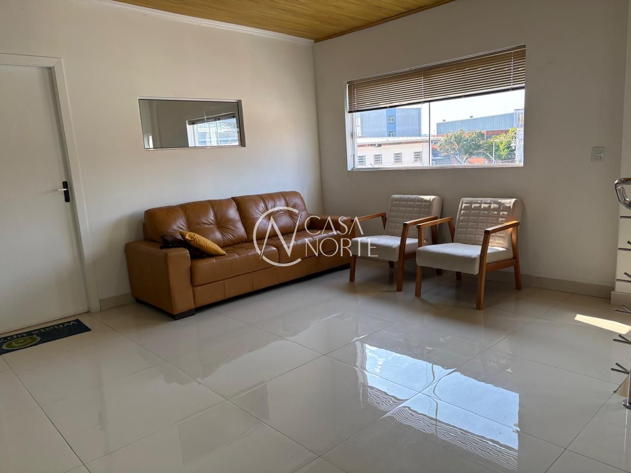 Piso em porcelanato, fechada com vidros a frente e fundos da loja.