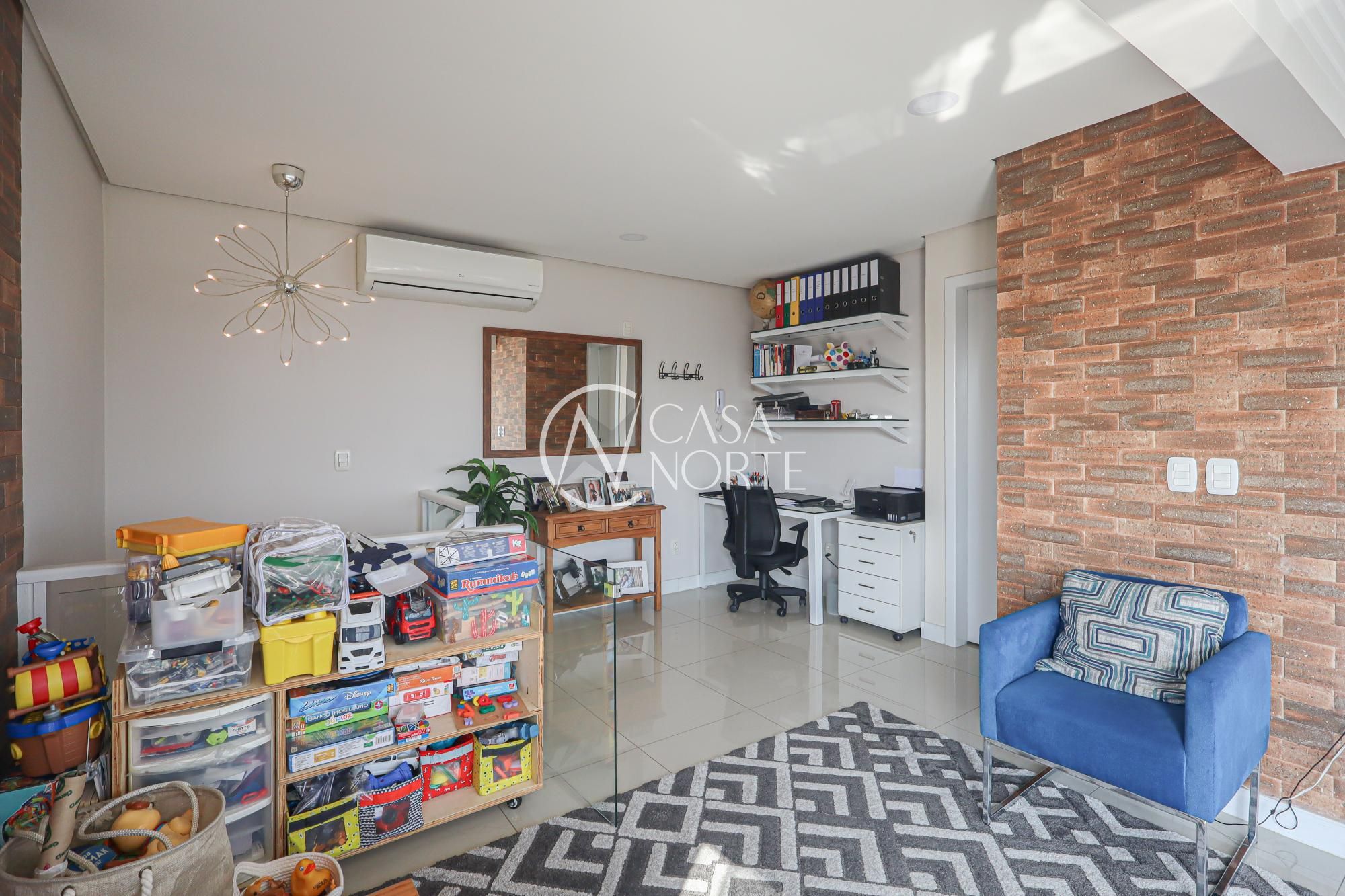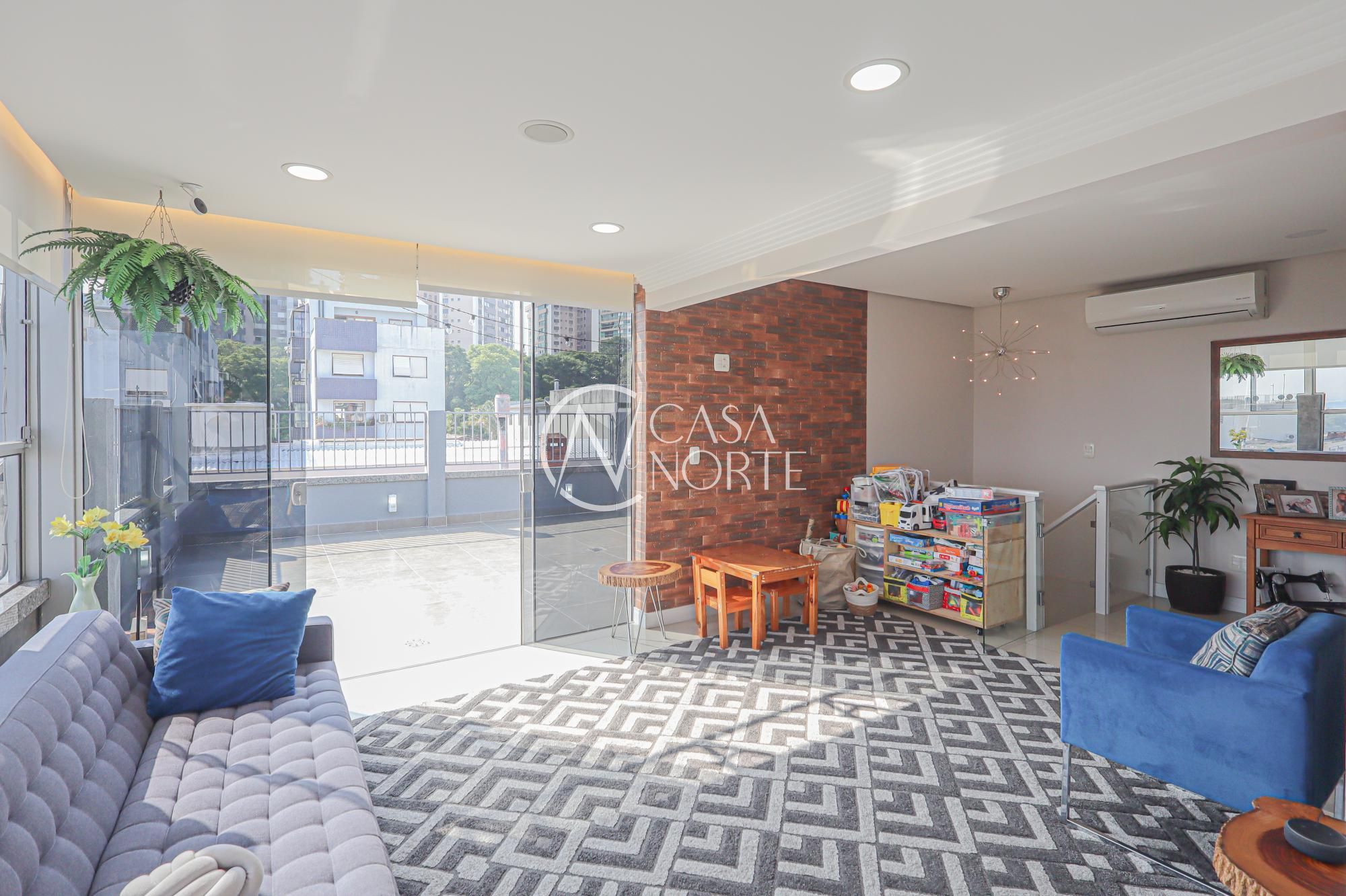 O segundo pavimento conta com área gourmet com churrasqueira, amplas janelas proporcionando muita iluminação e ventilação, espaço para gabinete, banheiro social completo e amplo terraço com linda vista.