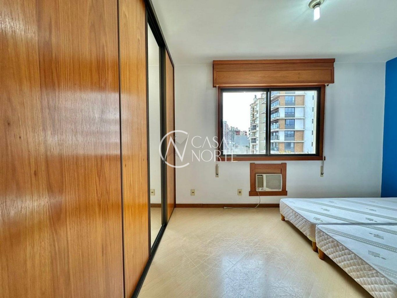 Suíte com armários e cama, bem ventilada e ensolarada, piso cerâmico e janelas grandes. Segundo dormitório versátil, podendo ser closet. Terceiro dormitório versátil, ideal para closet, escritório, despensa, biblioteca, espaço para treinos ou quarto de visitas.