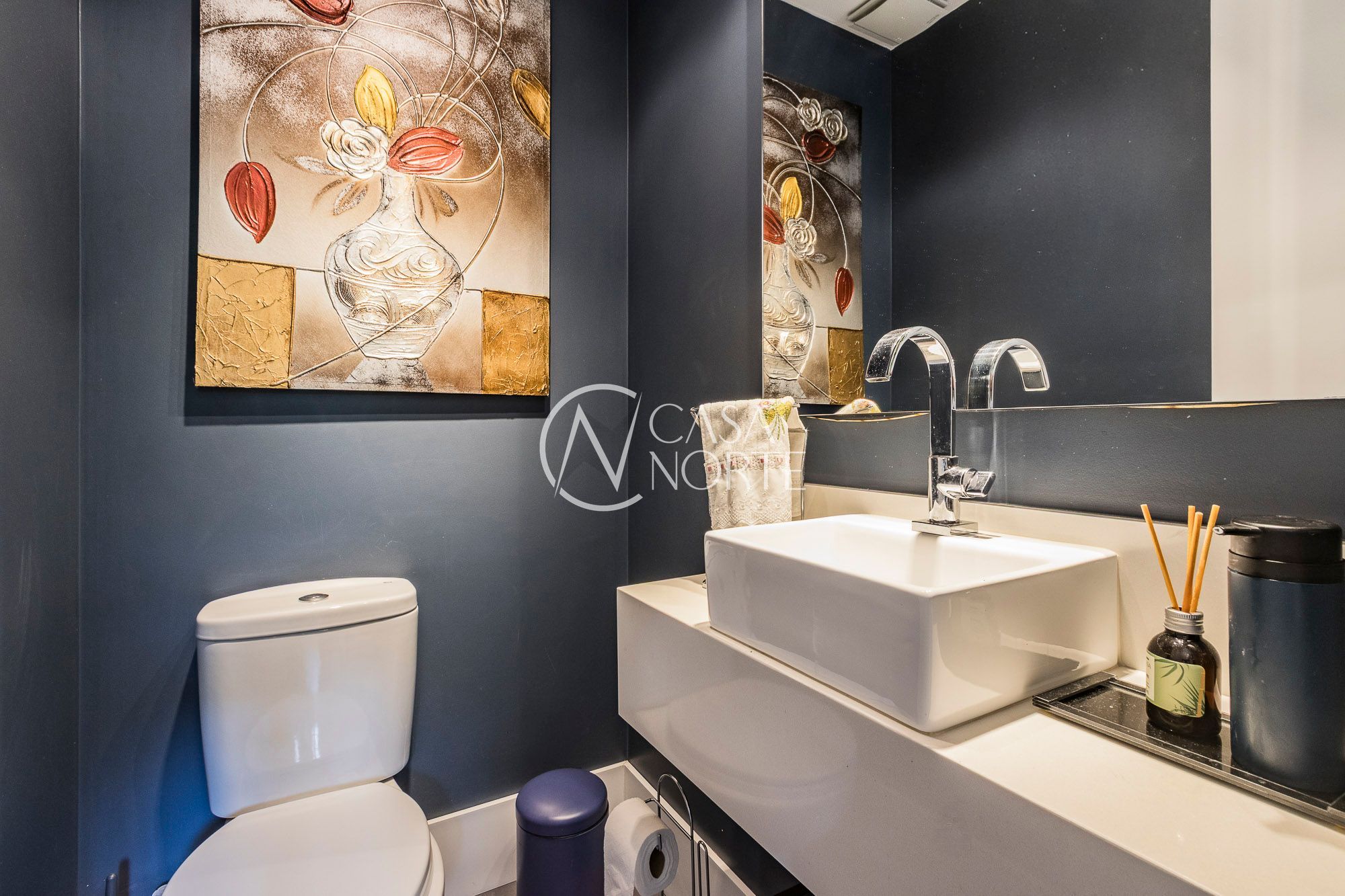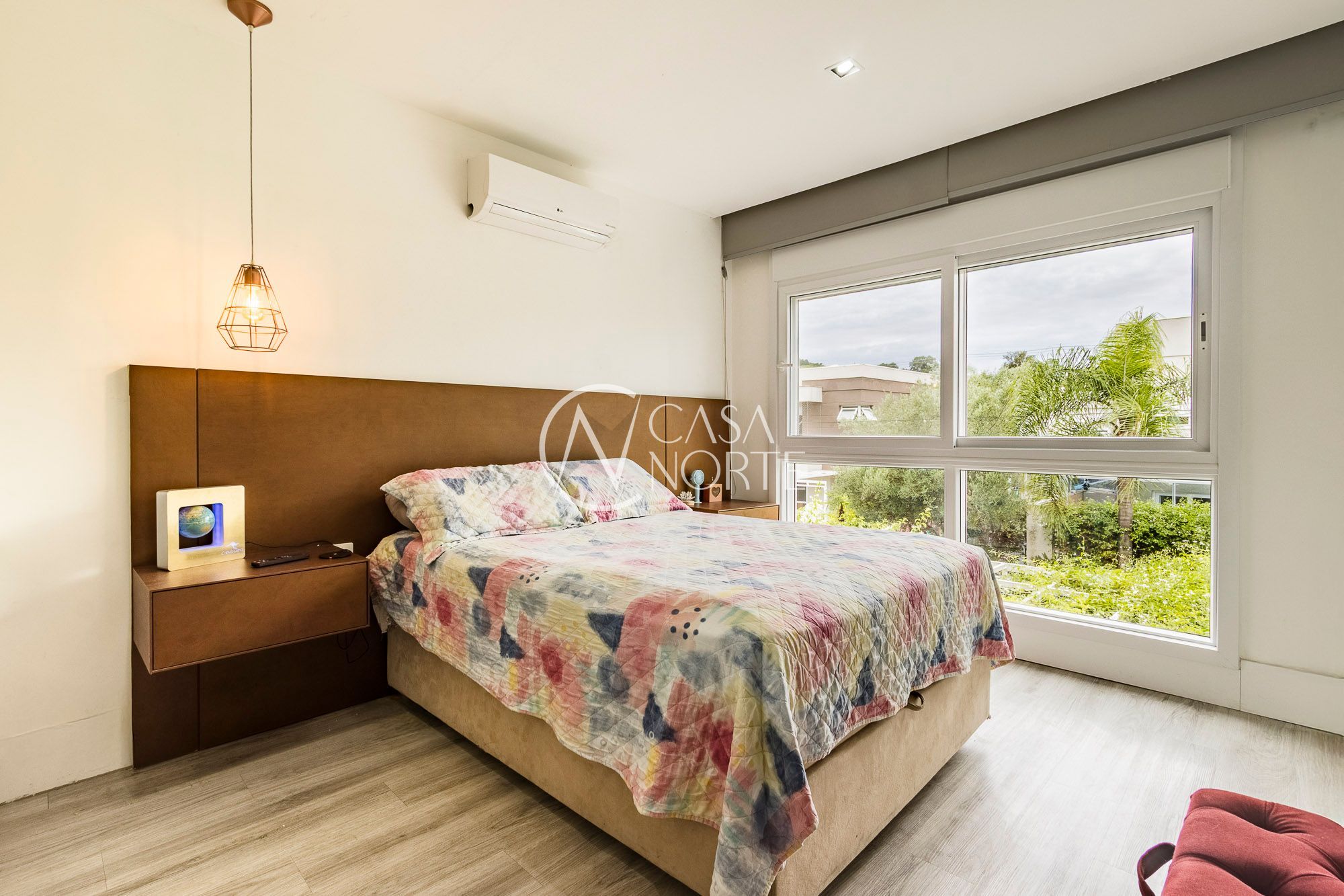 Conta ainda com persianas automatizadas nos dormitórios, automação de luzes, fechadura biométrica e infraestrutura elétrica pronta para jacuzzi.
