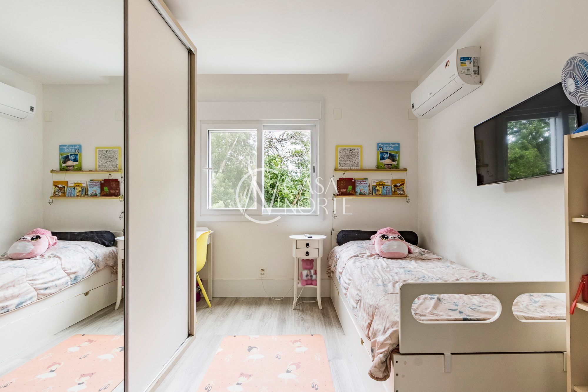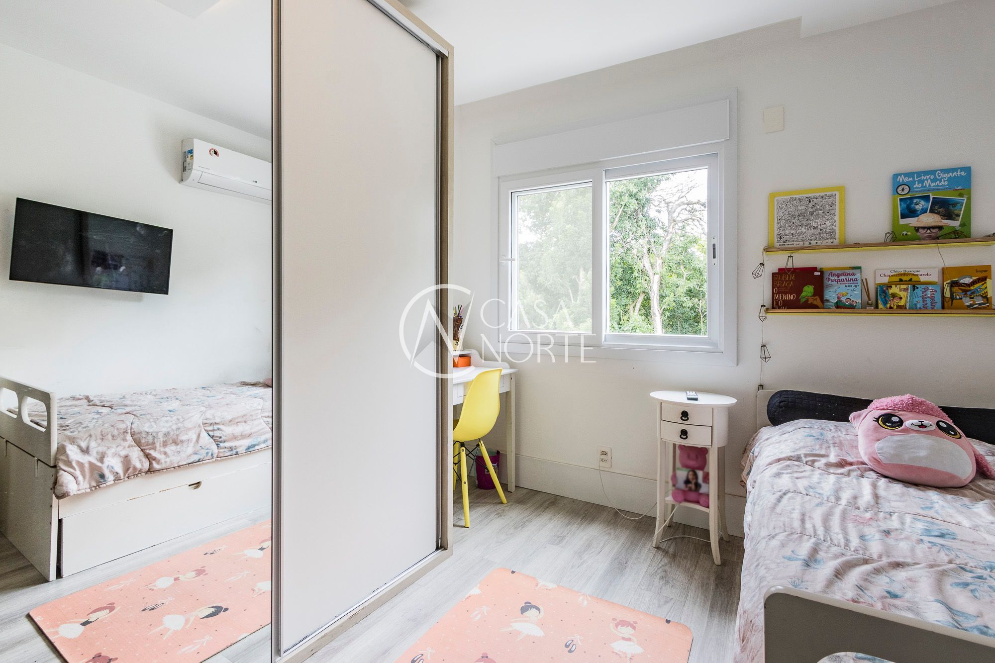 No andar superior, ficam a suíte com closet, dois dormitórios e banheiro social, garantindo conforto e privacidade.