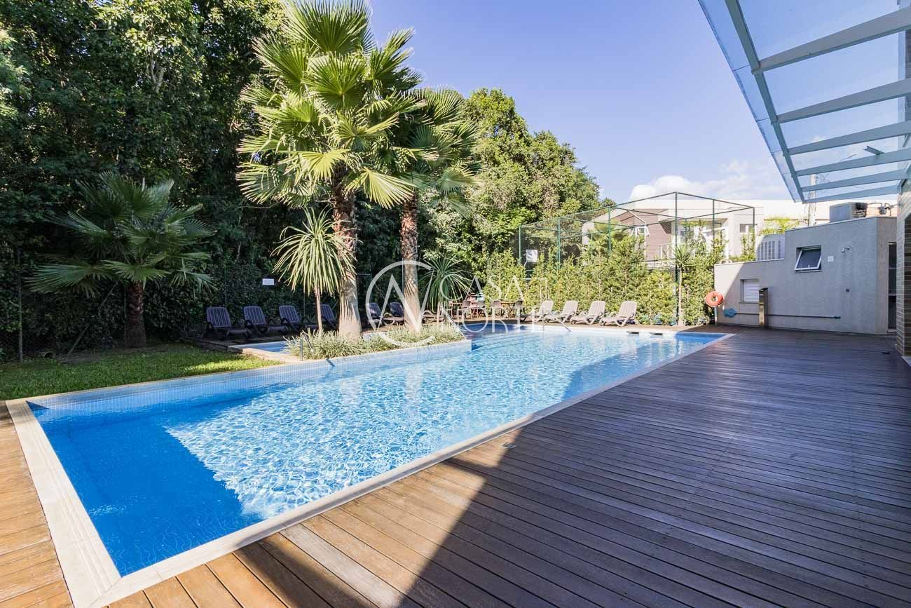 Infraestrutura completa com portaria 24h, piscina, espaço fitness, salão de festas, salão gourmet, quadra esportiva, playground e horta comunitária.