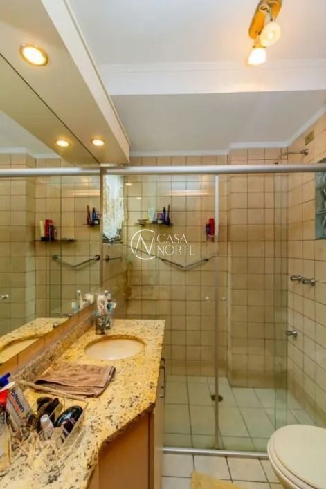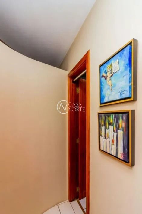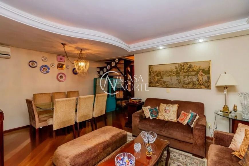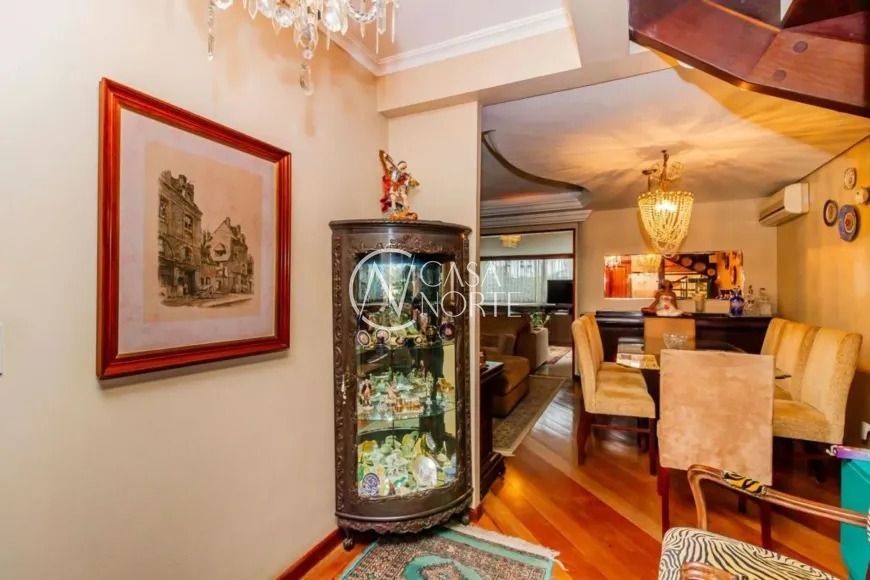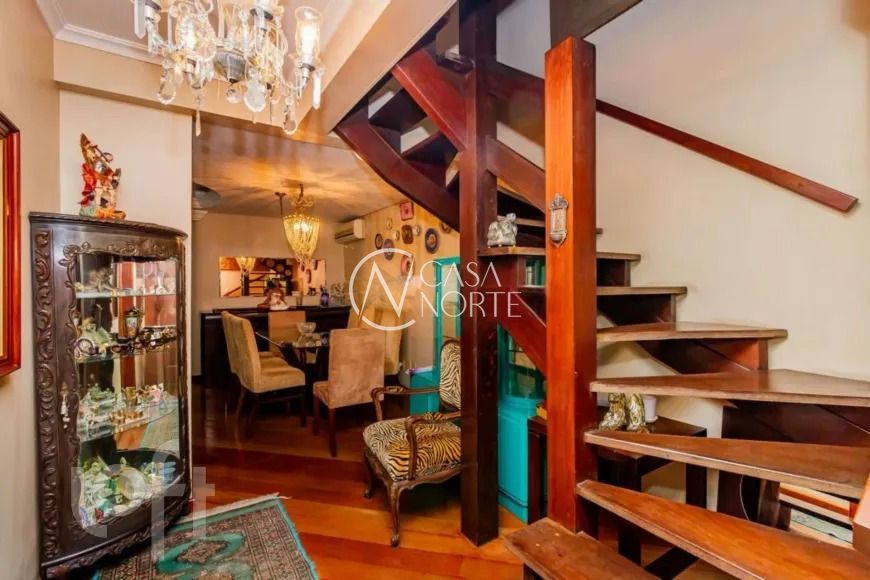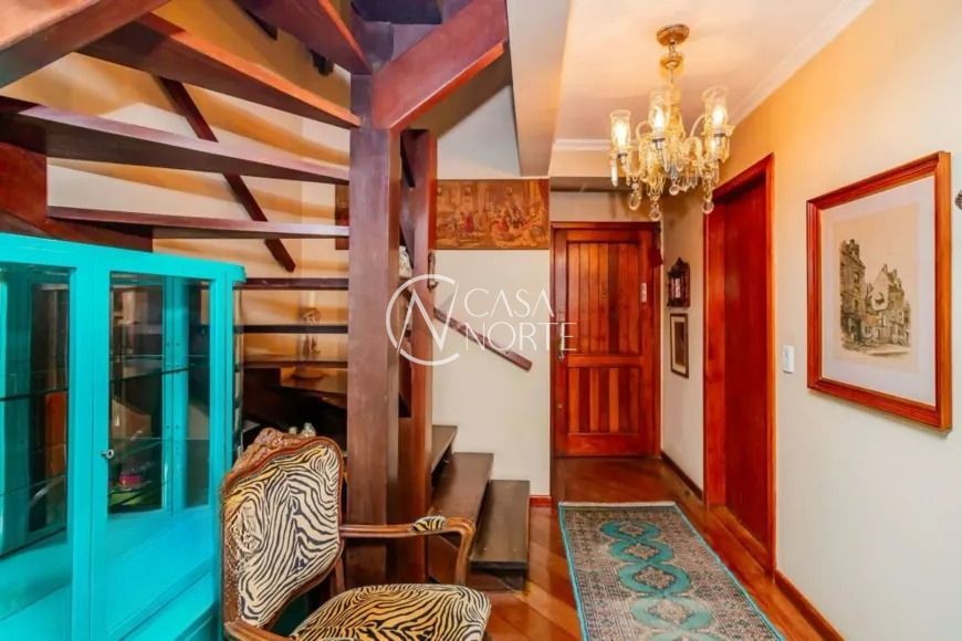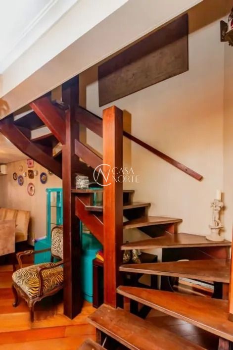 No andar superior, o imóvel conta com três dormitórios, sendo uma configuração atual com duas suítes — facilmente reversível — além de uma sacada espaçosa, ideal para momentos de relaxamento. O mezanino é um diferencial que permite múltiplas possibilidades de uso, como um closet, sala de ginástica ou até mesmo um espaço de trabalho.