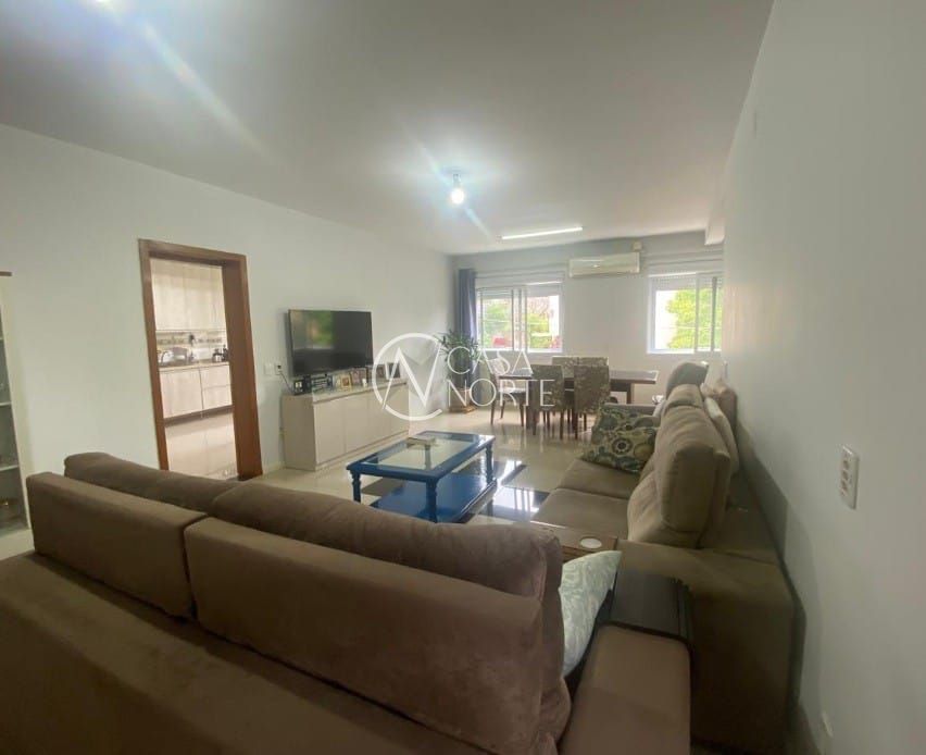 4 dormitórios (2 suítes), amplo living com churrasqueira em 2 ambientes, sala de jantar separada, banheiro social, cozinha com copa, lavanderia e depósito. Piso em porcelanato e excelente iluminação natural (posição solar leste-oeste).