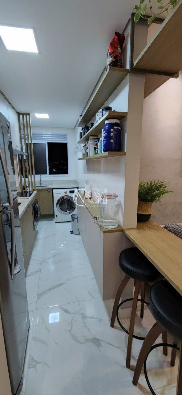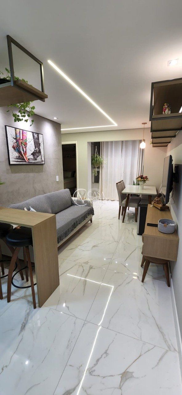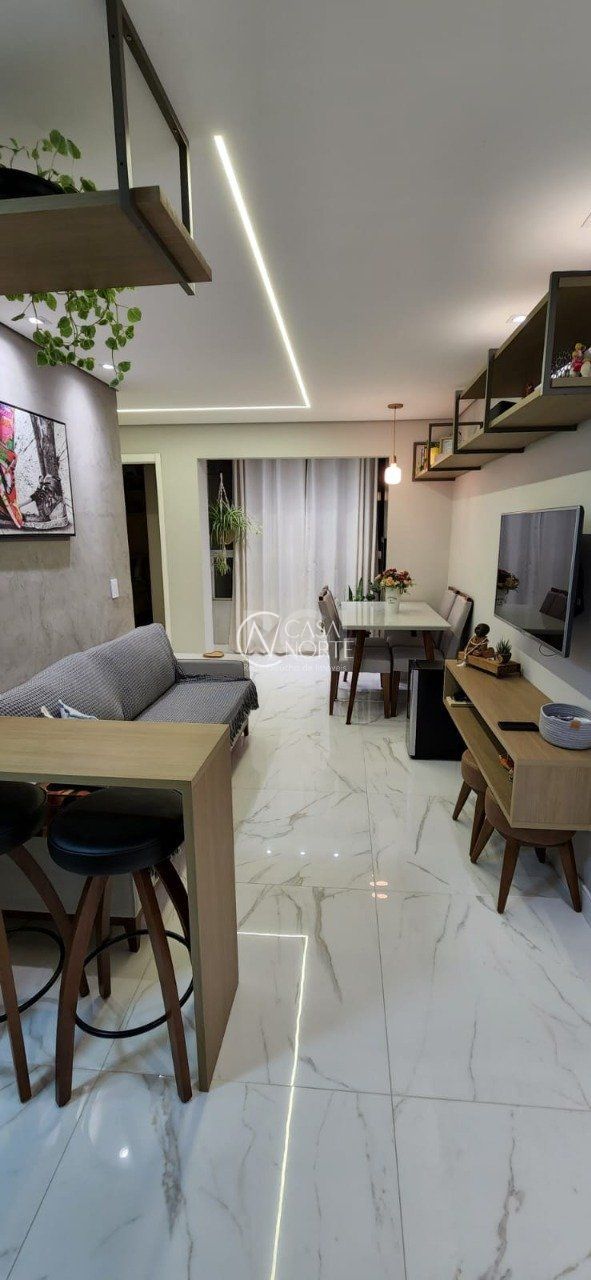 Apartamento finamente decorado com layout moderno, com 44,32 m² de área privativa, com duas vistas permanentes, living estar e jantar, sacada com churrasqueira, cozinha, área de serviço, piso em porcelanato e uma vaga de garagem escriturada.